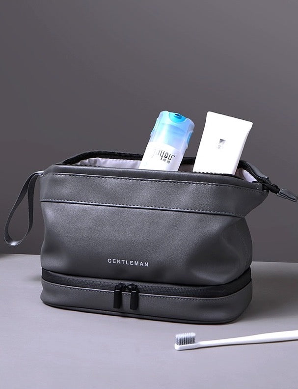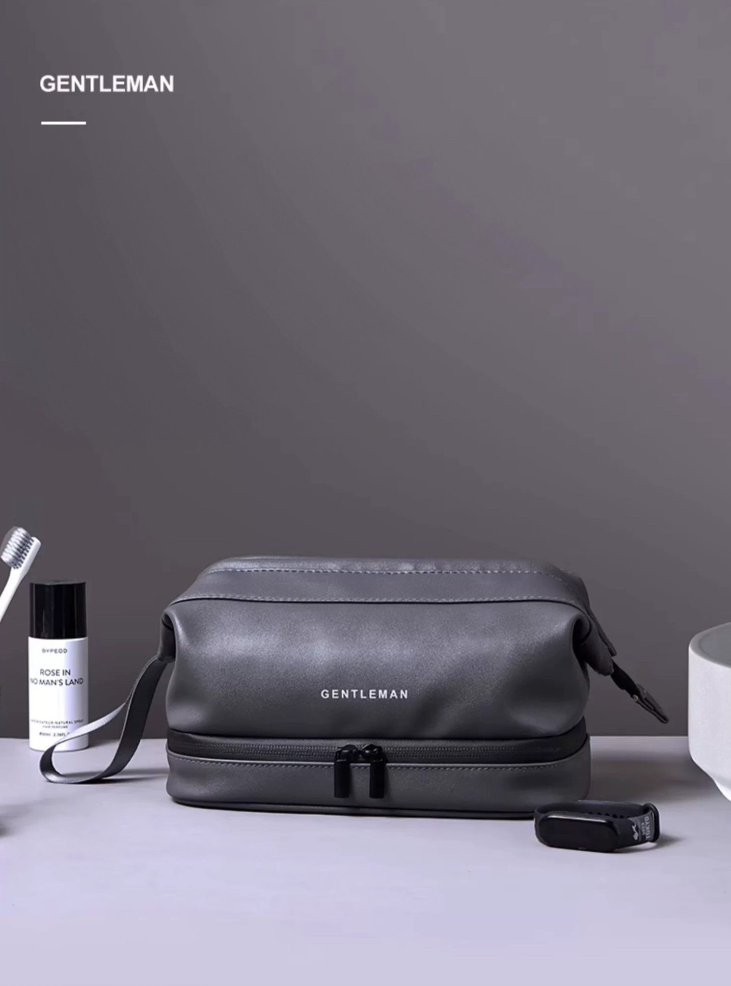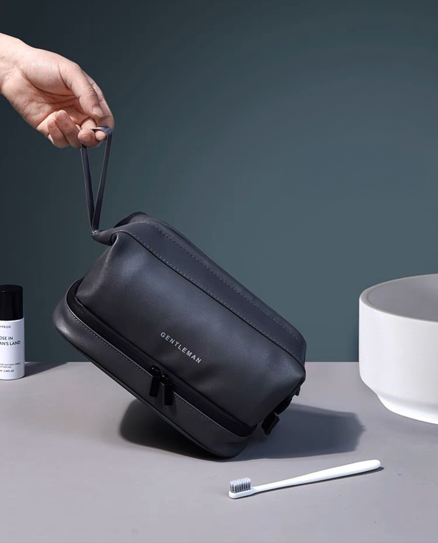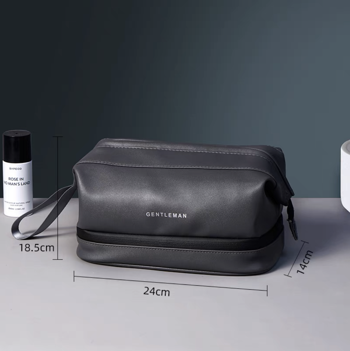 Introducing the Men's Travel Toiletry Bag, combining superior leather texture and practicality, perfect for business travel. More than just good looks, this bag offers a separate wet and dry compartment to keep your toiletries organized and prevent cross-contamination. Crafted with a PU waterproof material, it is durable, dirt-resistant, and easy to clean. Despite its compact size, it offers ample space to store all your necessities. The large opening makes packing and retrieving items a breeze. Lightweight and portable, this toiletry bag makes traveling more convenient than ever. Elevate your travel experience with our Men's Travel Toiletry Bag.