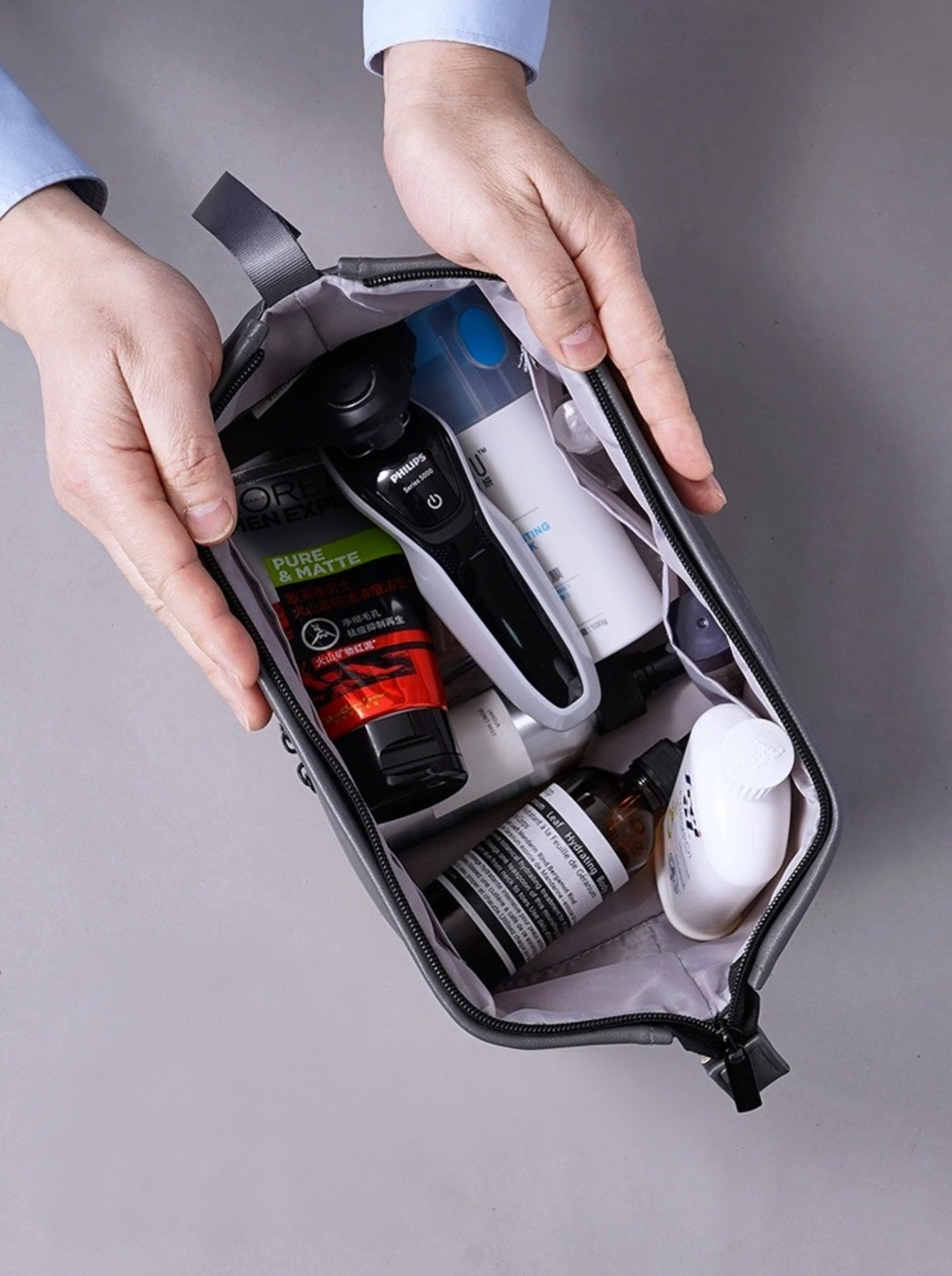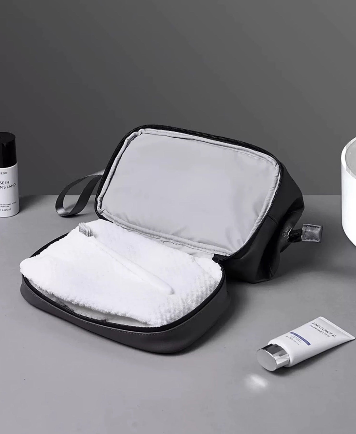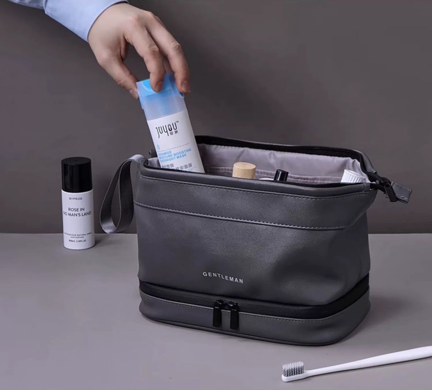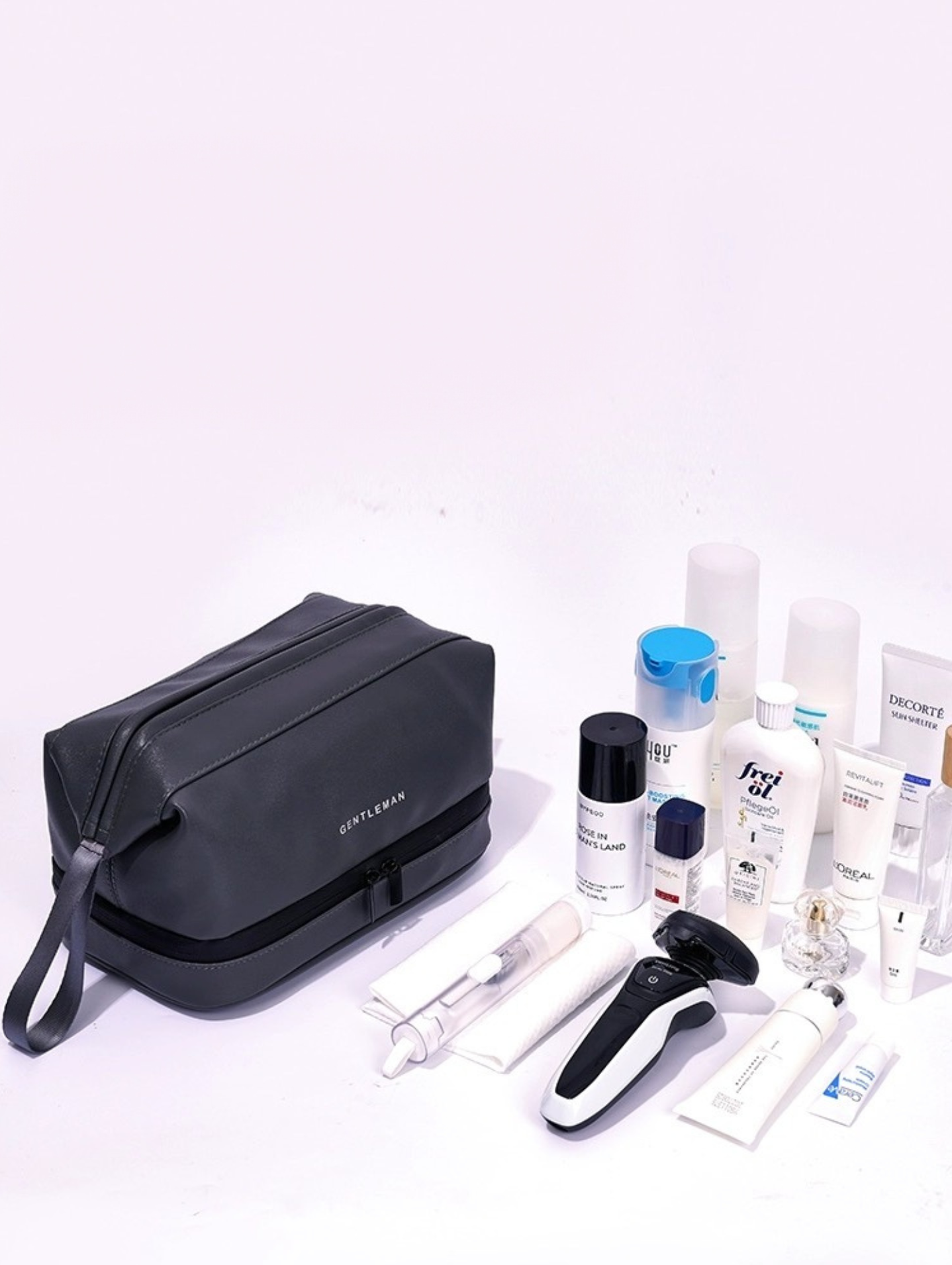 Introducing the Men's Travel Toiletry Bag, combining superior leather texture and practicality, perfect for business travel. More than just good looks, this bag offers a separate wet and dry compartment to keep your toiletries organized and prevent cross-contamination. Crafted with a PU waterproof material, it is durable, dirt-resistant, and easy to clean. Despite its compact size, it offers ample space to store all your necessities. The large opening makes packing and retrieving items a breeze. Lightweight and portable, this toiletry bag makes traveling more convenient than ever. Elevate your travel experience with our Men's Travel Toiletry Bag.