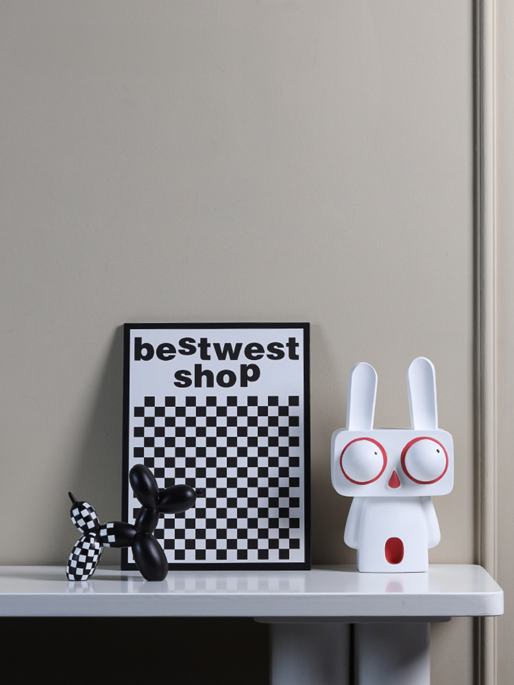 Elevate your living space with MinimalBunny, a modern art sculpture designed to captivate and inspire. Rendered in a palette of low-saturation colors, this unique piece seamlessly integrates into contemporary settings while adding an extra layer of complexity and wonder. Its simplistic design is complemented by large, expressive eyes that serve as the focal point, breathing life and emotion into any room. Crafted with premium materials and exacting attention to detail, MinimalBunny isn't just another decorative item—it's a conversation starter that embodies modern sophistication. Experience the perfect balance of form and function as you make your home truly one of a kind.