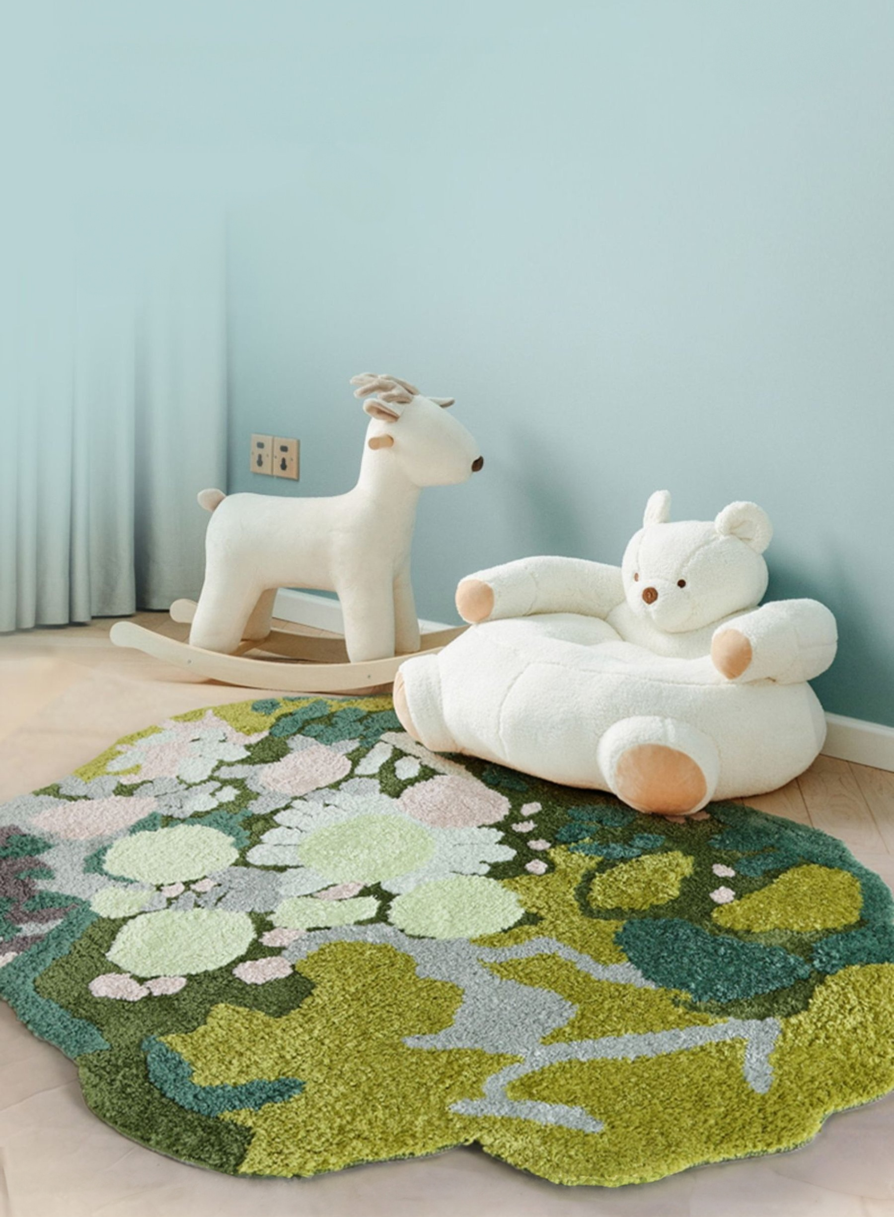 Bring the tranquil beauty of a forest into your home with the MossForest PlushRug. Crafted with baby-friendly polyester, this rug offers the perfect blend of aesthetics, comfort, and functionality.