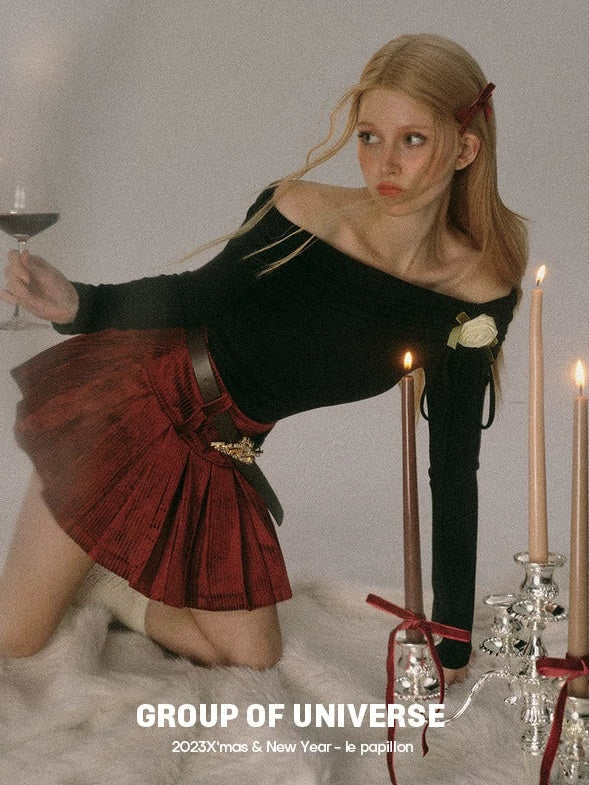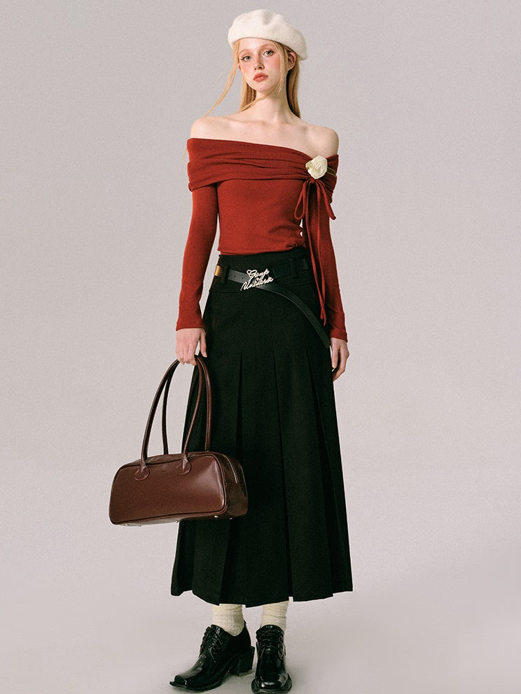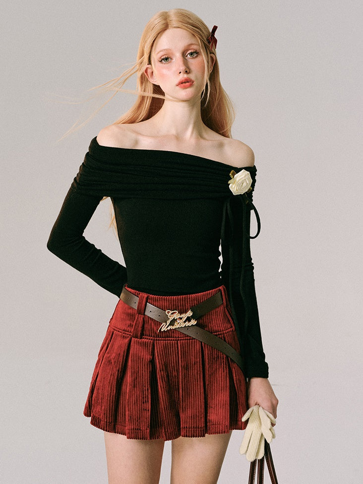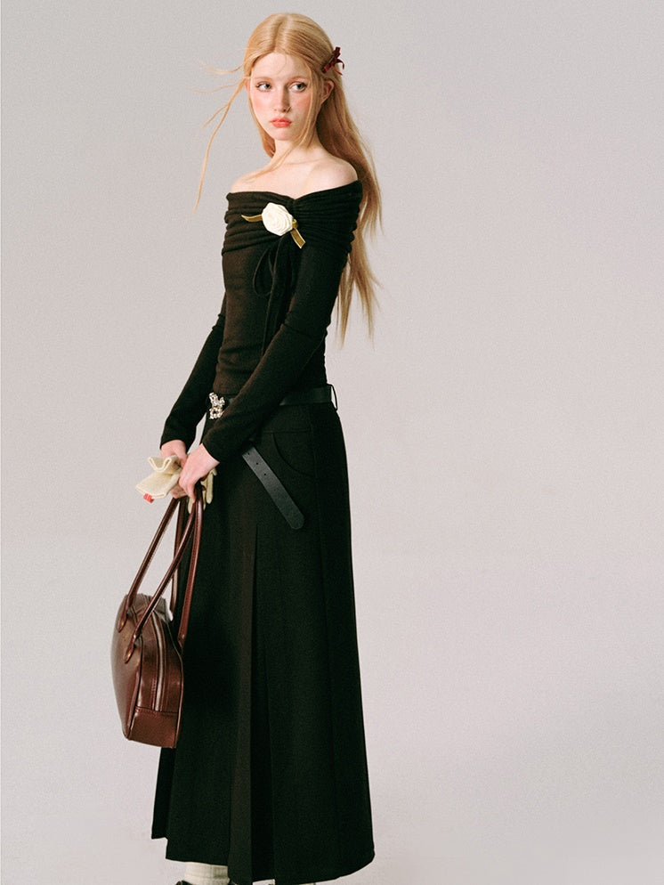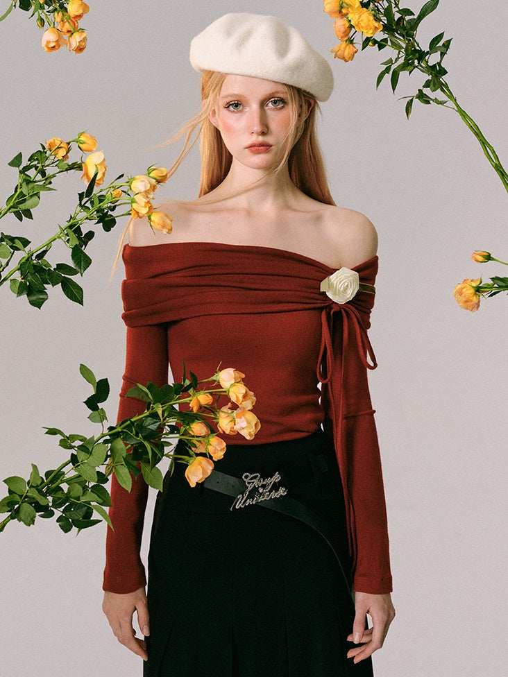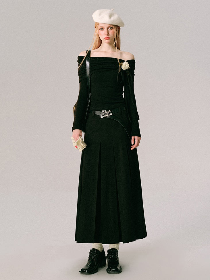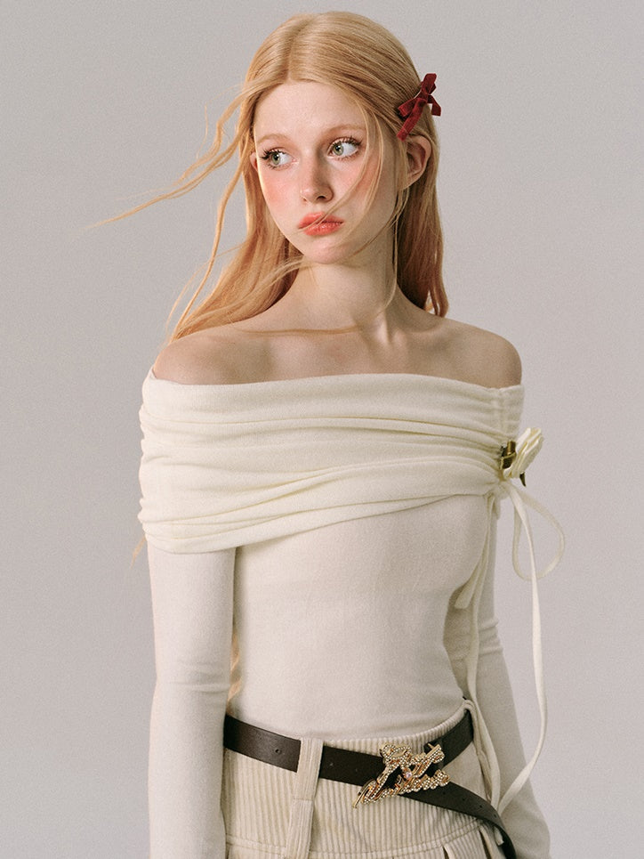 Off-Shoulder Slim-fit Long-sleeved Top