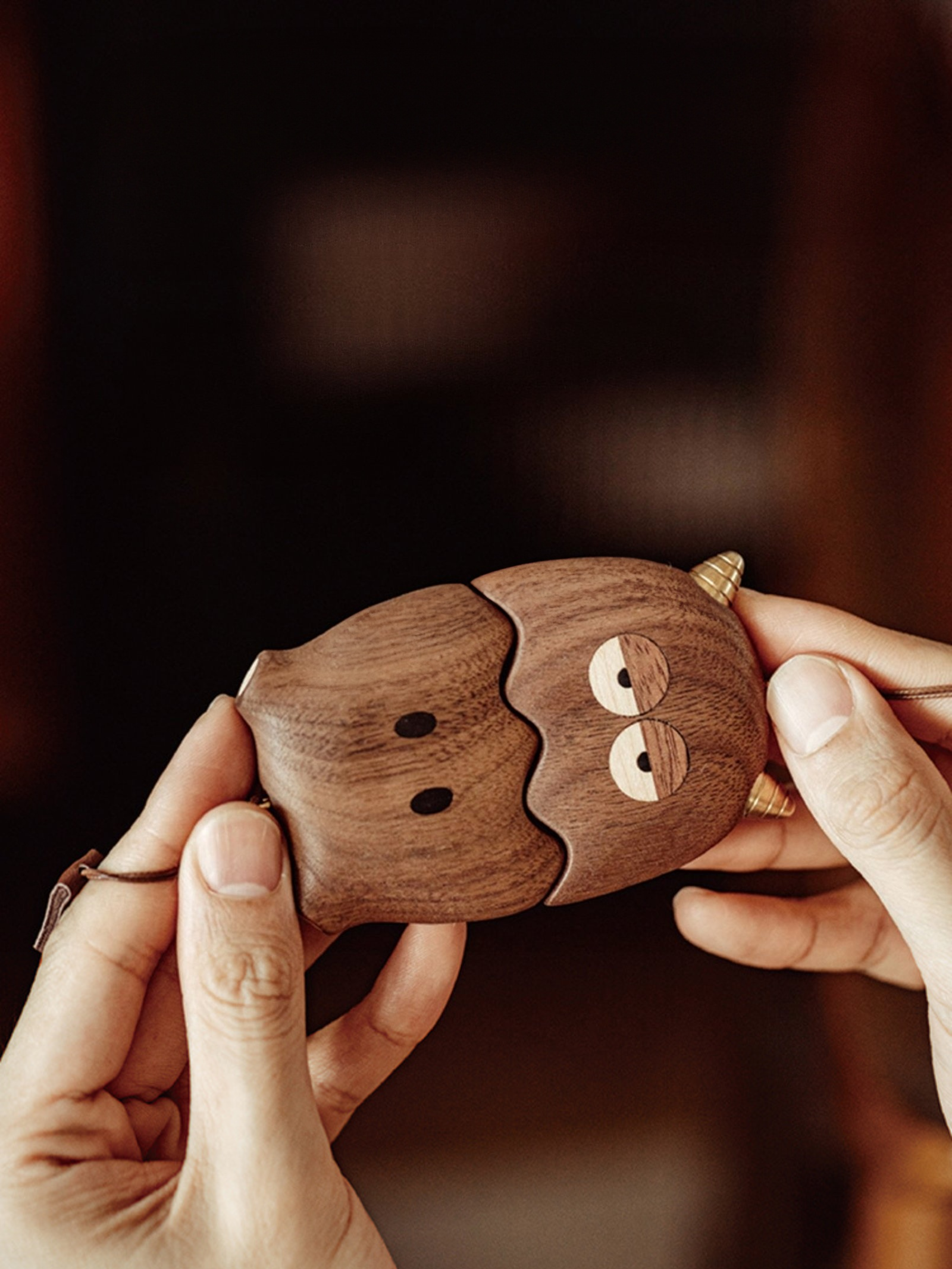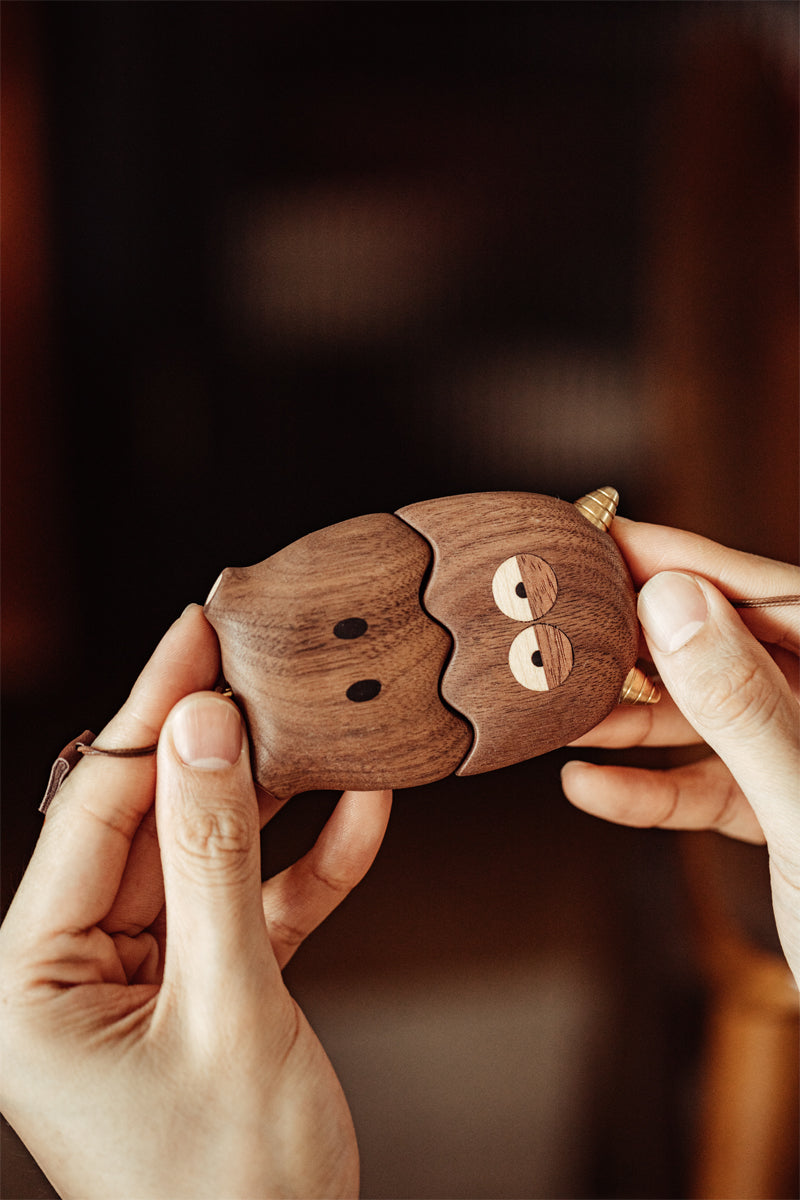 Delve into the heart of nature and craftsmanship with the OwlMate Lovers' Keychains. Crafted meticulously, each pair is carved from the same piece of wood, ensuring a unique, matching grain that speaks of unity. With a dedication to Mother Earth, we only choose woods that carry the esteemed FSC (Forest Stewardship Council) certification, underlining our commitment to ecological protection. Safe and environmentally sound, our entire product range, including these keychains, boasts a formaldehyde content of <0.1, adhering strictly to the European Union's DIN EN71 standards, virtually eliminating formaldehyde release. We pride ourselves in the absence of paints and dyes, instead embracing eco-friendly wood wax oil to highlight the raw beauty and allure of the wood's natural texture. This is our pledge. Ever since our brand's inception, we've continuously explored the intricate language of traditional craftsmanship within modern aesthetics, harboring a deep love for natural materials and an unwavering dedication to artisanal creation. With our wooden creations as a humble beginning, our aspiration is to infuse daily life with designs that touch and warm the heart.