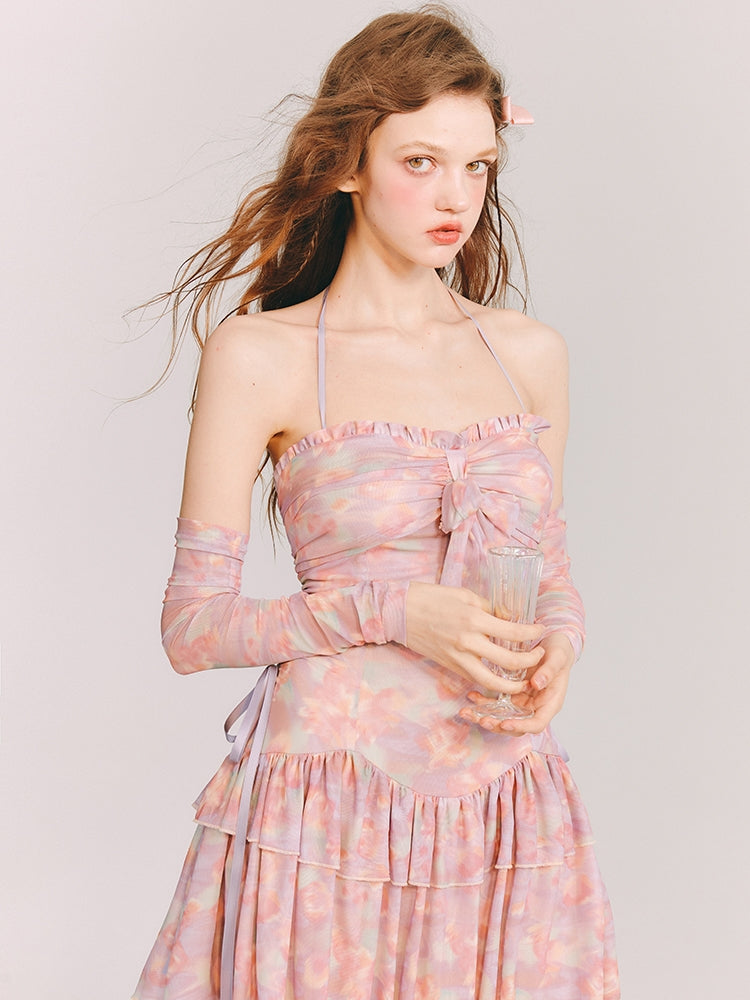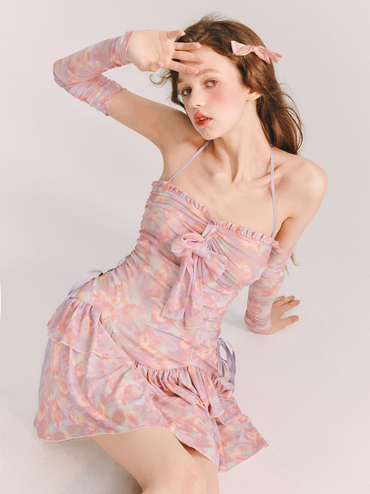 Pastel Back-Open Ribbon Tiered Floralone-Piece
