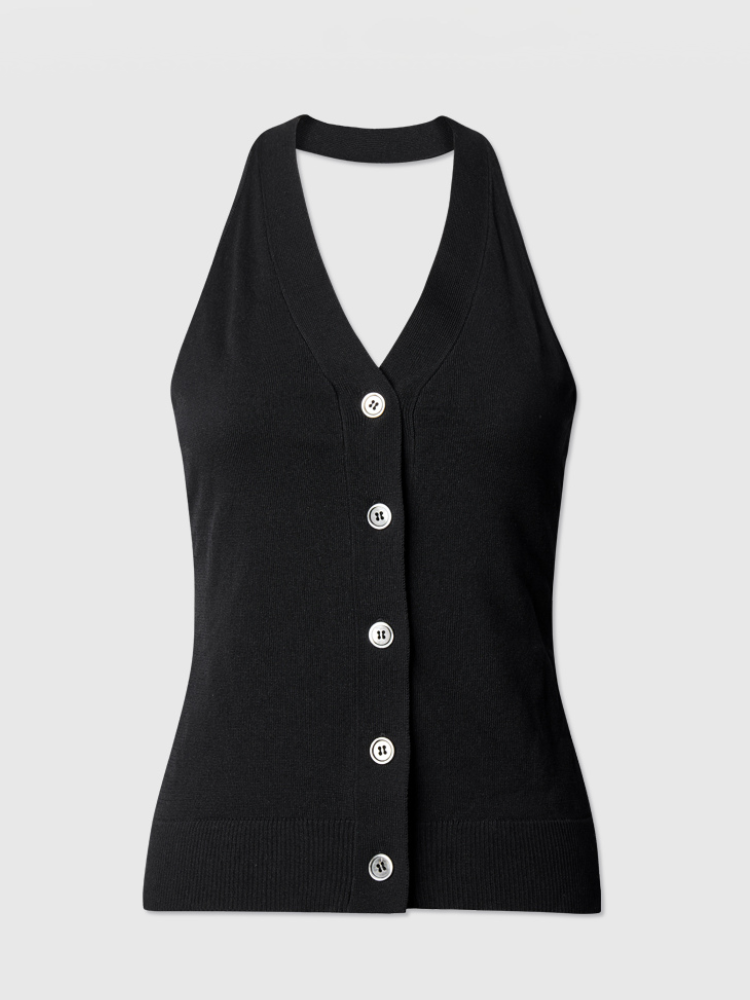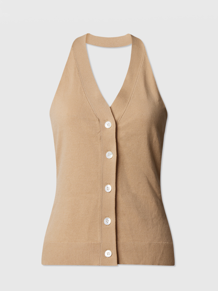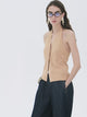 Pima Cotton Acetate Knit V-Neck Halter Top