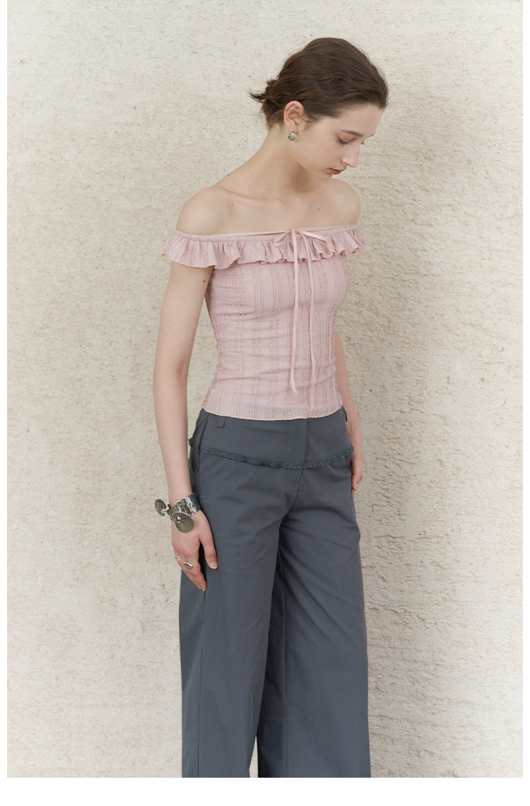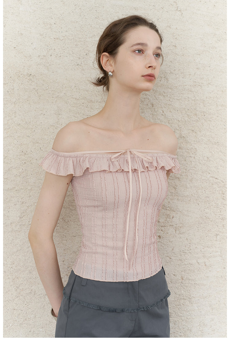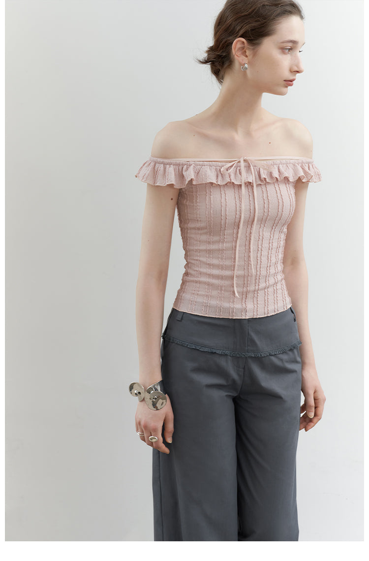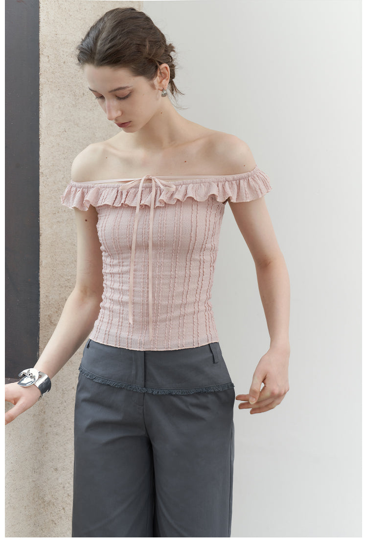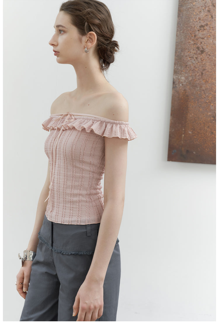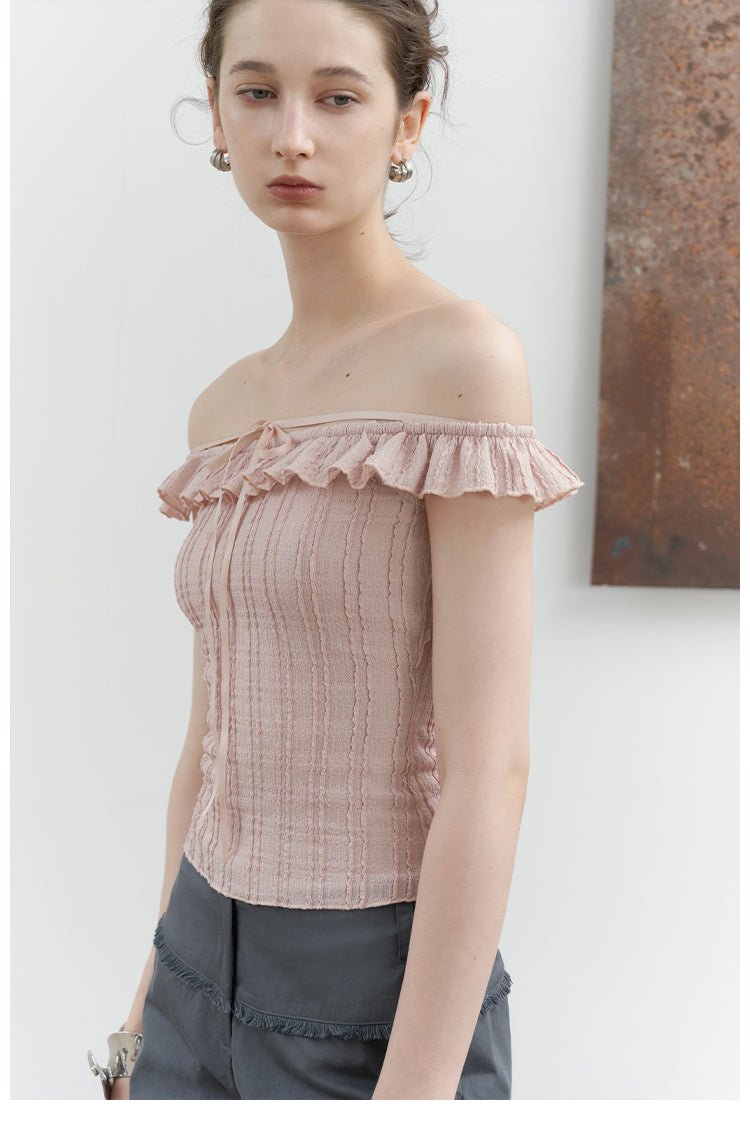 Pink Jacquard Lace Off-Shoulder Tie Top