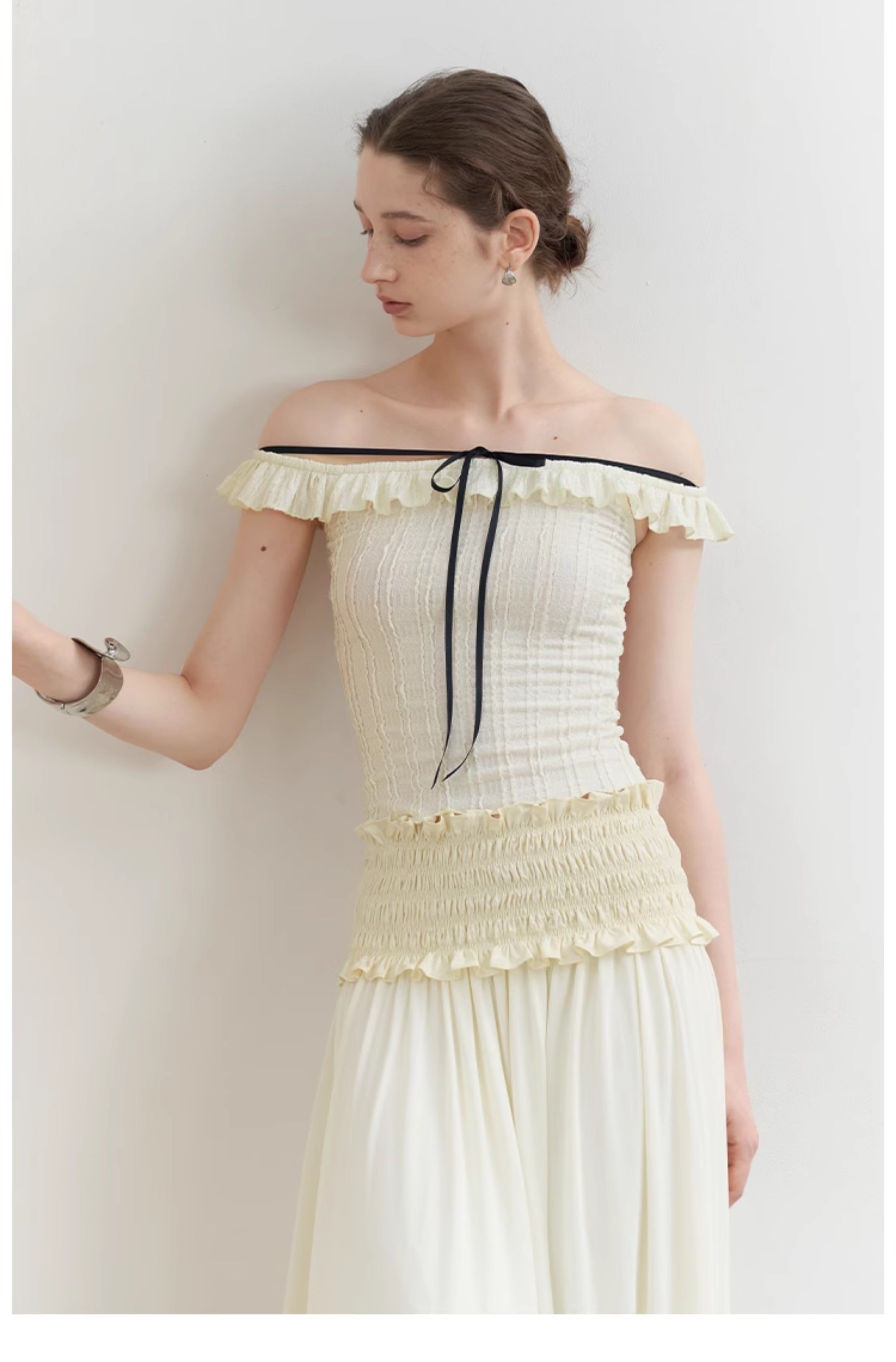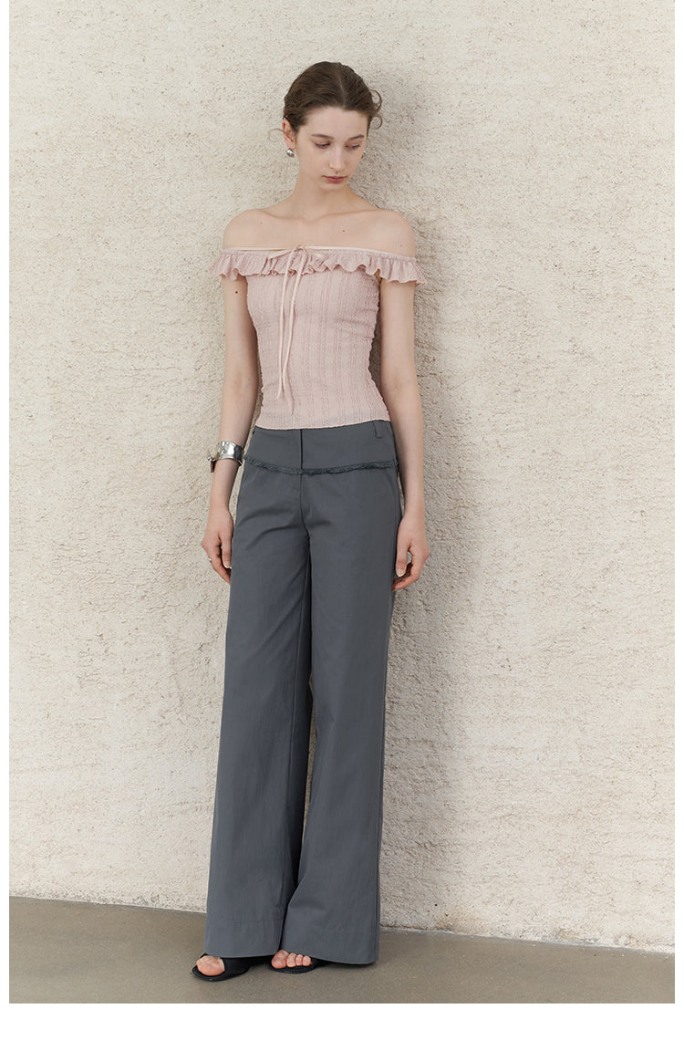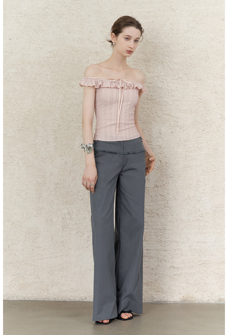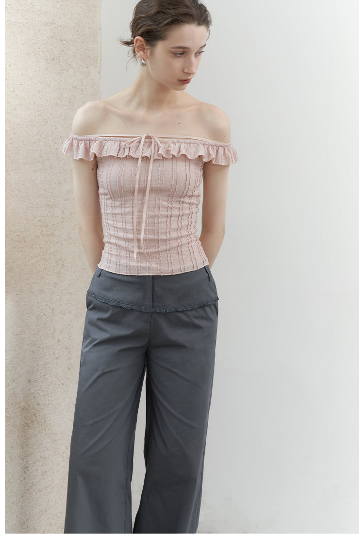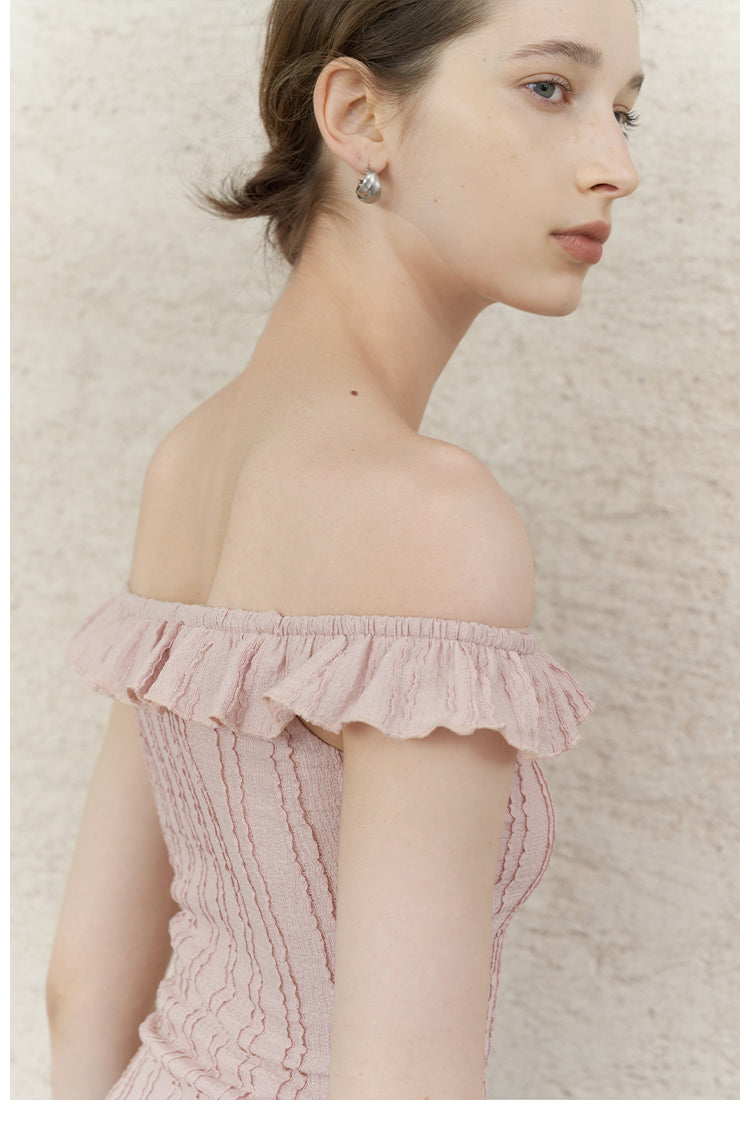Pink Jacquard Lace Off-Shoulder Tie Top