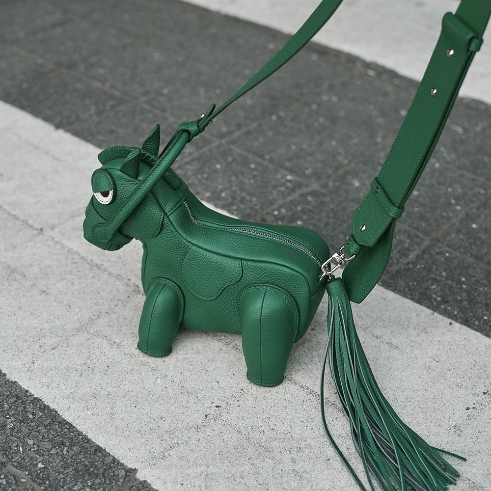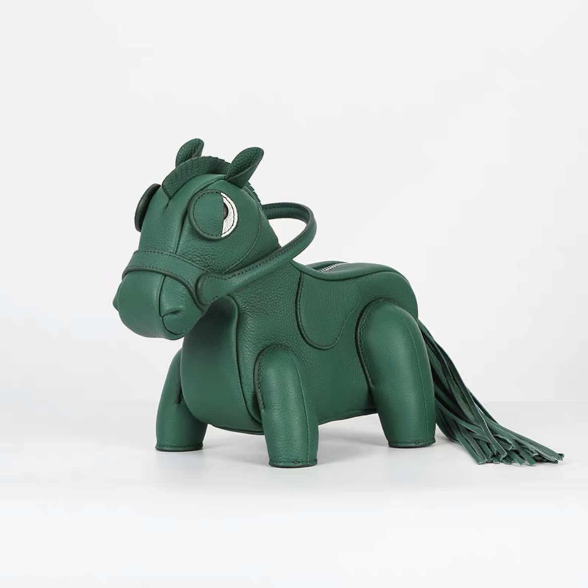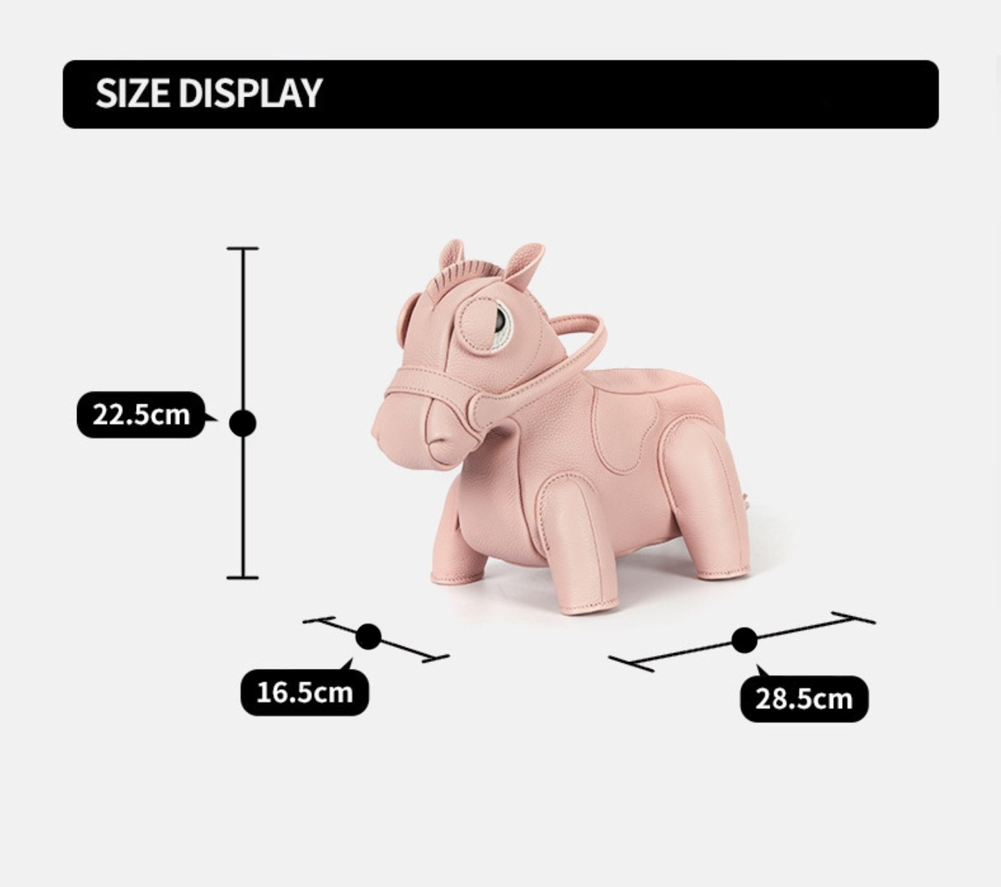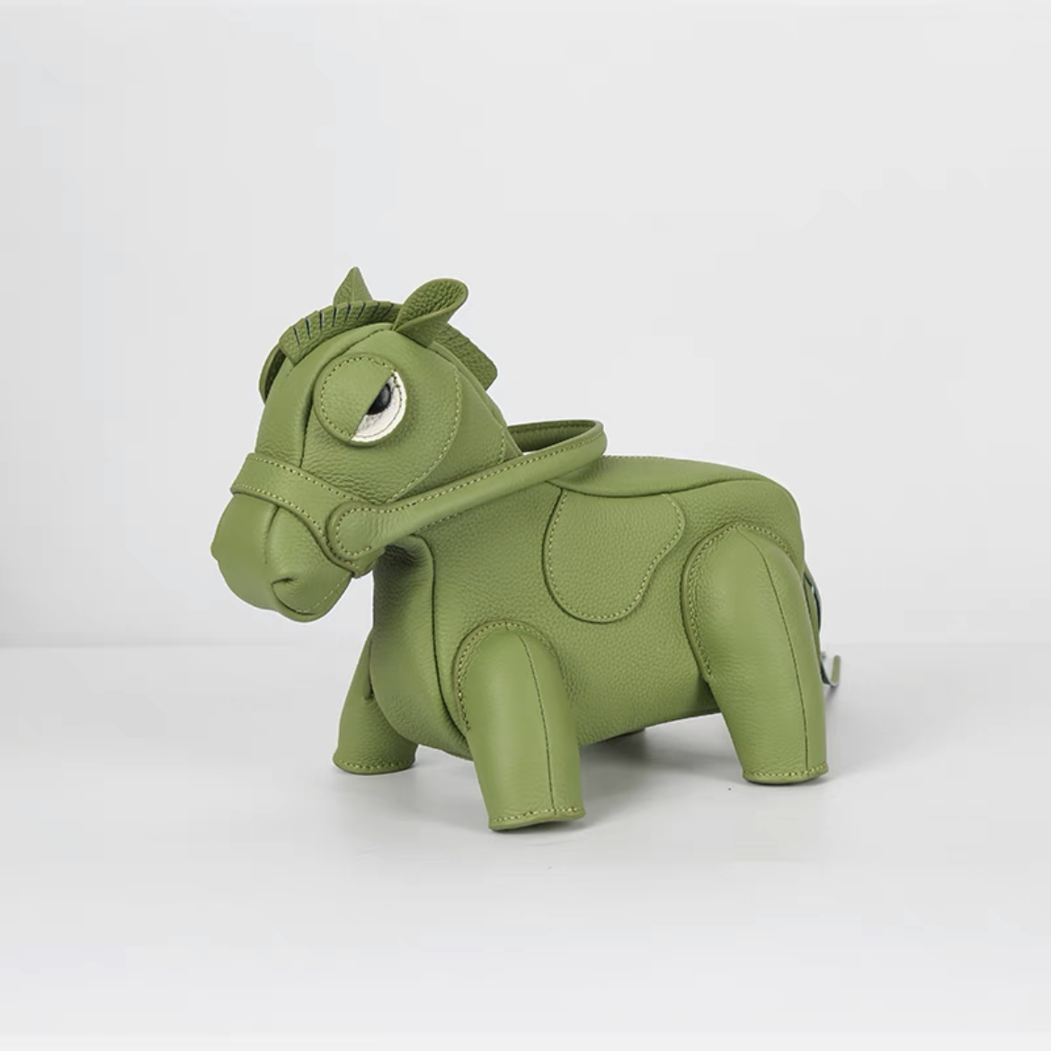 Step into a world of delightful charm with our 'Pony Pals Leather Satchel'. Crafted from quality cowhide, this mid-sized bag is shaped in the form of an adorable little pony, bringing a touch of whimsical appeal to your everyday essentials. This unique satchel not only offers an ample storage solution but also adds an element of fun to your outfit. Ideal for both children and adults who appreciate a playful twist, the 'Pony Pals Leather Satchel' is a must-have accessory that combines style, durability, and a dash of enchanting allure.
