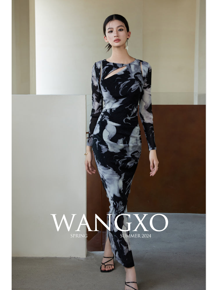 Printed Stretch Knit Dress & Vest Set