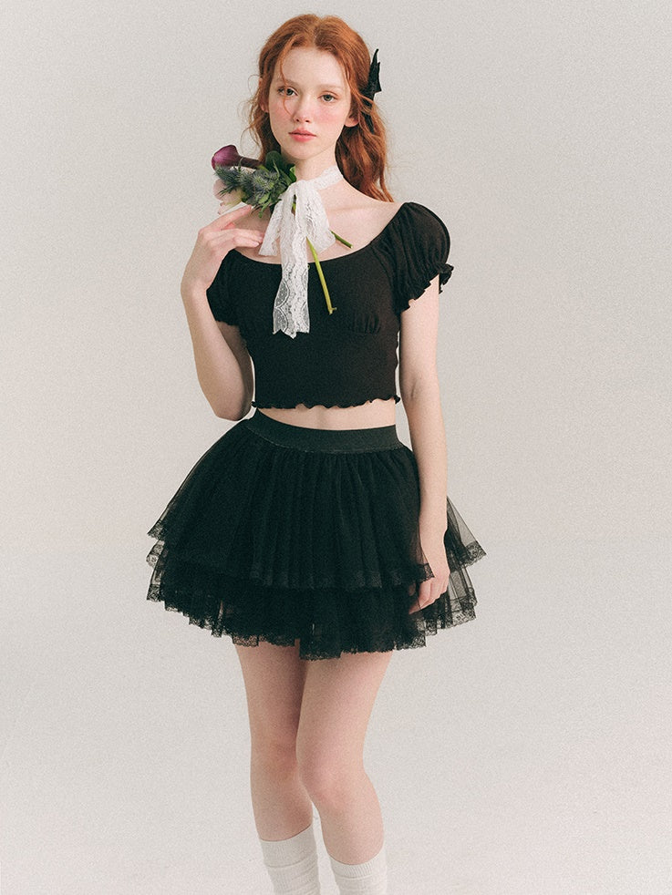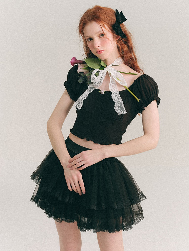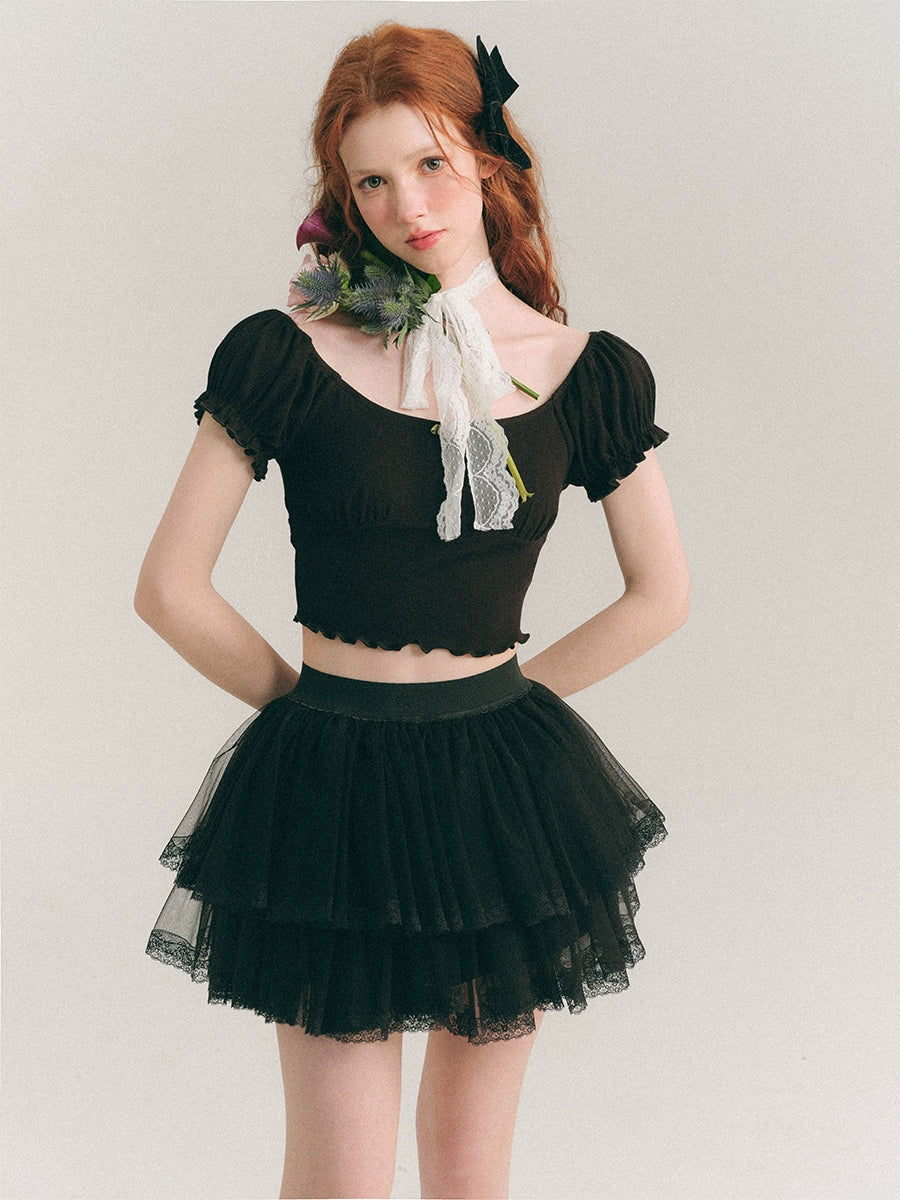 Puff Sleeve Cropped Cutsew