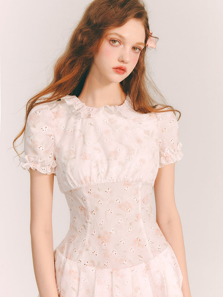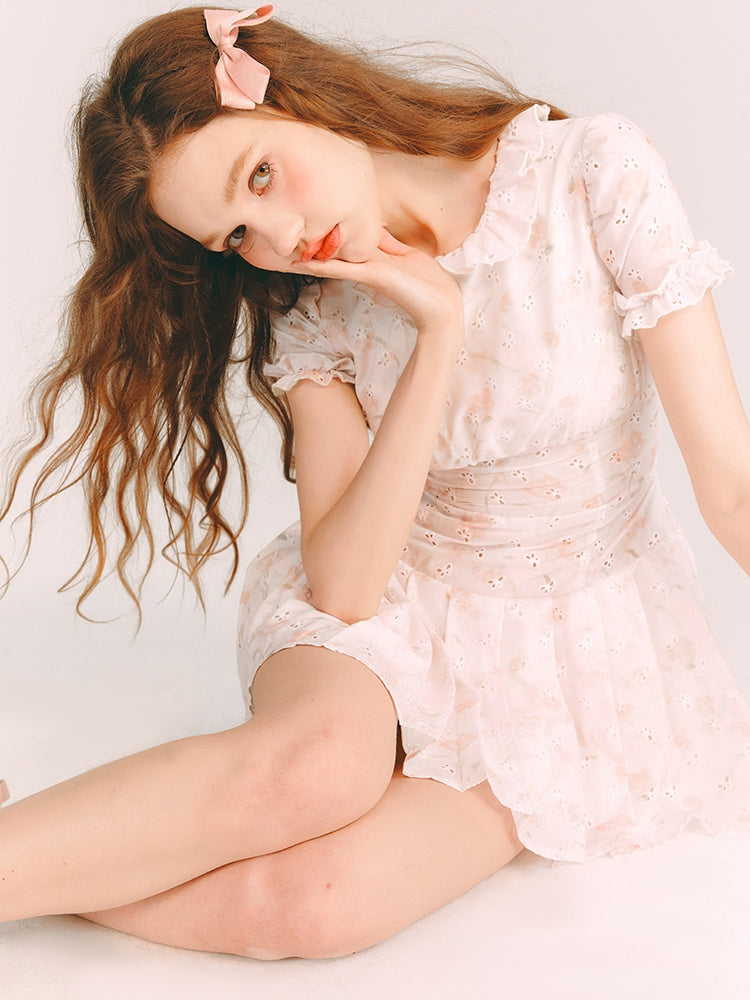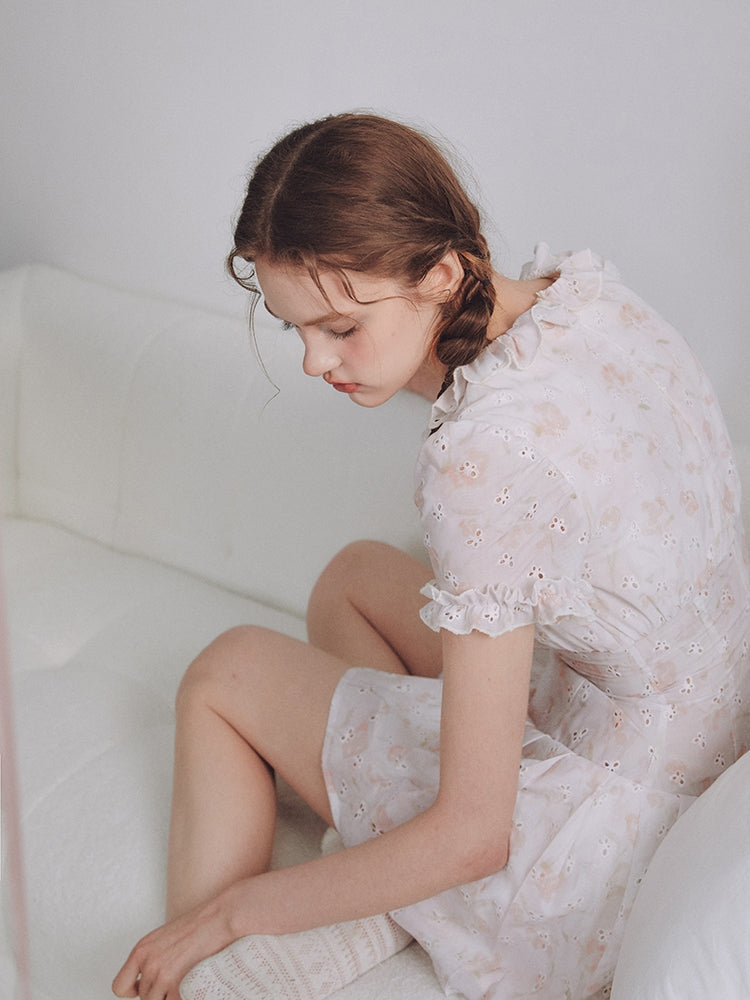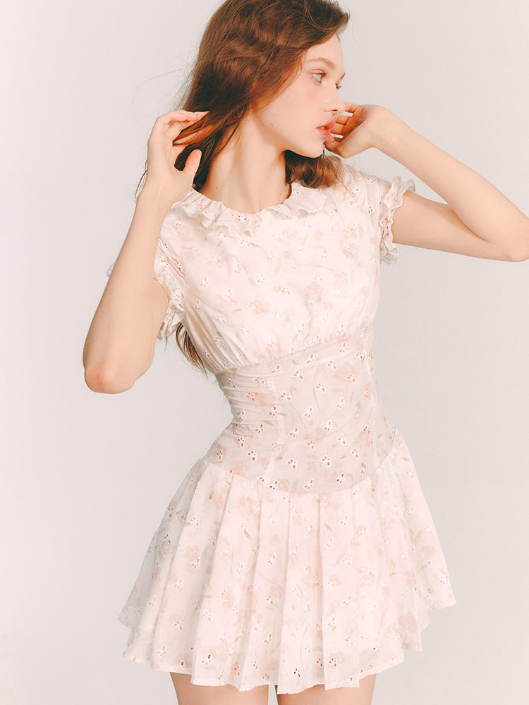 Punching Butterfly Frill Puff-Sleeves Feminine Mini-One-Piece