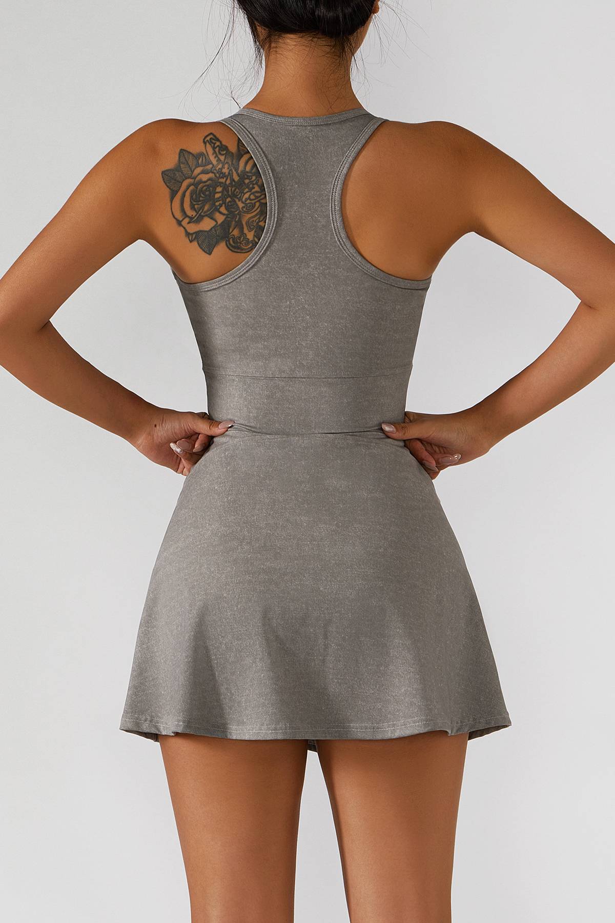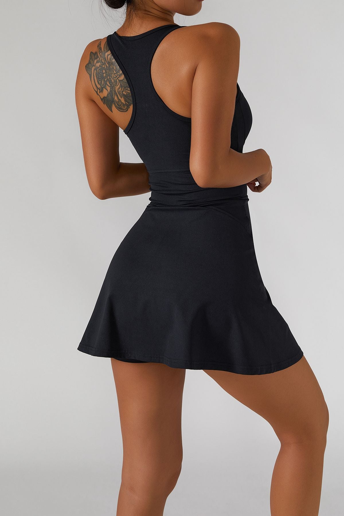 This sweet dress is building-in supportive bras with removable padded hold your breast in. The sexy racerback straps allow for a range of movements with absolutely no restrictions. With inseparable shorts inside, you don't need to wear any other safety pants.