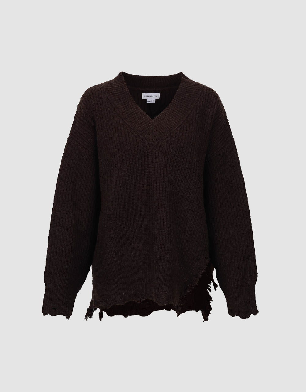 Raw Hem V-Neck Knitted T-Shirt