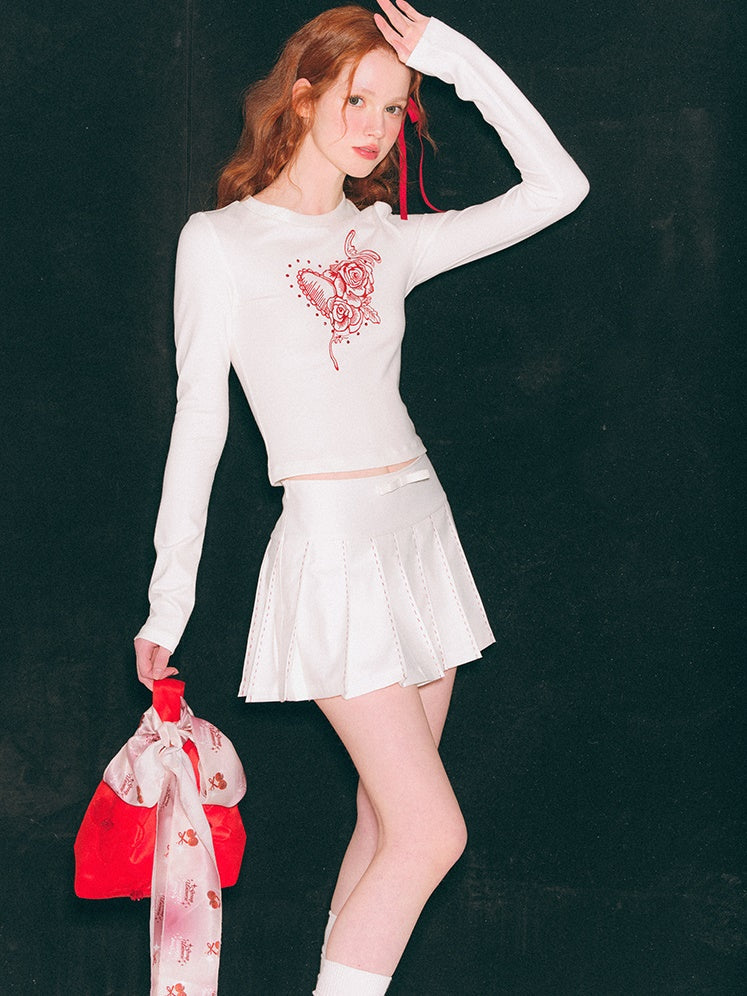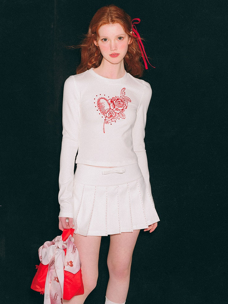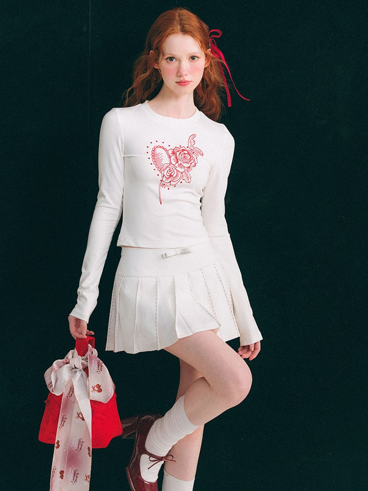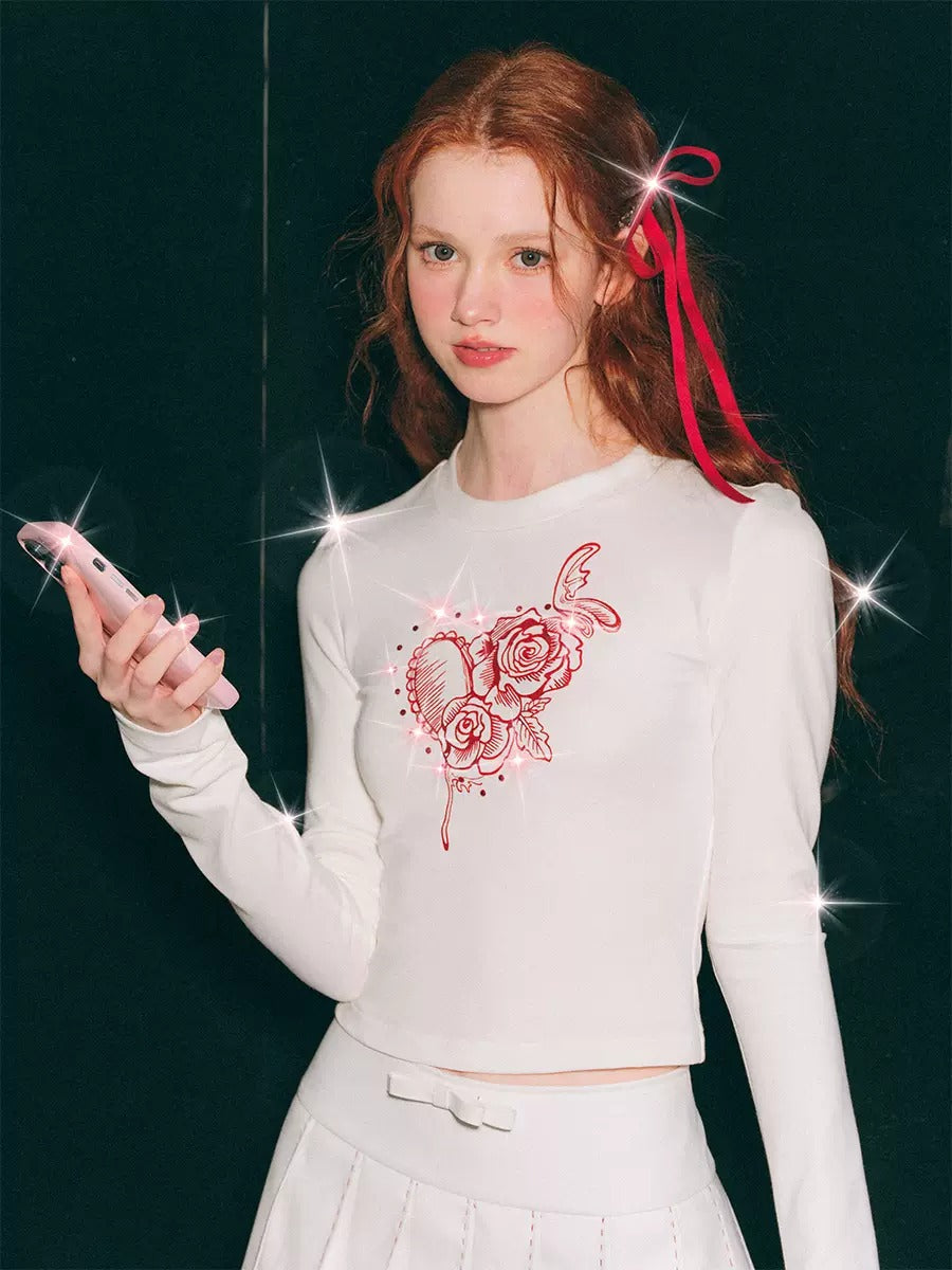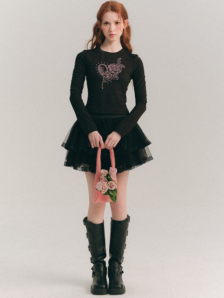 Roses Print Linestone Short & Long Sleeve T-shirt
