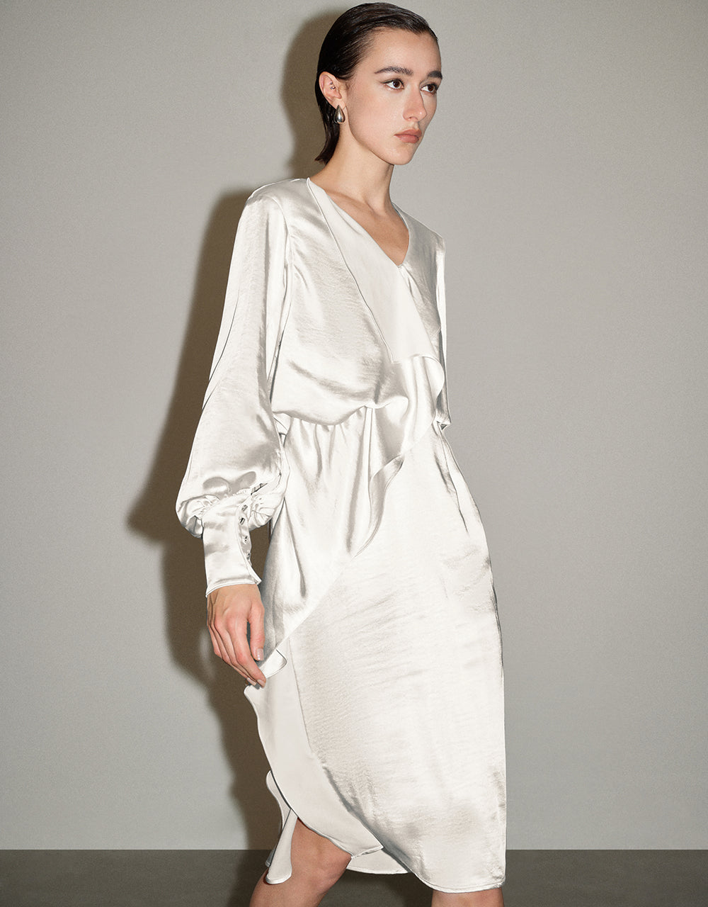 Ruffle V-Neck Straight Dress