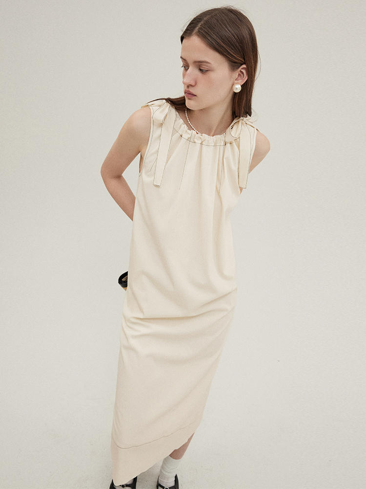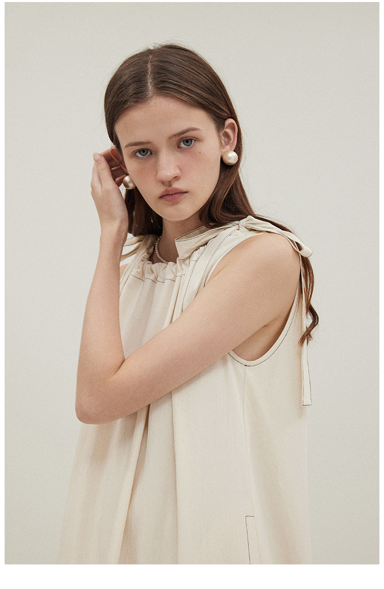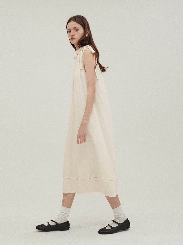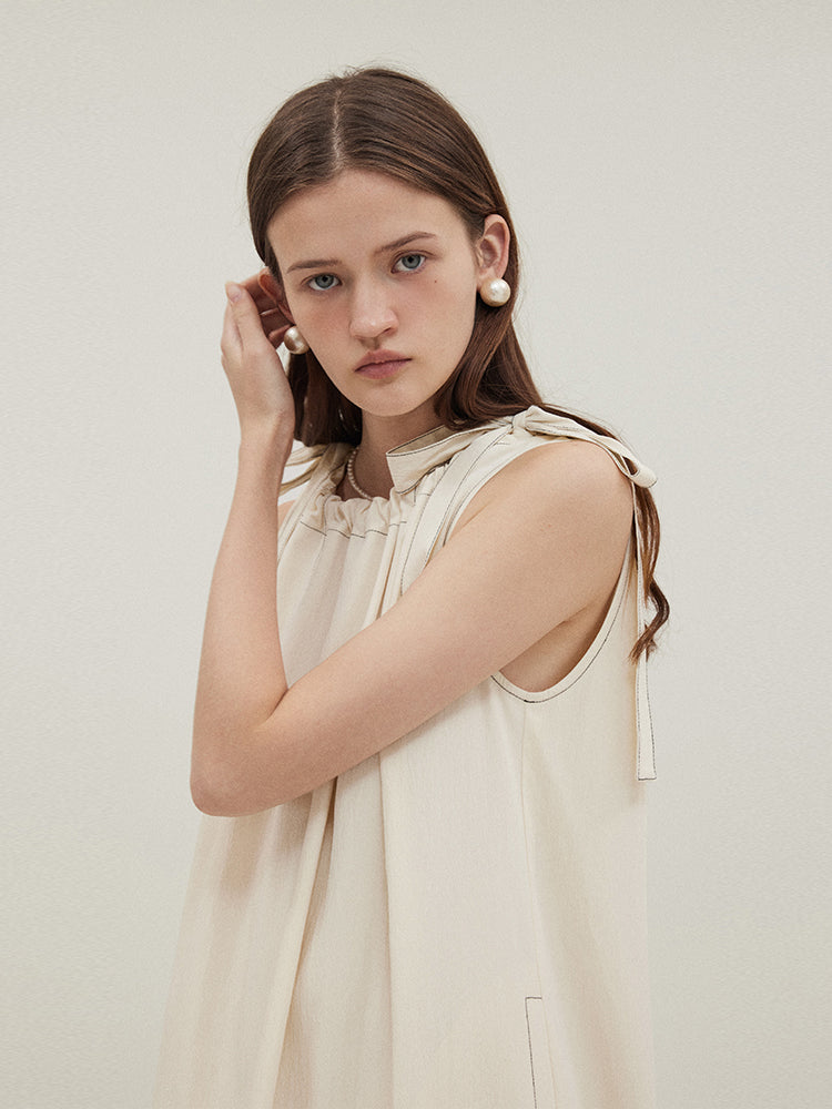 Sleeveless A-line Drawstring Dress