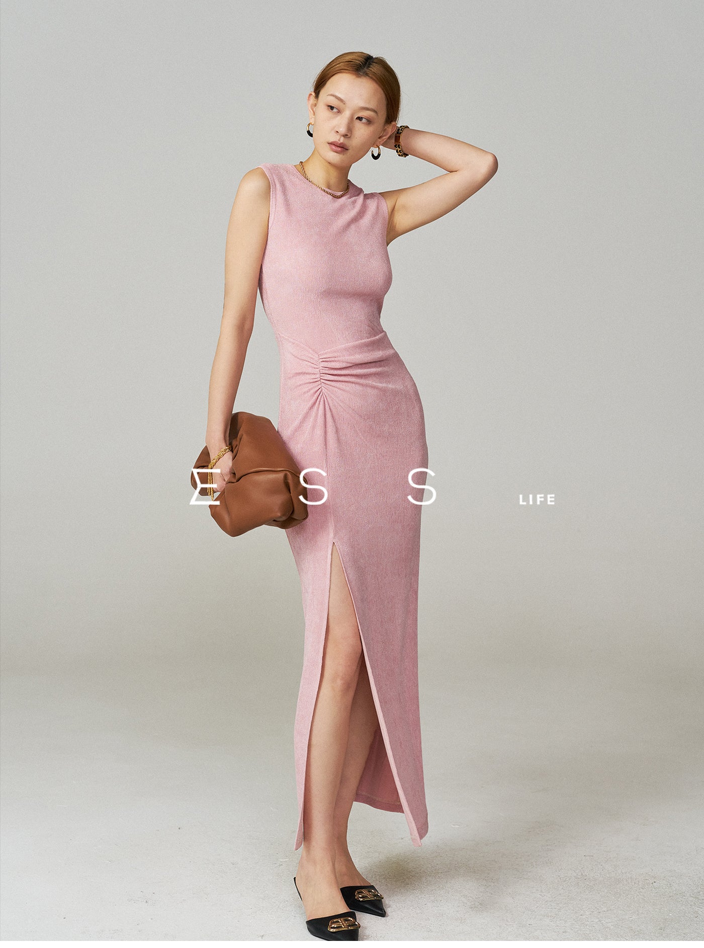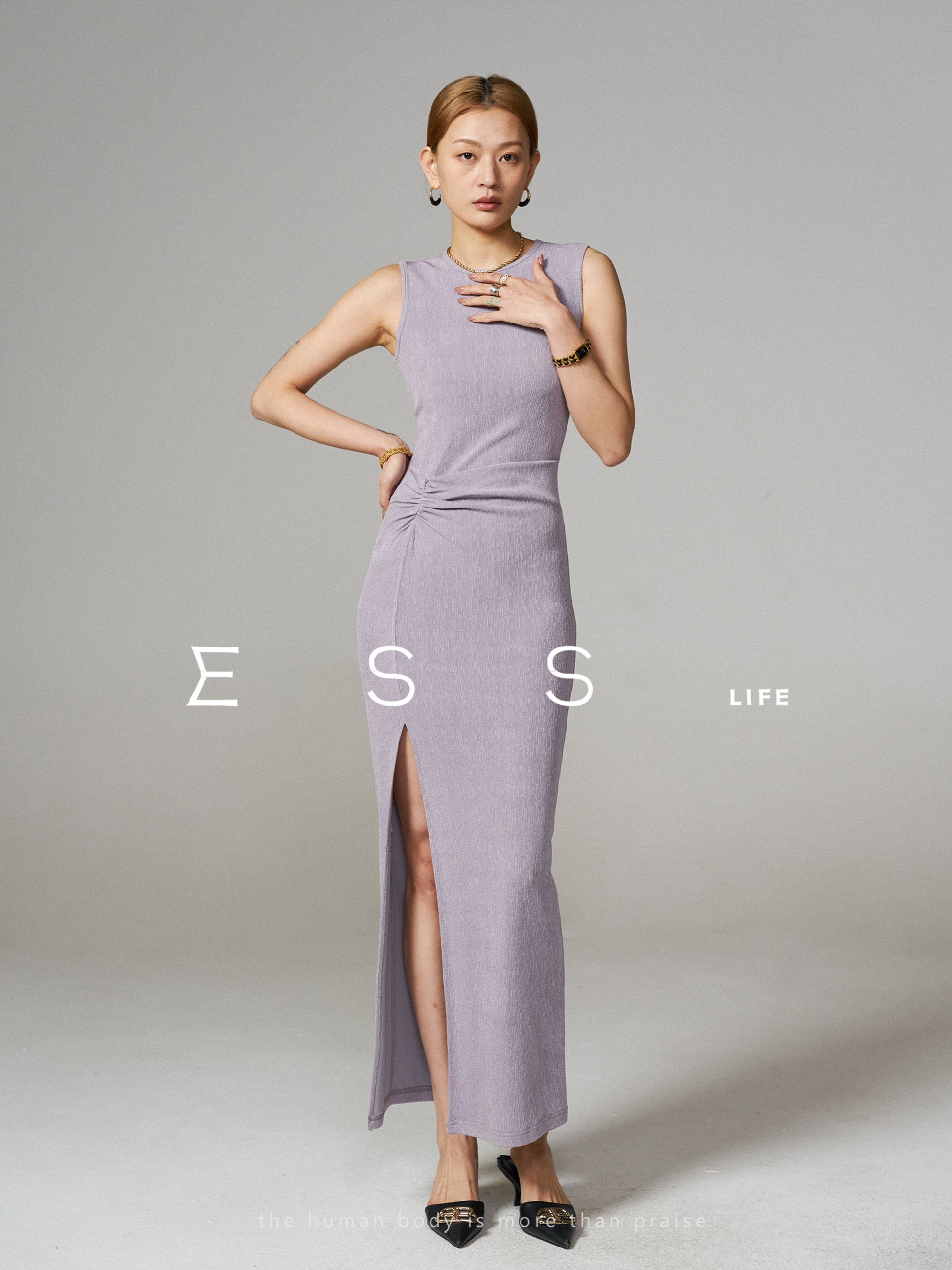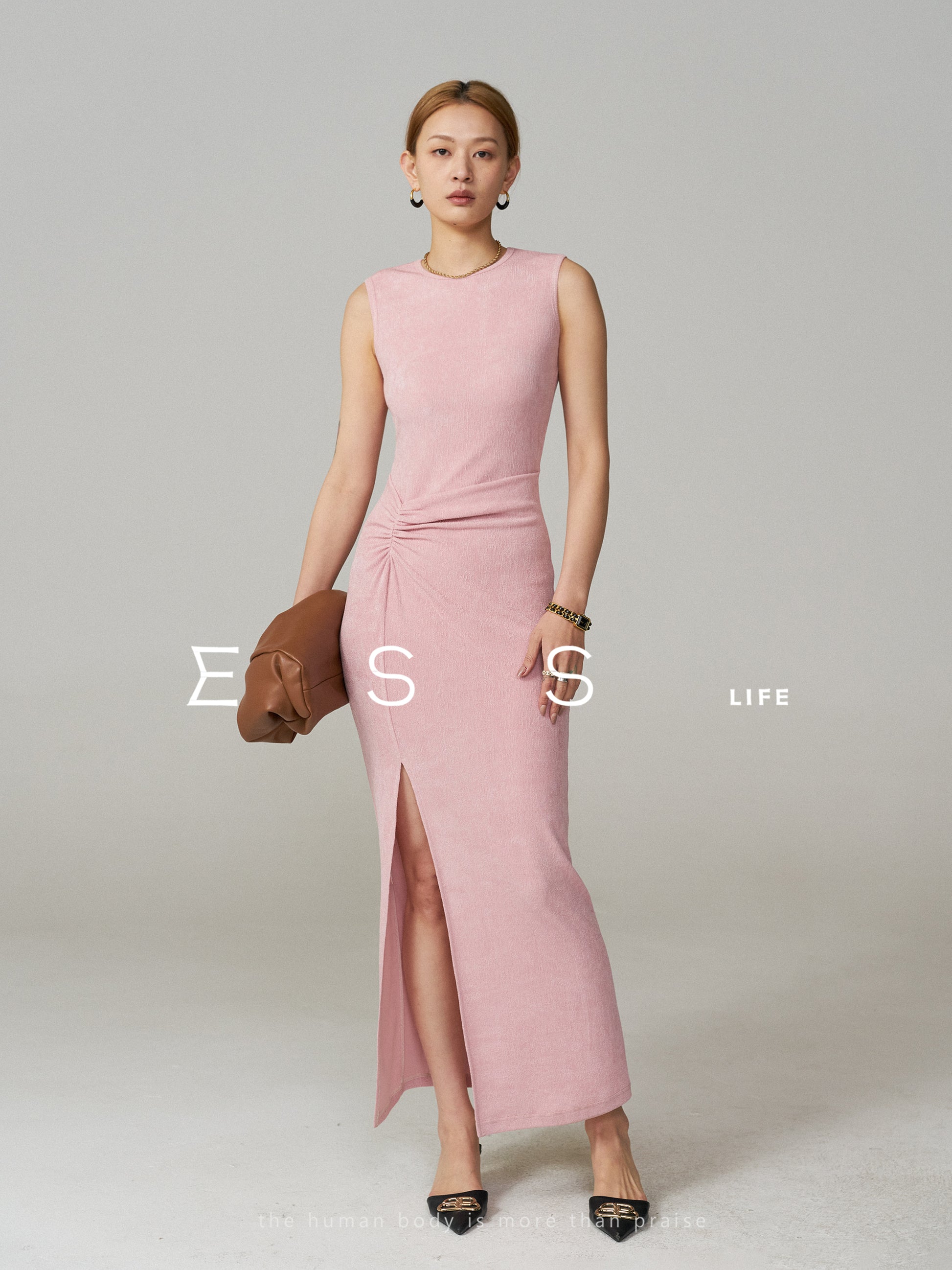 Sleeveless Acetate Split Maxi Dress