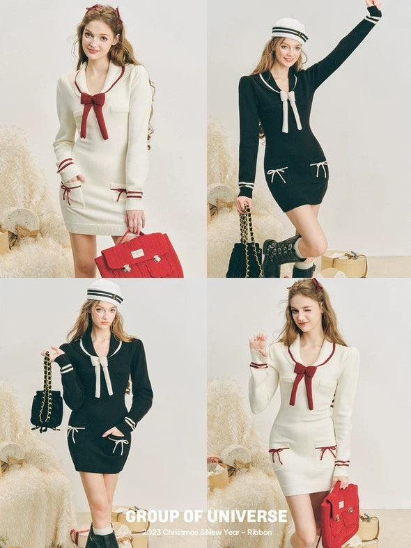 Slim Sailor Knit One-piece