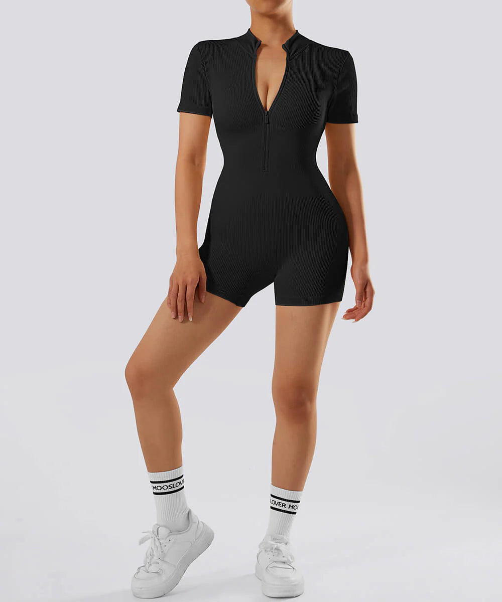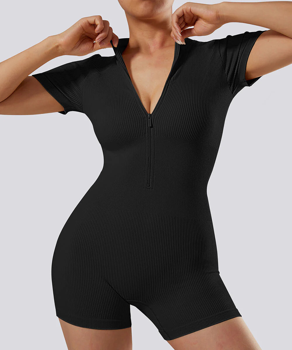 Our viral ribbed zip up romper is what your body needs this season. It supports and hugs the figure in all the right places. Accentuates your curves beautifully with thick ribbed fabrics. This wearable shape-wear provides maximum compression, 4-way stretch, with a ribbed texture feel. It’s full body sculpting features make you feel as amazing as you look.