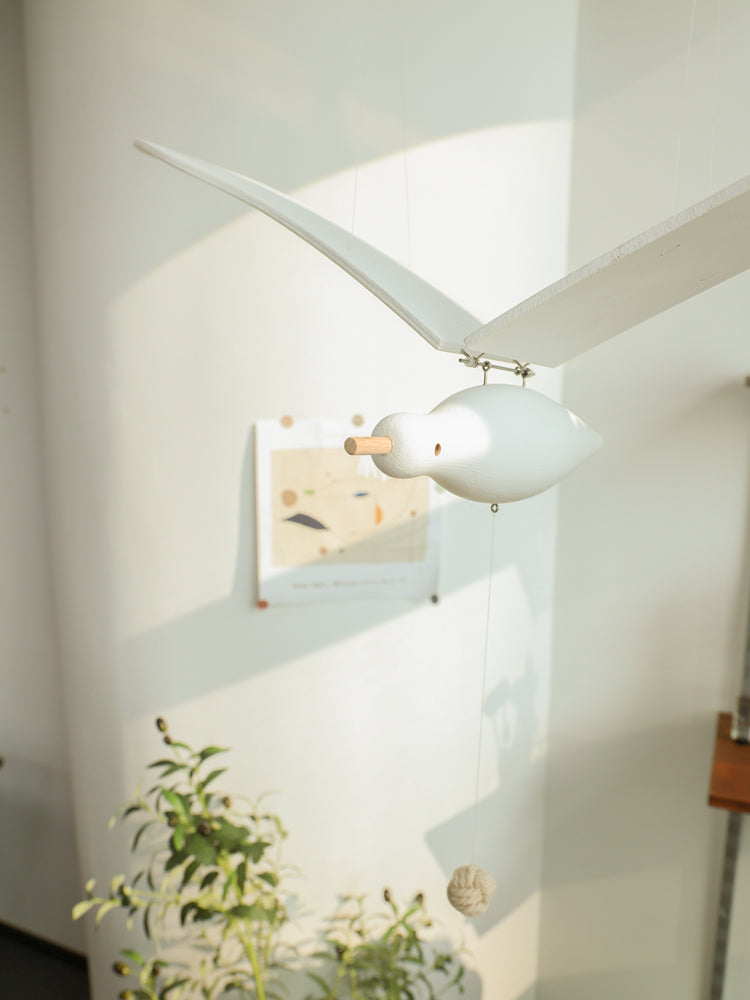 Invite a breath of coastal serenity into your space with our Soaring Seagull. Crafted meticulously from premium pine wood, each detail on this white seagull exudes warmth and texture. As it flaps its wings, be reminded of tranquil blue oceans, standing palm trees, and a fleeting moment of calm. Perfect for the living room or balcony, a gentle tug brings this seagull to life, offering a brief escape from daily stresses. Experience relaxation and healing, and cherish the simple beauty around you.