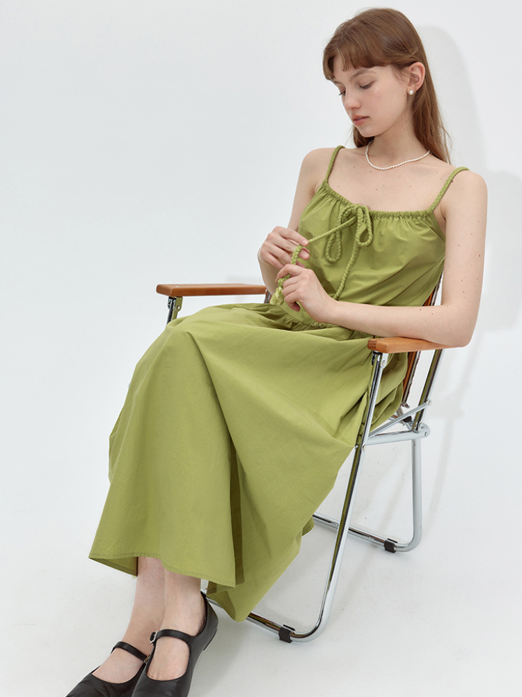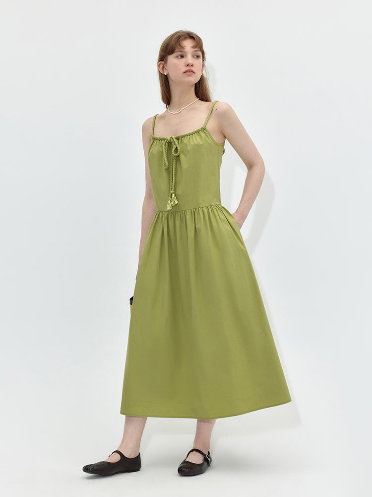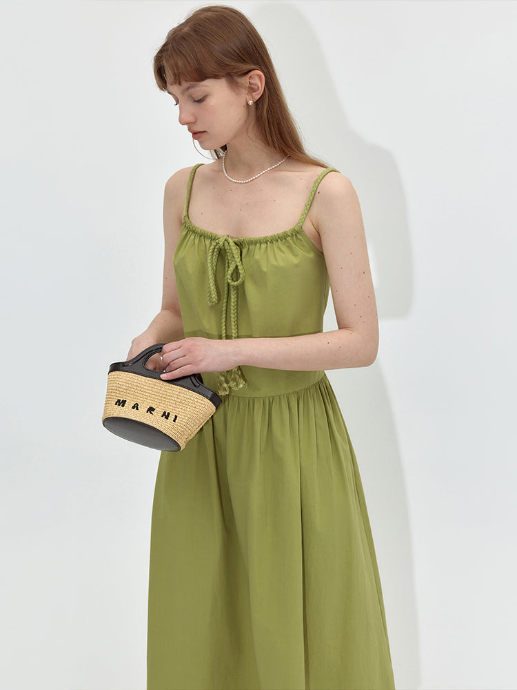 Square Neck Ruched Tie A-line Dress