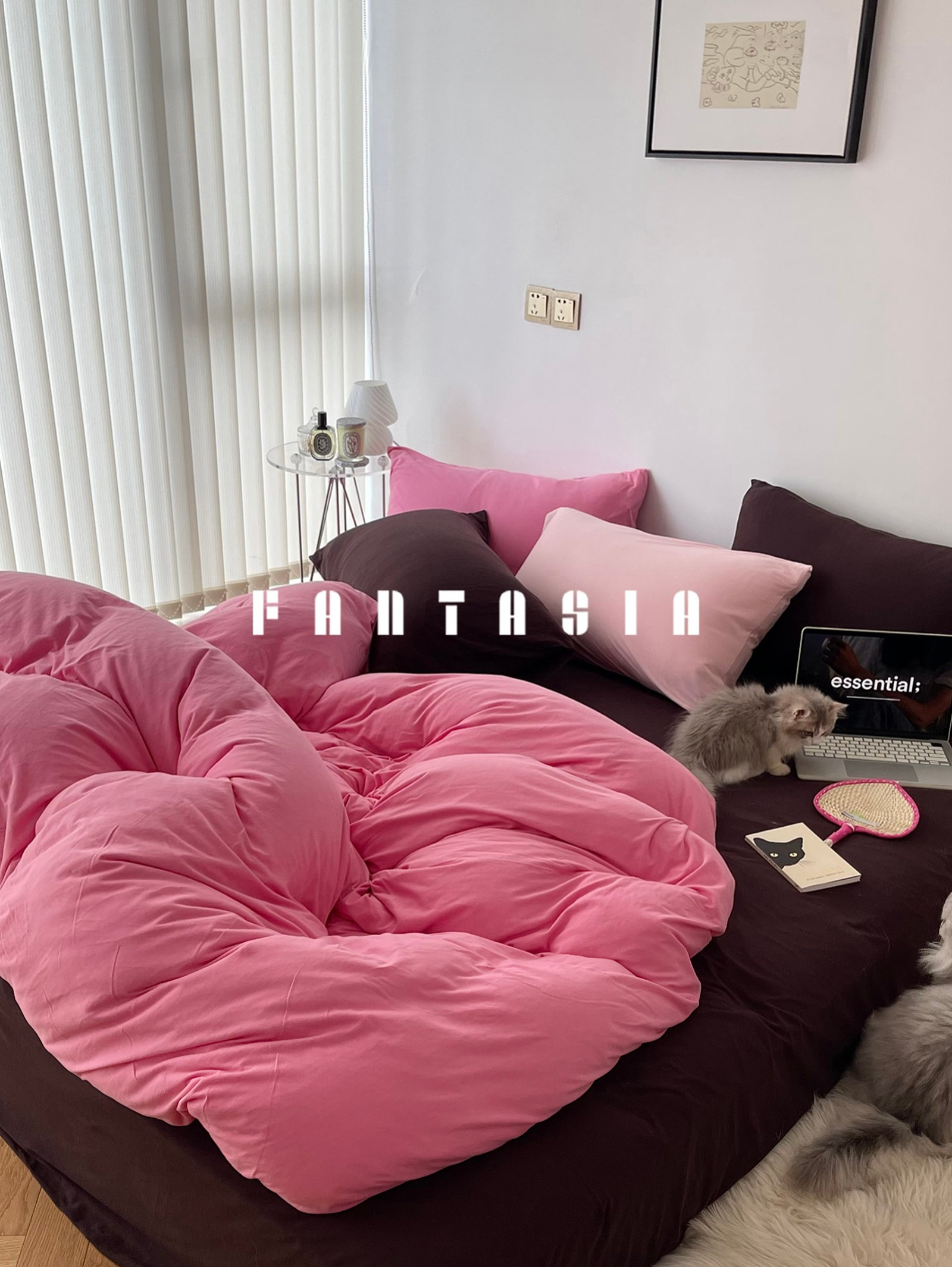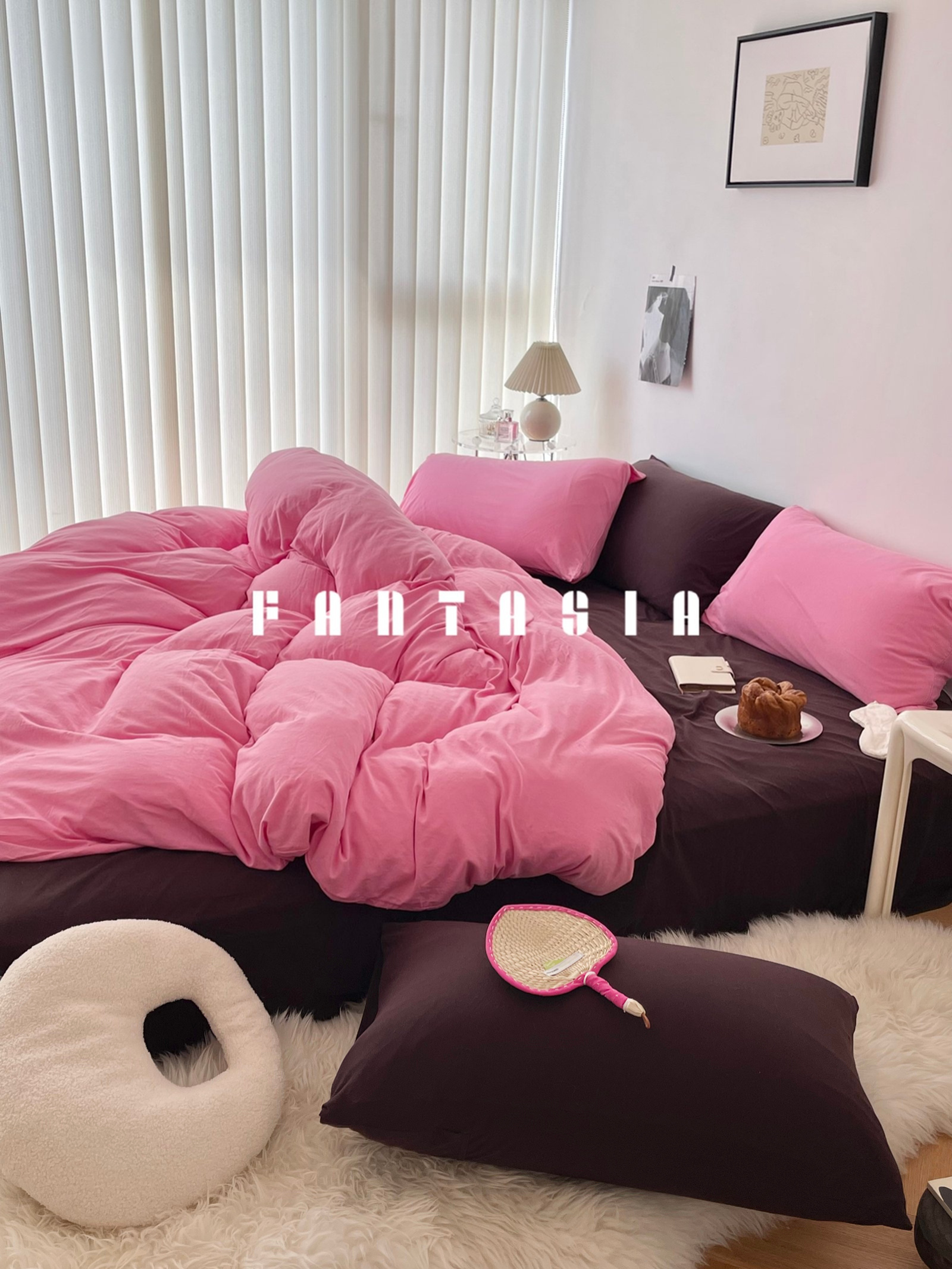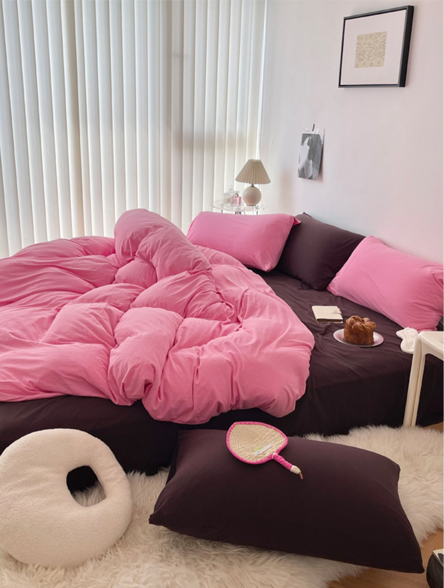 Strawberry Brownie: Pink-Brown Cotton Knit Bedding Set