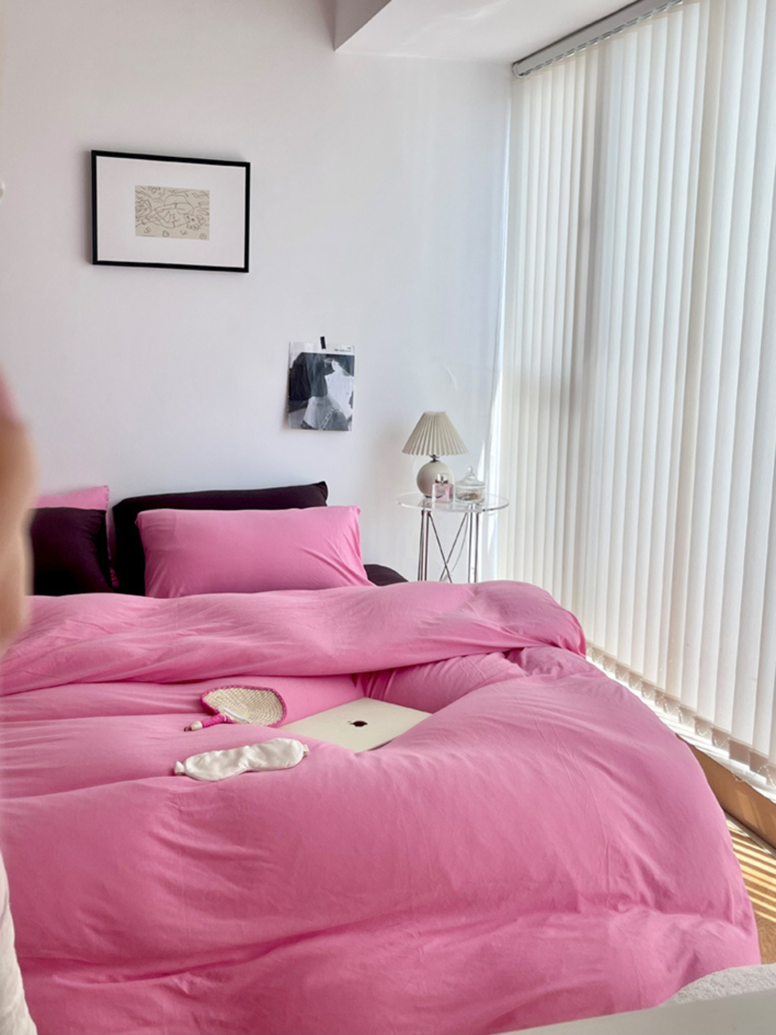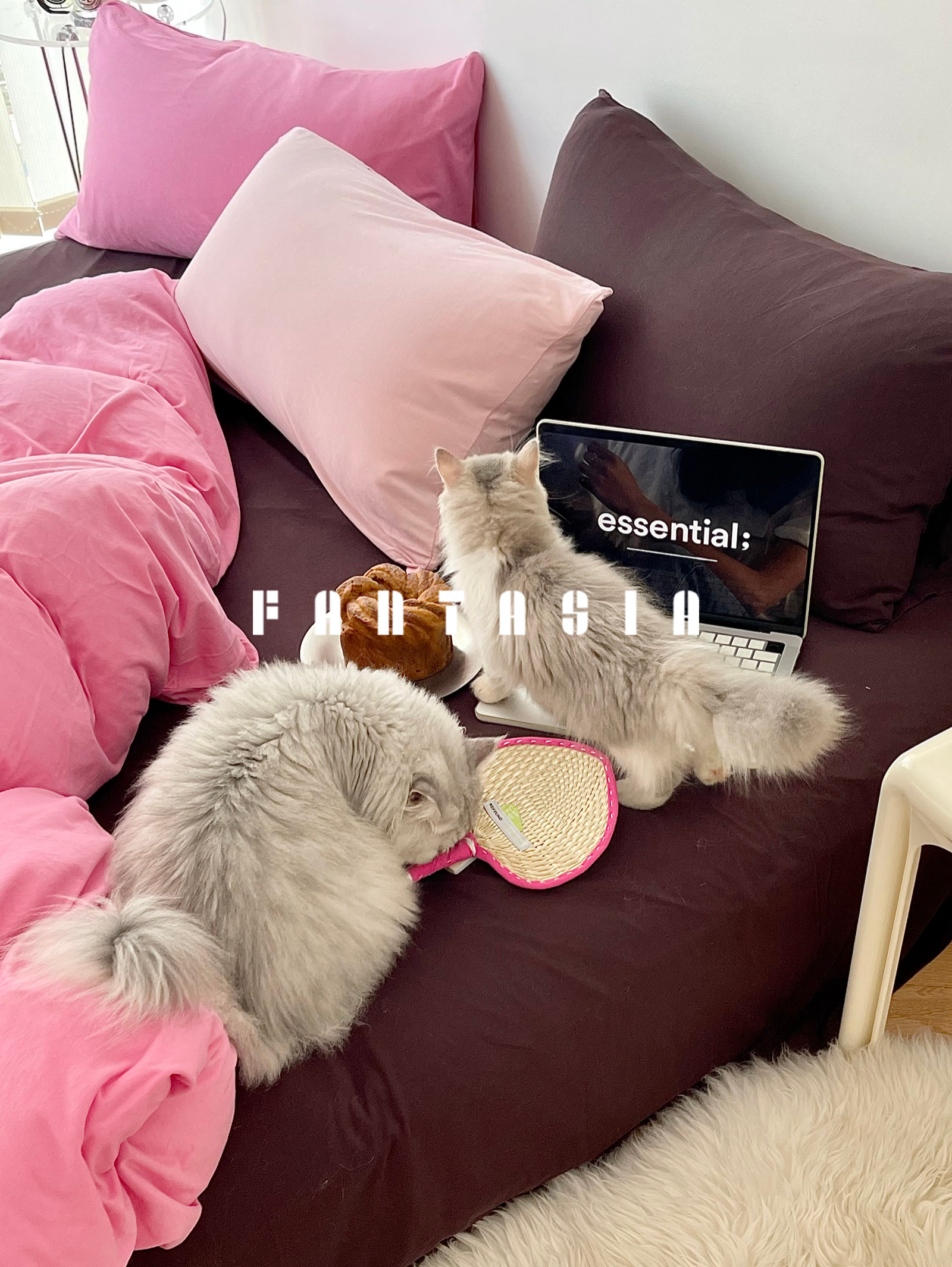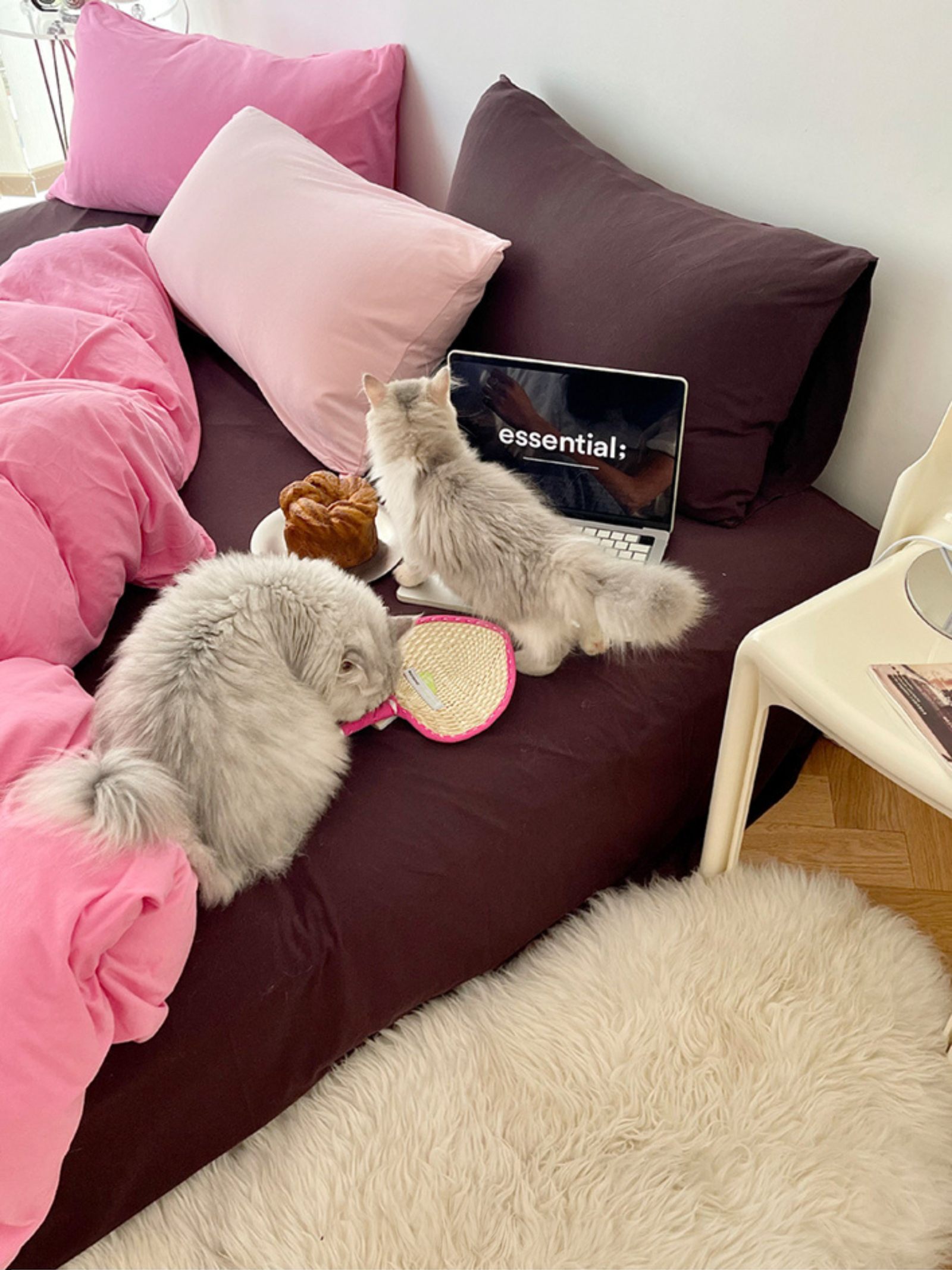 Strawberry Brownie: Pink-Brown Cotton Knit Bedding Set
