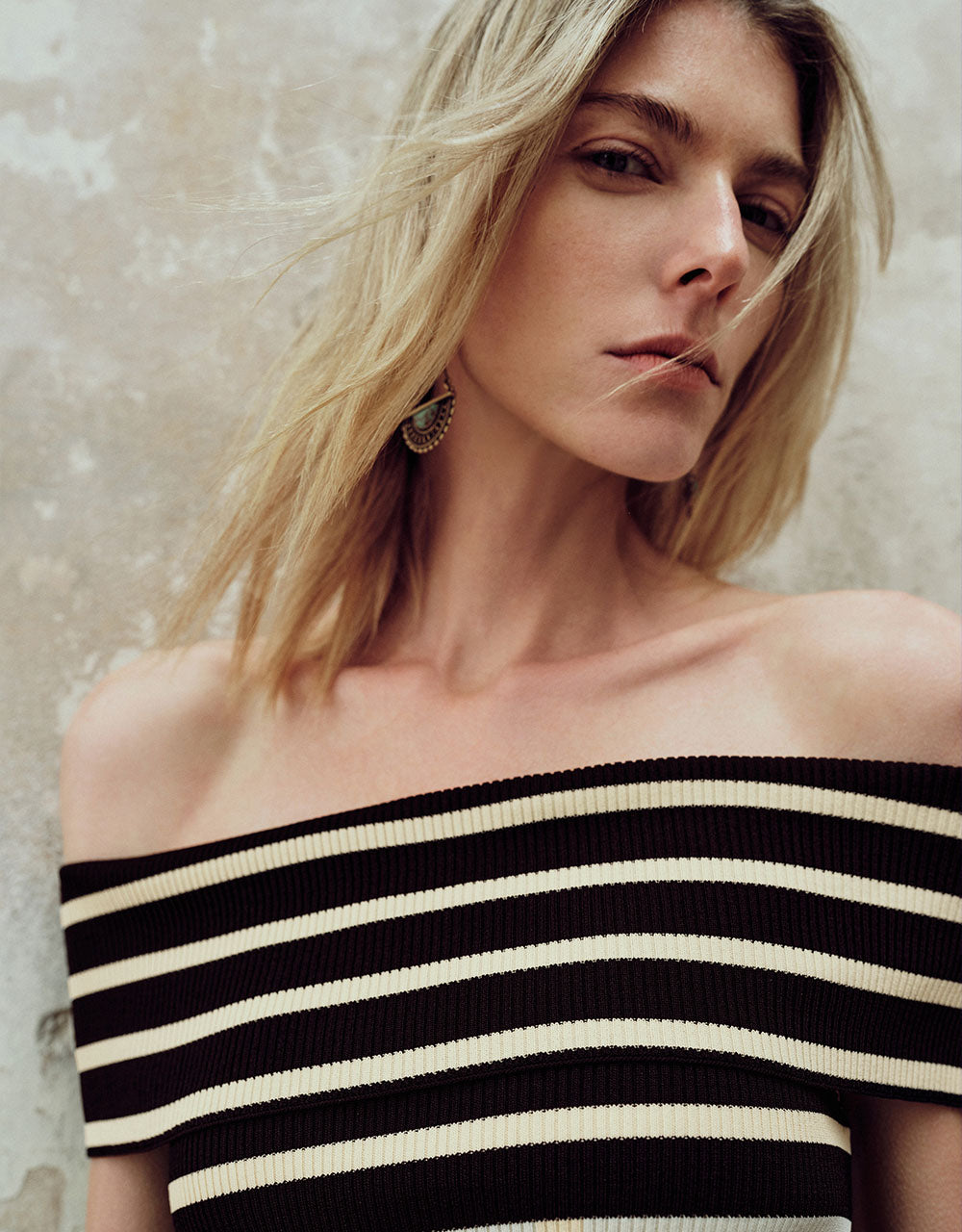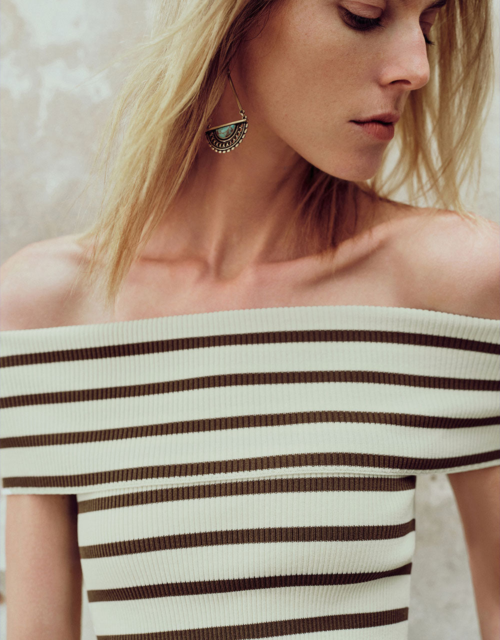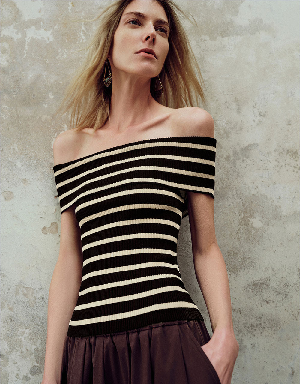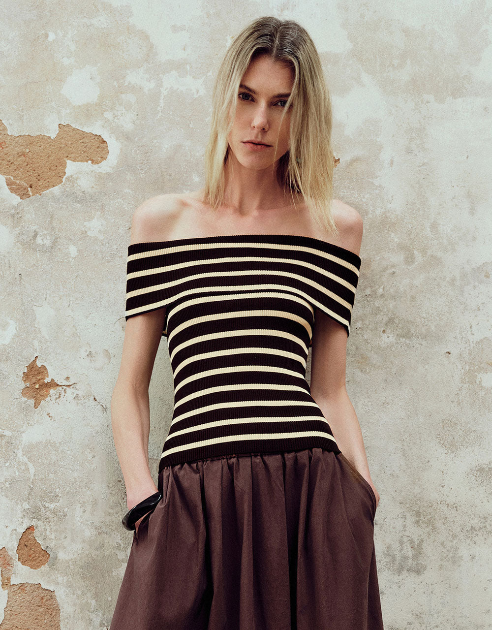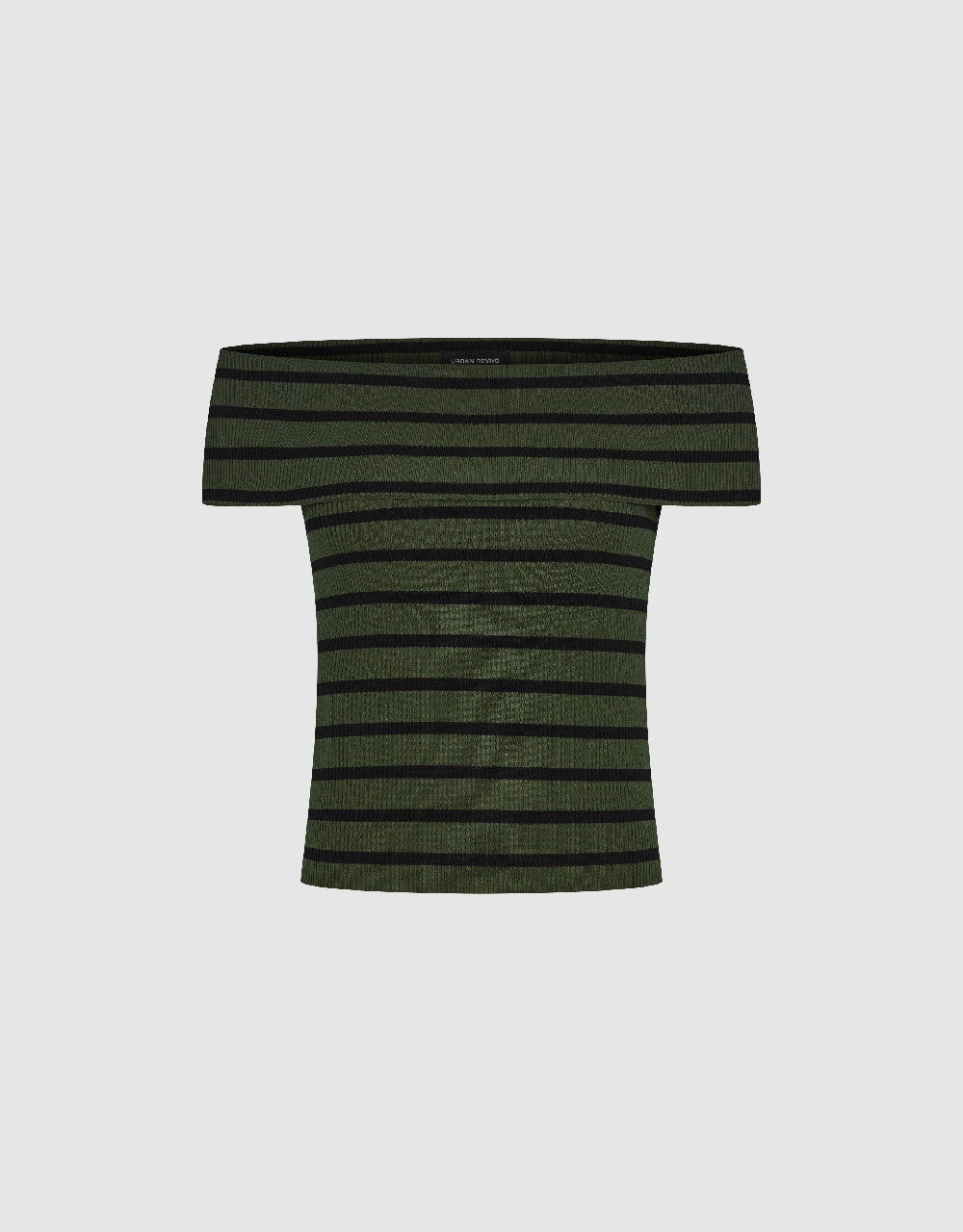 Striped Off-Shoulder Knitted T-Shirt