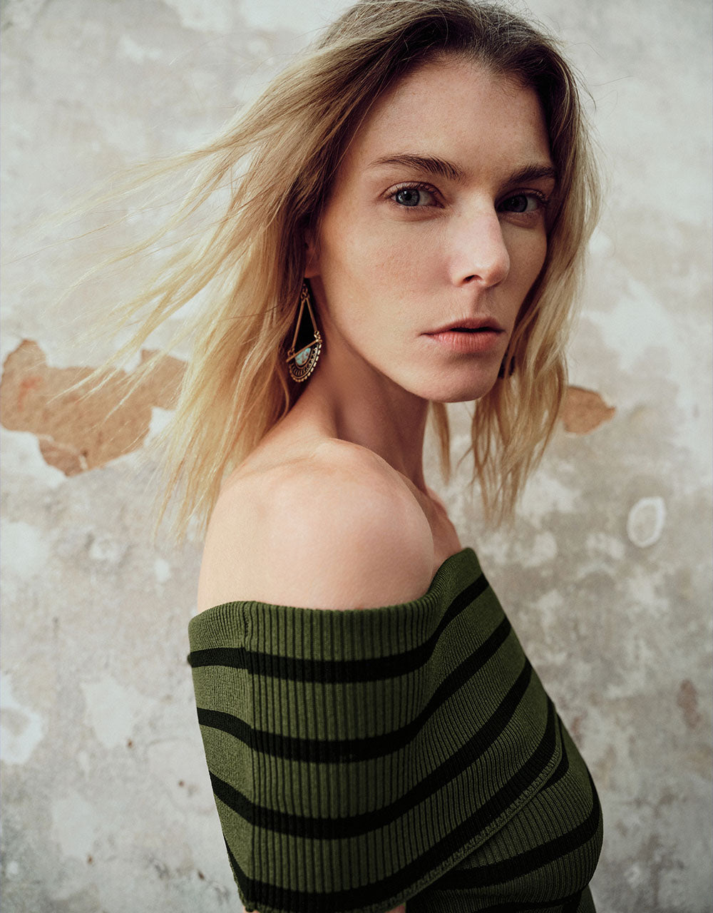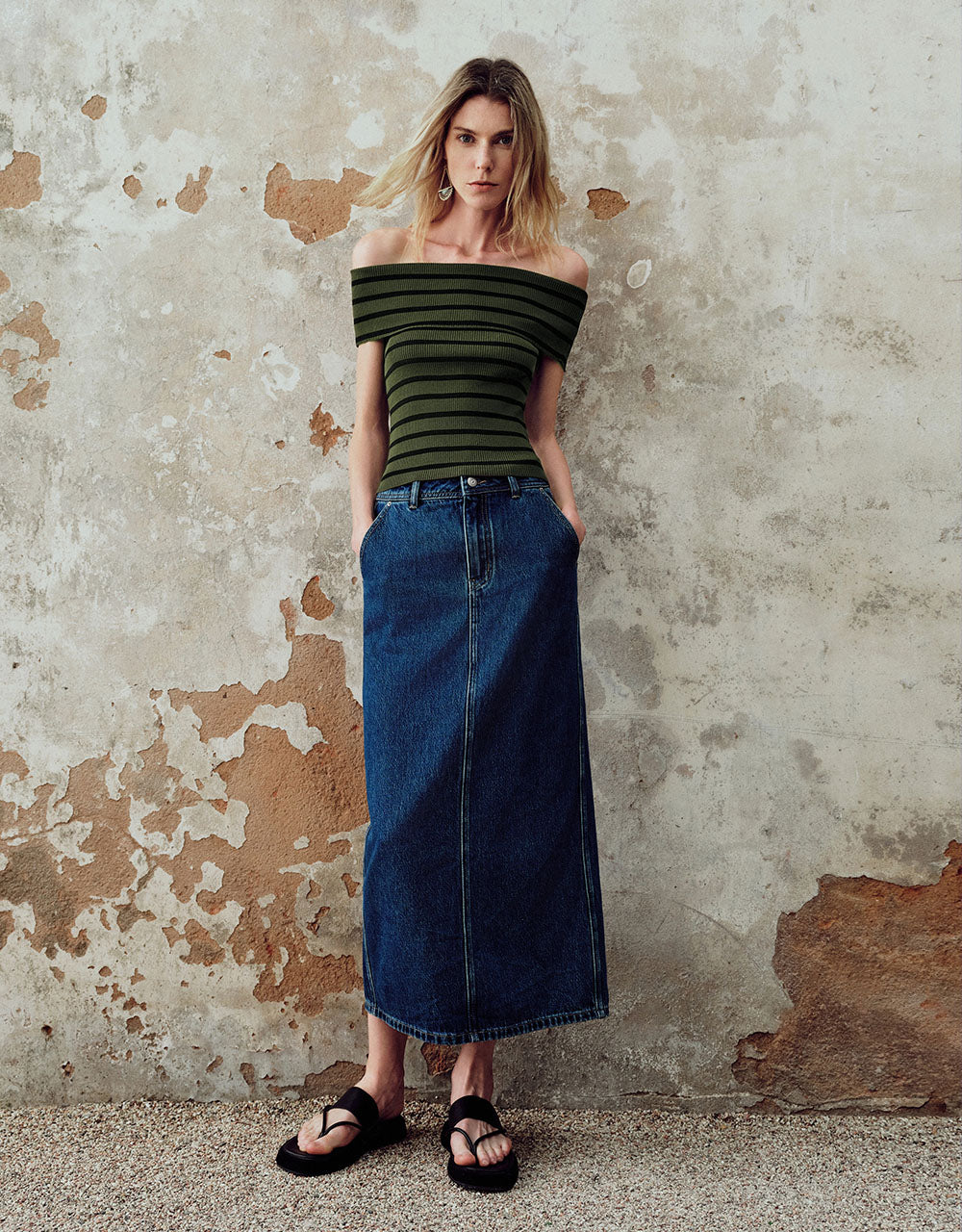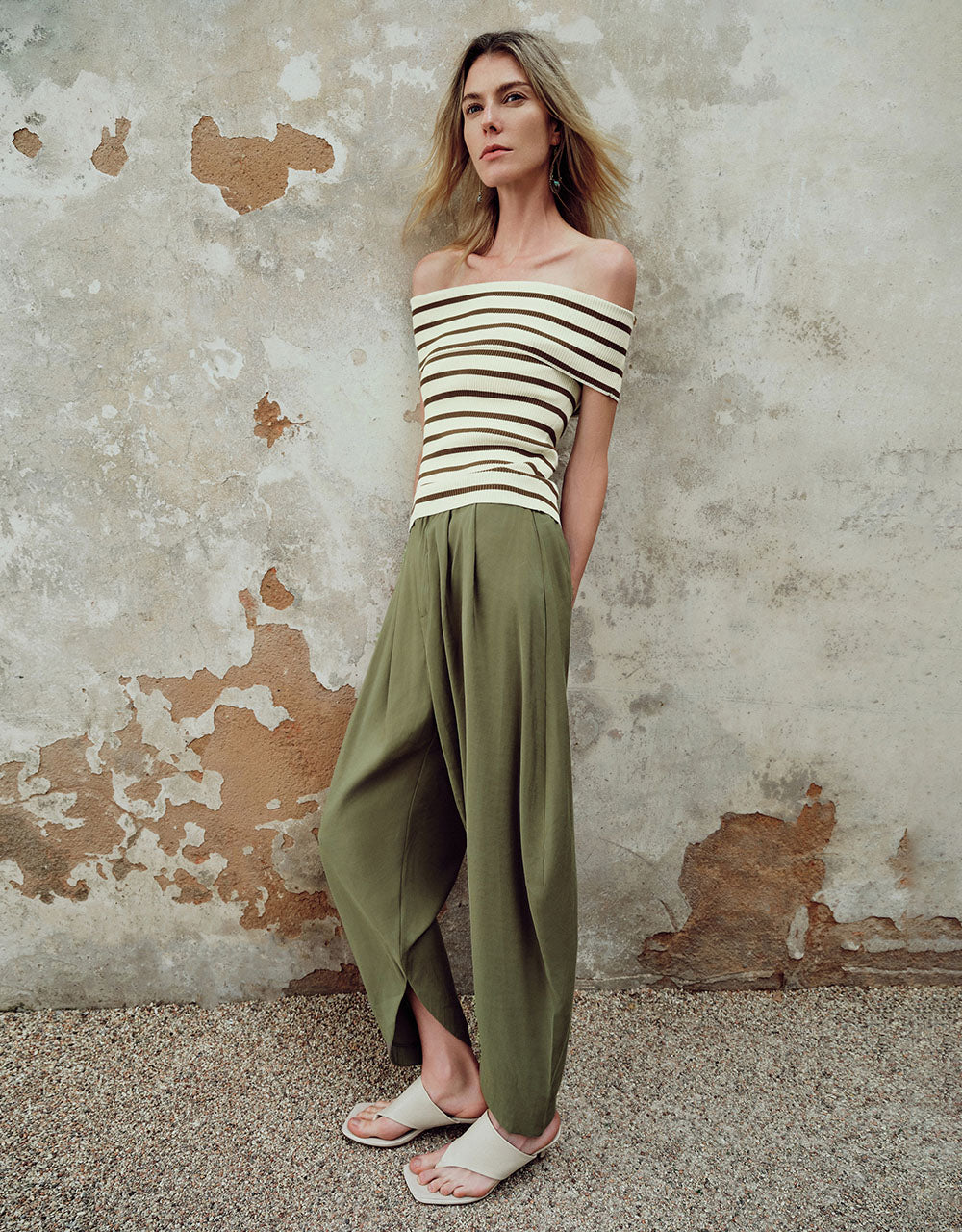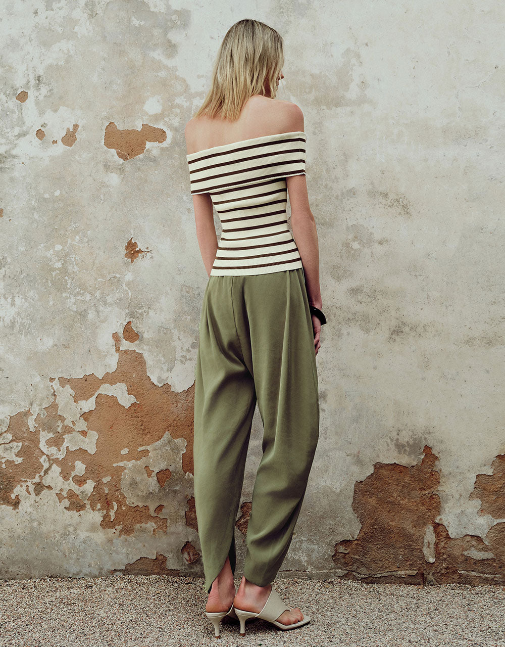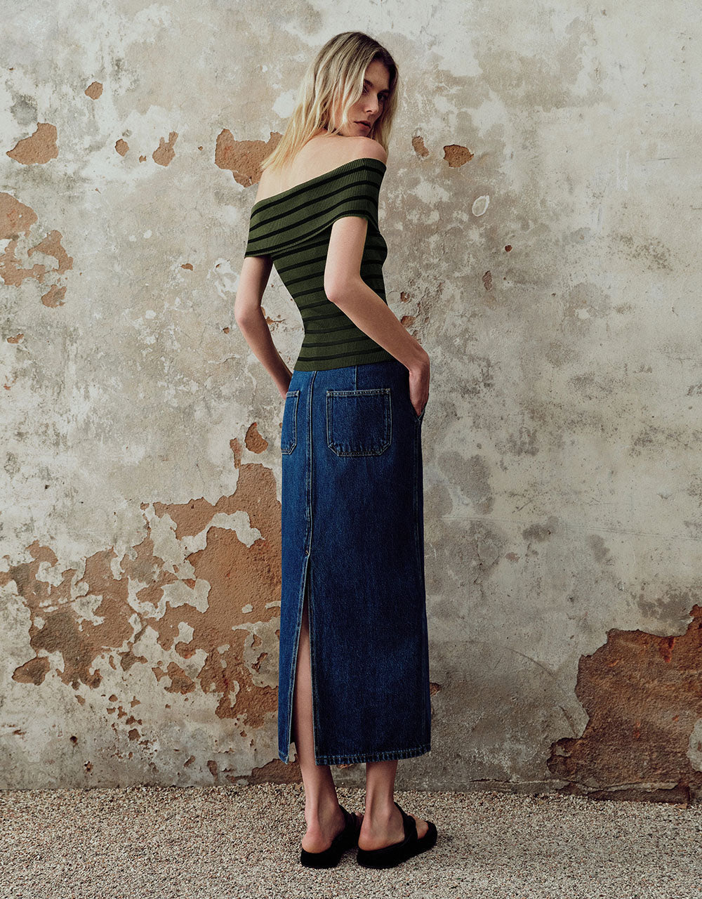 Striped Off-Shoulder Knitted T-Shirt