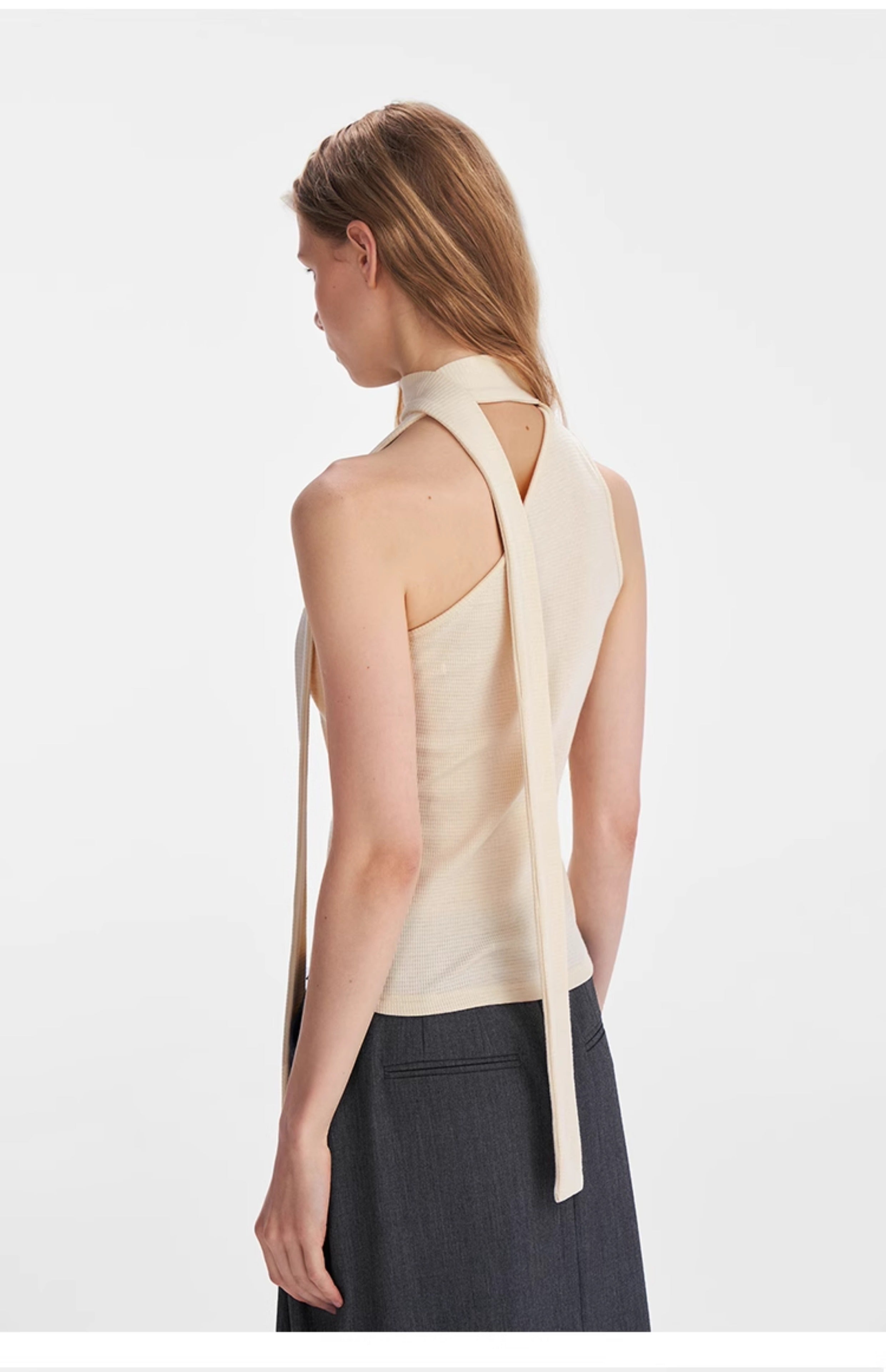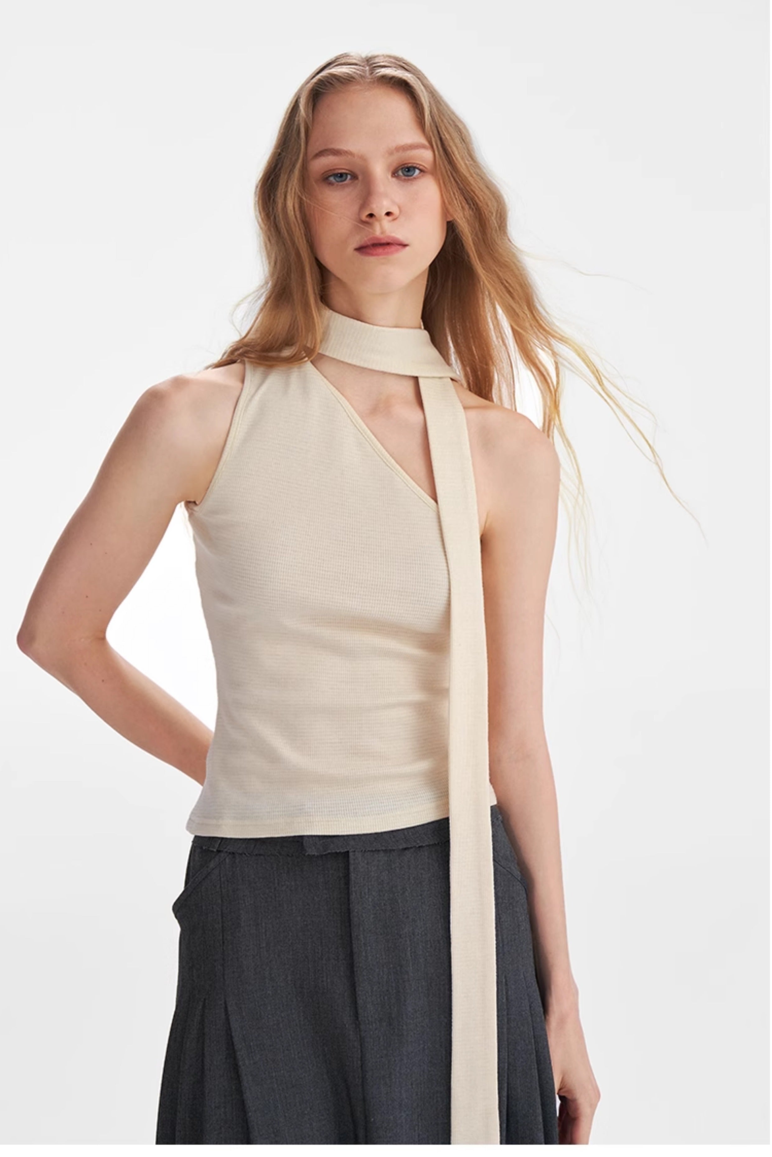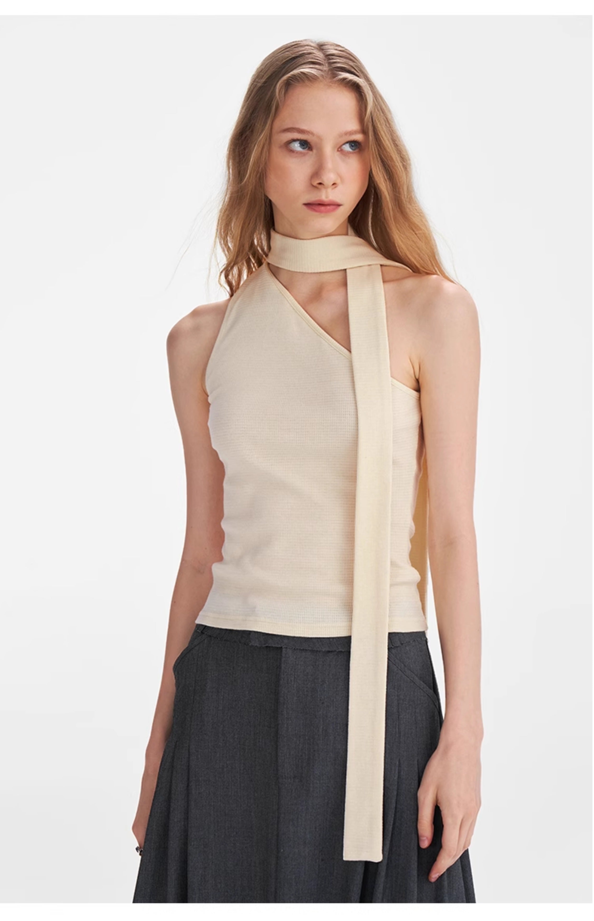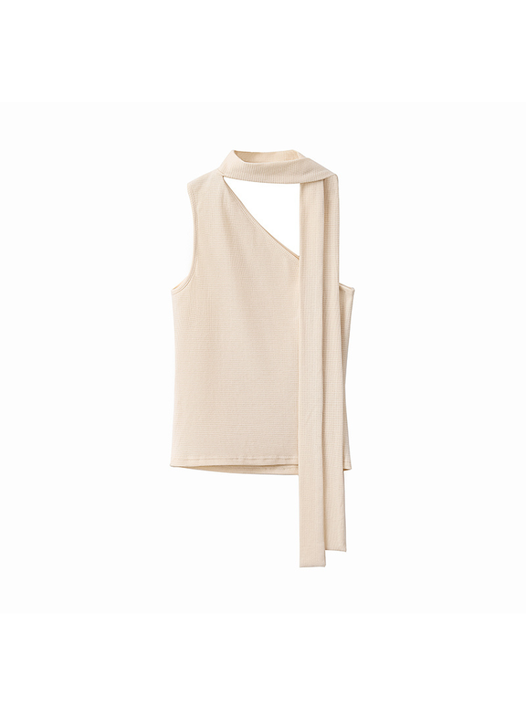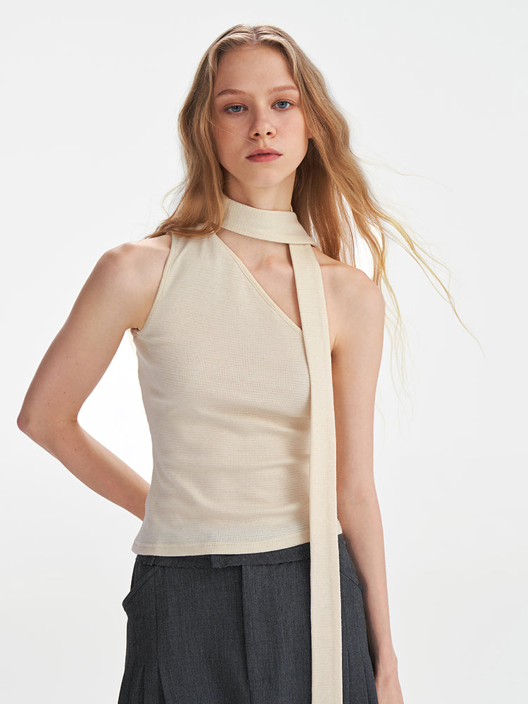 Textured Scarf-Tie Asymmetrical Top