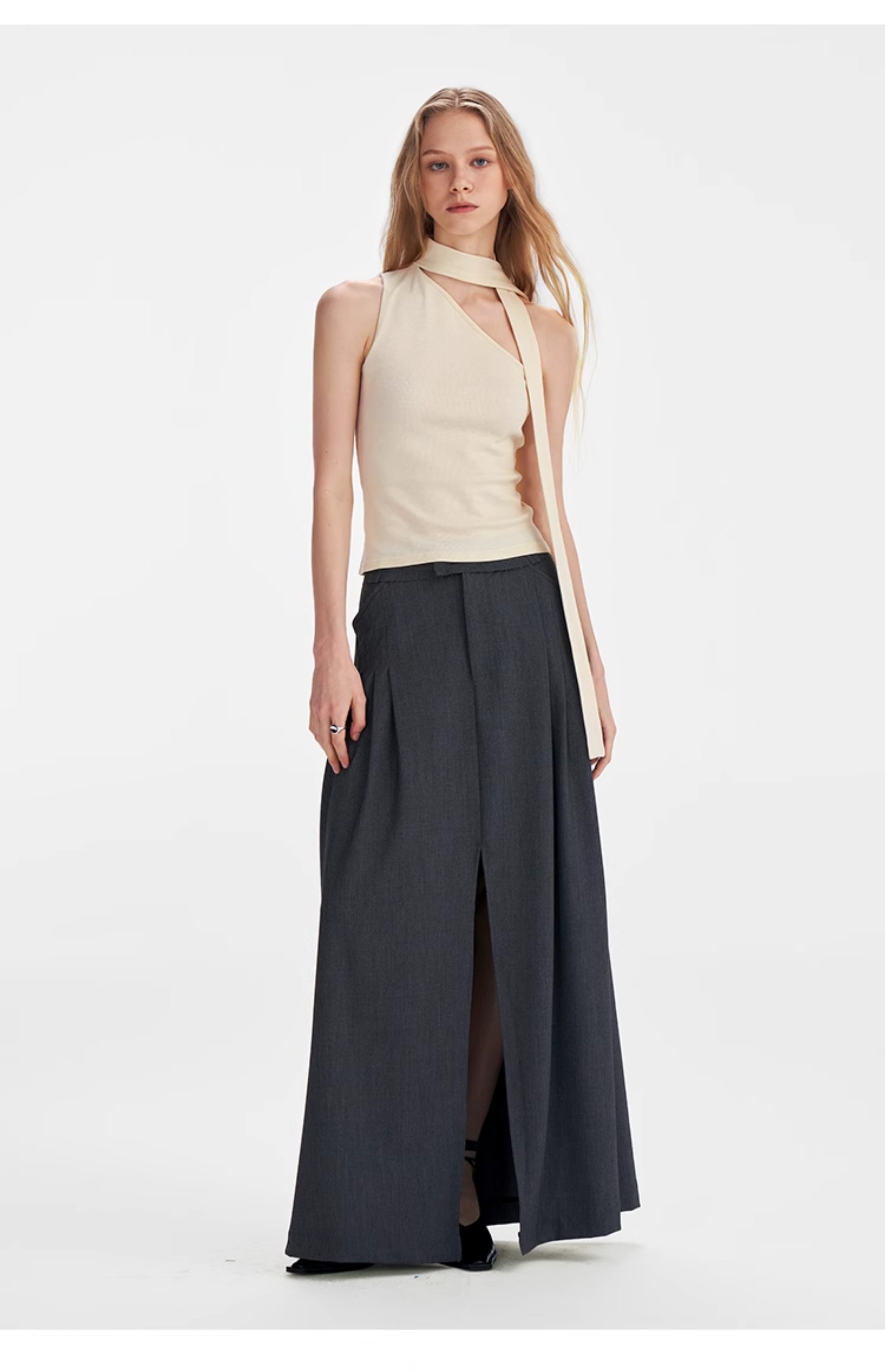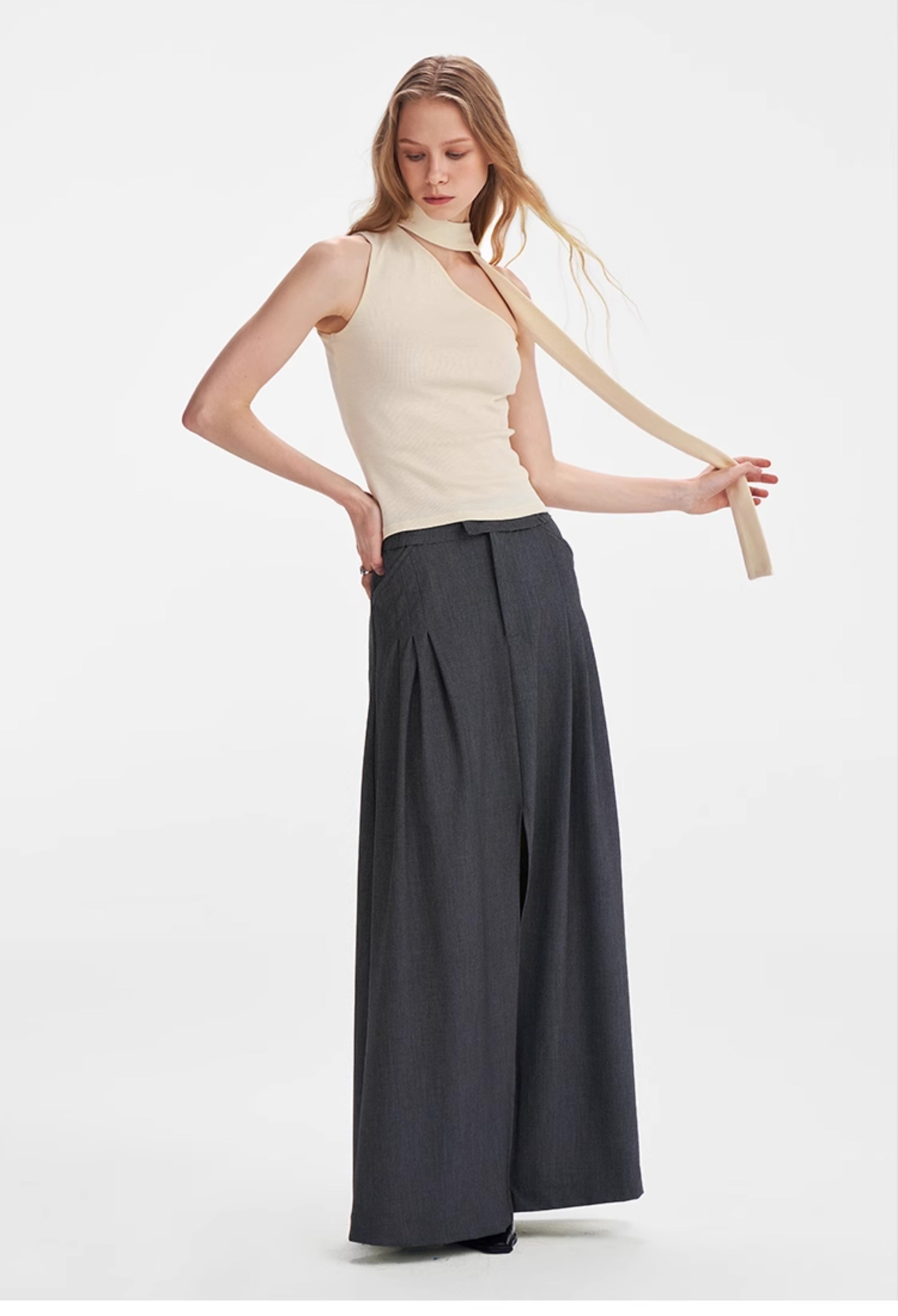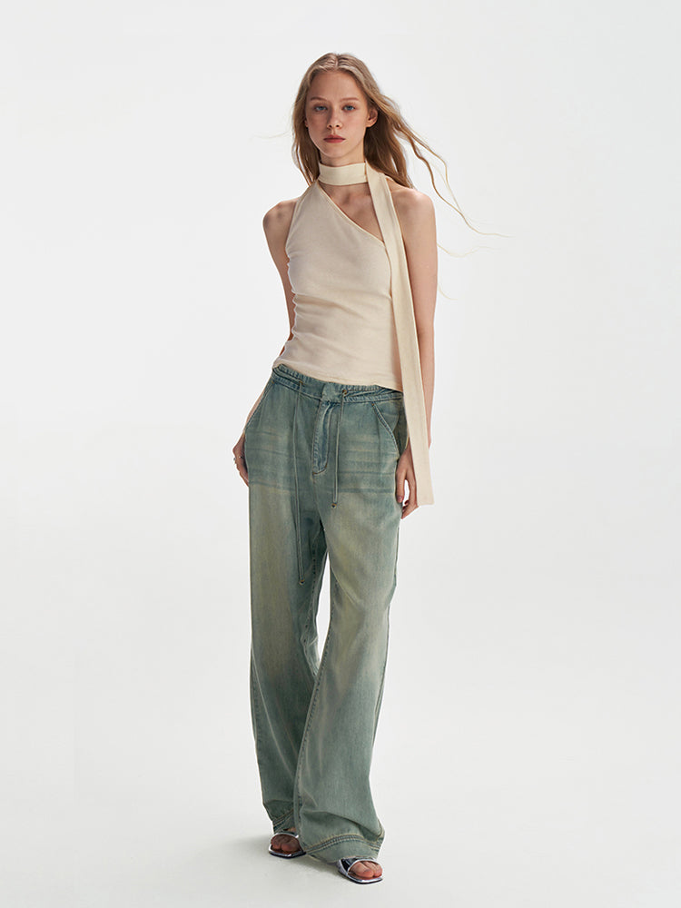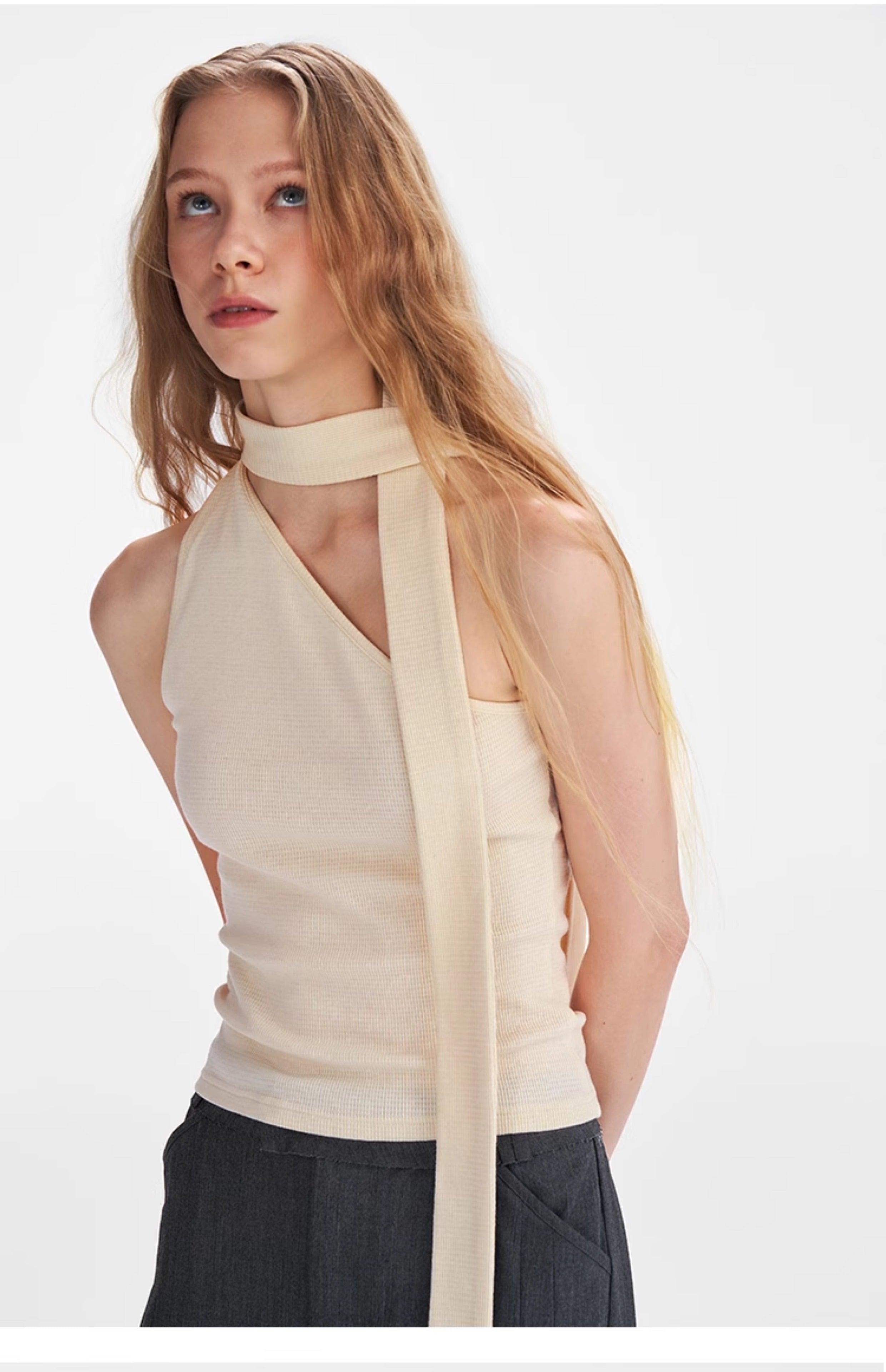 Textured Scarf-Tie Asymmetrical Top