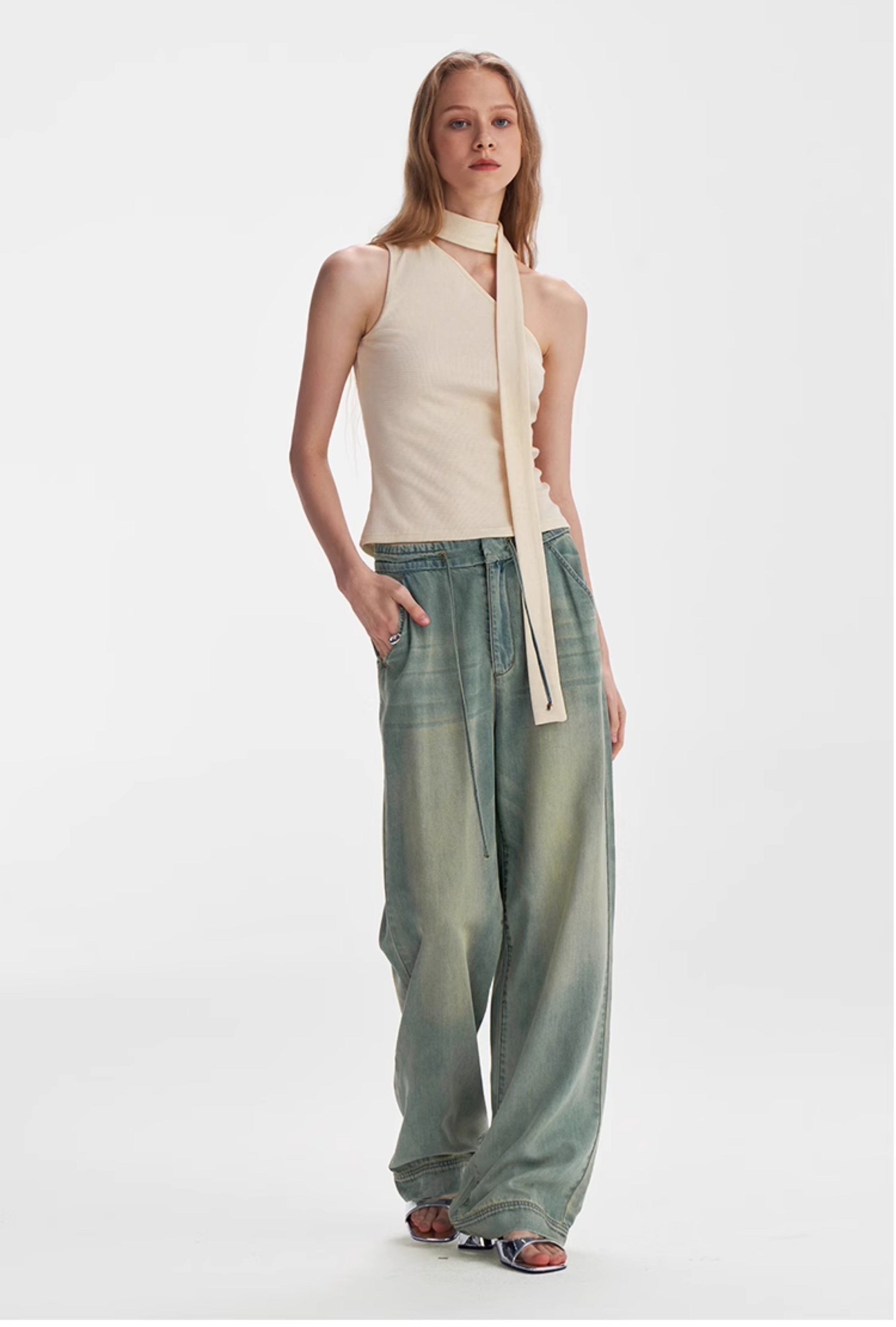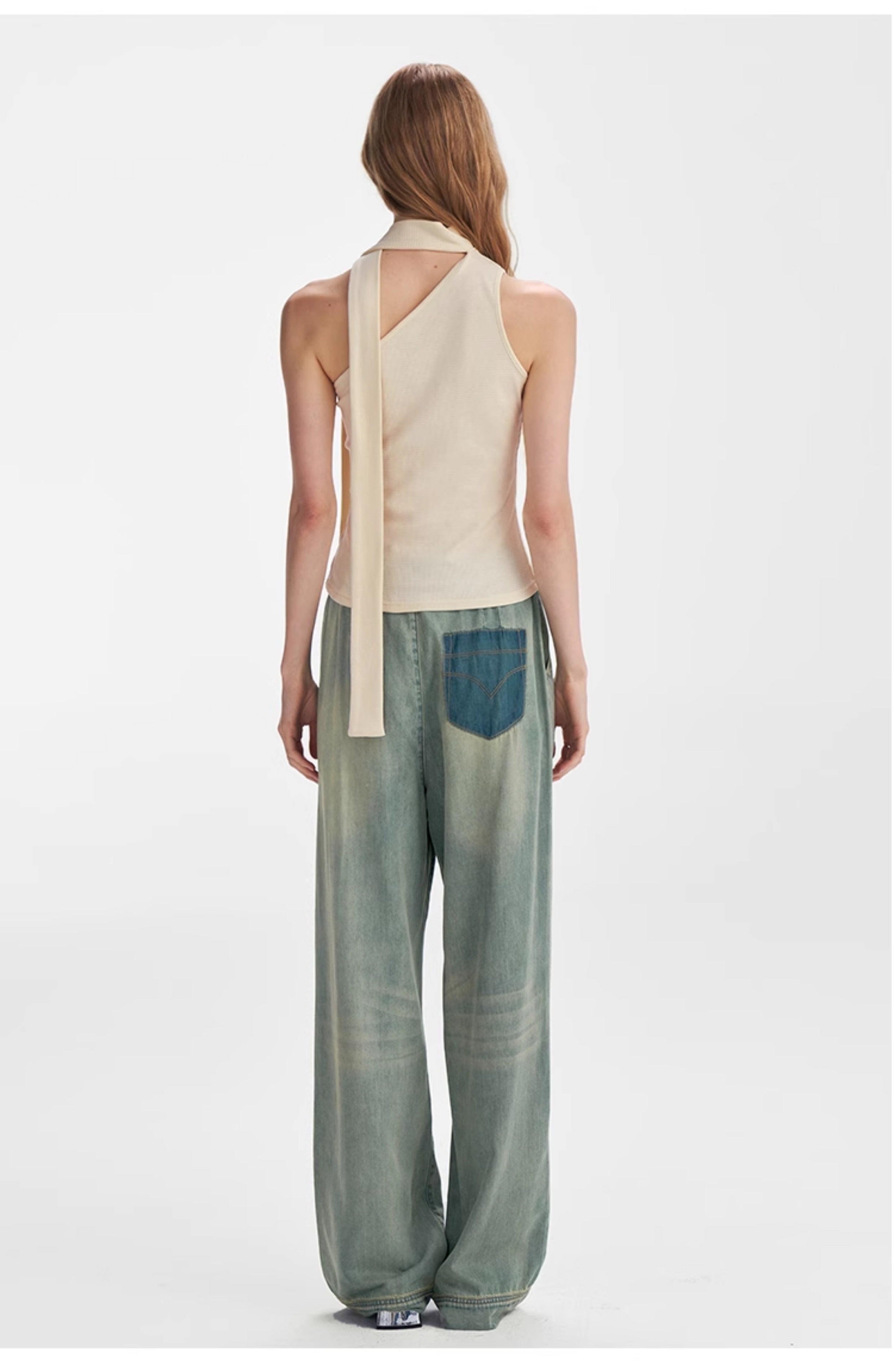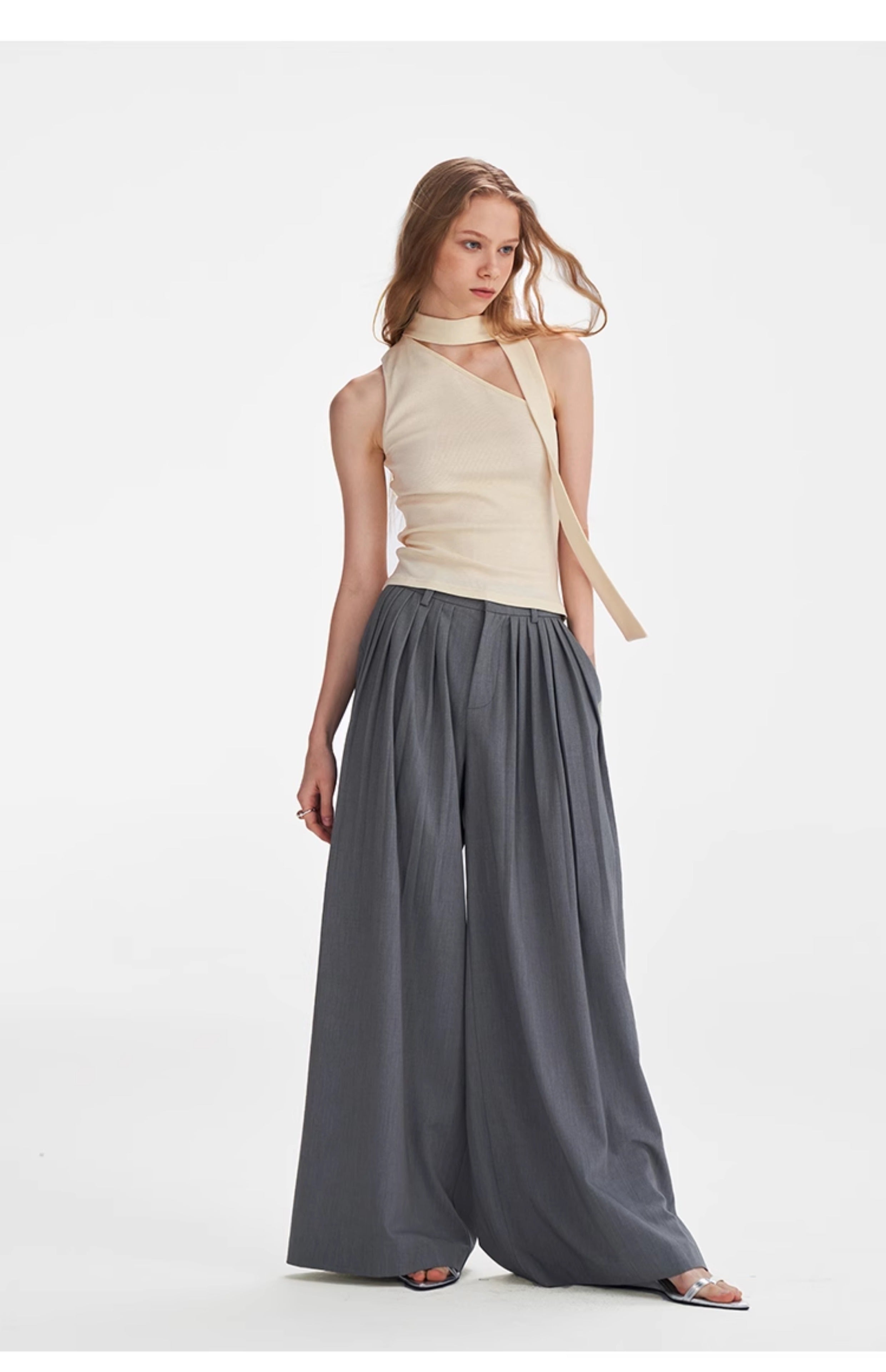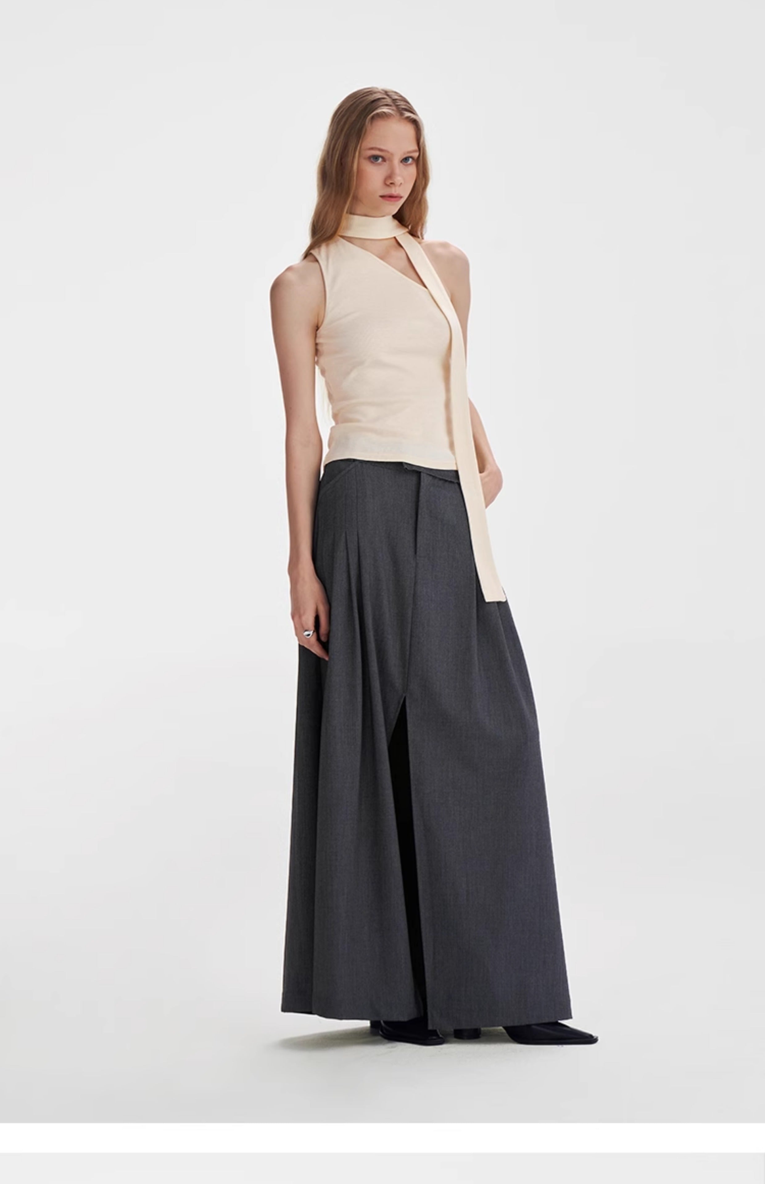 Textured Scarf-Tie Asymmetrical Top