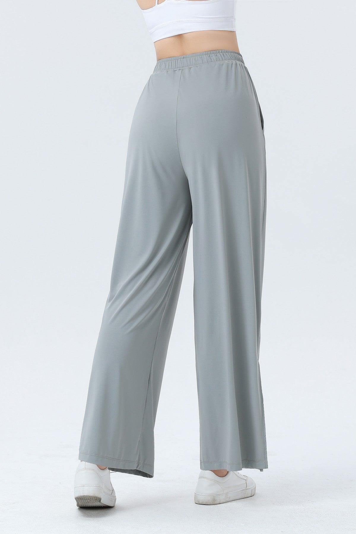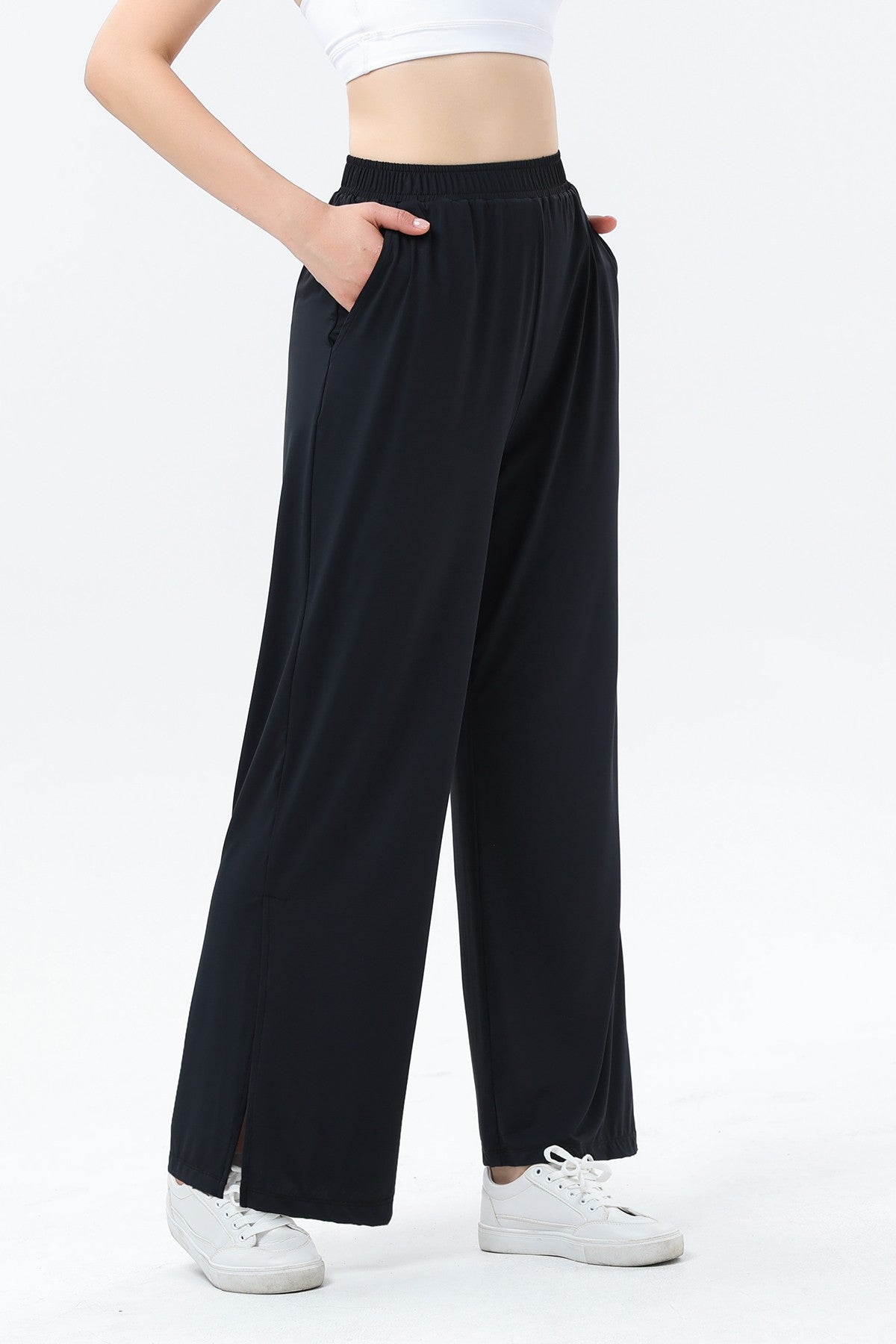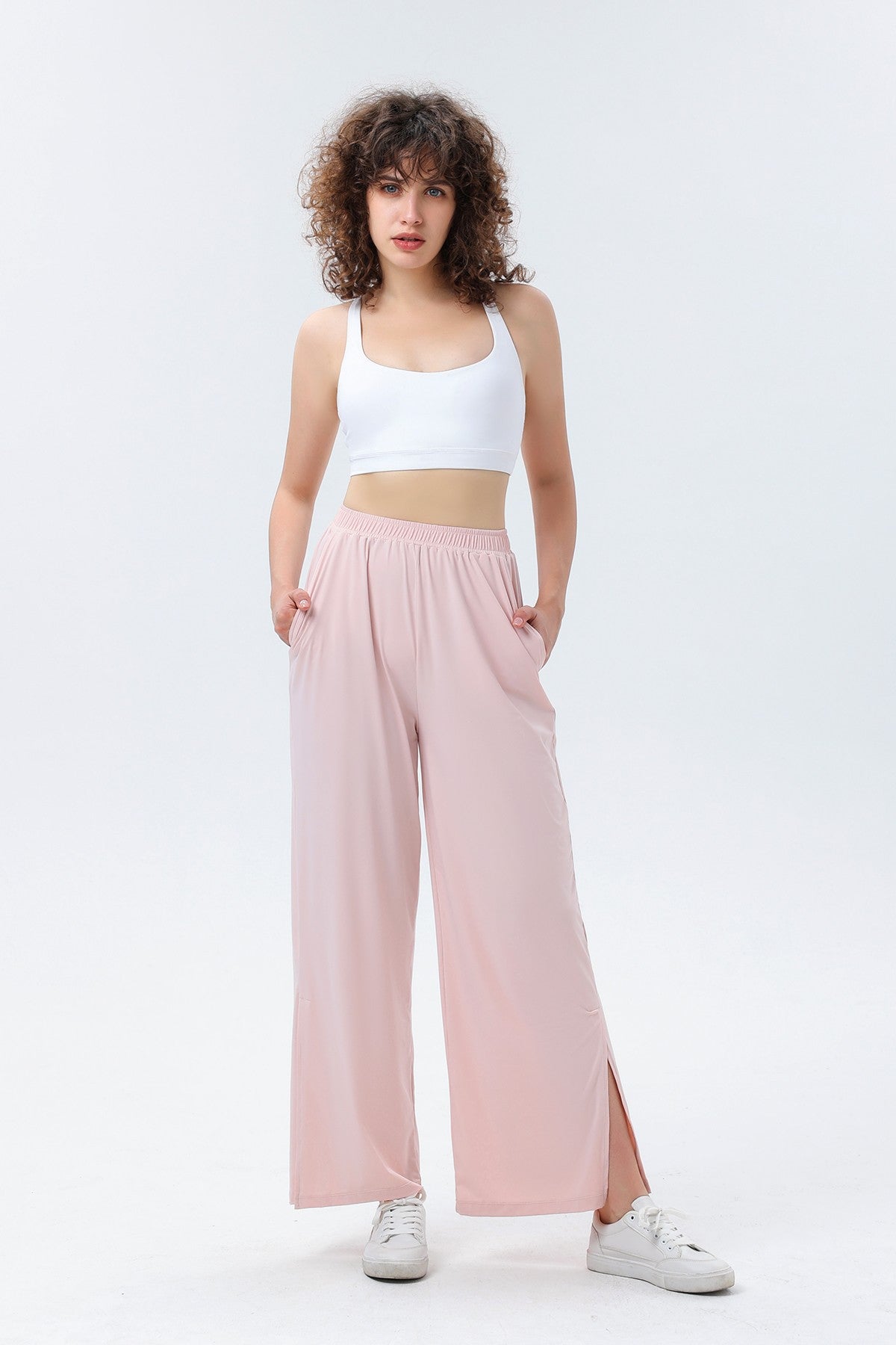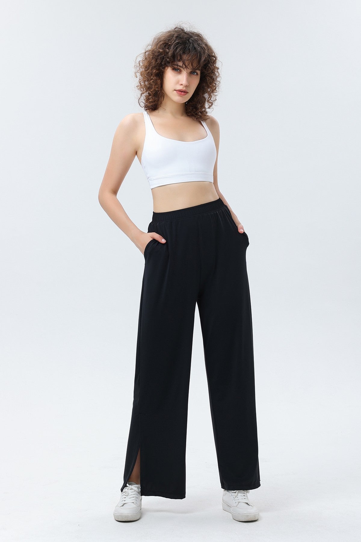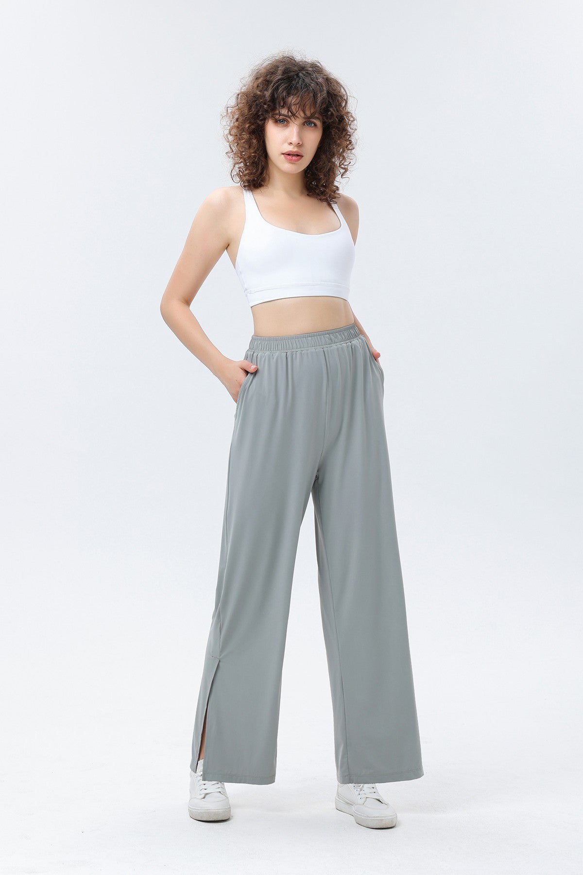 The women’s workout wide leg pants are smooth to the touch. It’s a modest and feminine bottom designed for all bodies and shapes. With side split design at the bottom, Keeps you breathable and cool in the hot summer, meanwhile reinforces the volume and flow of the silhouette.