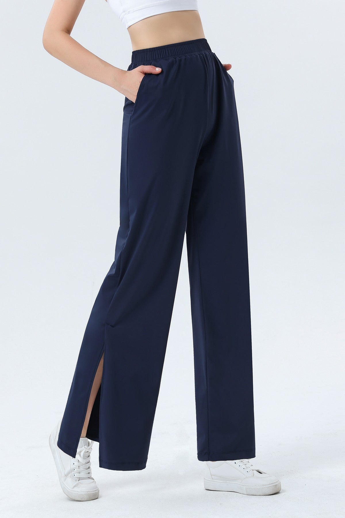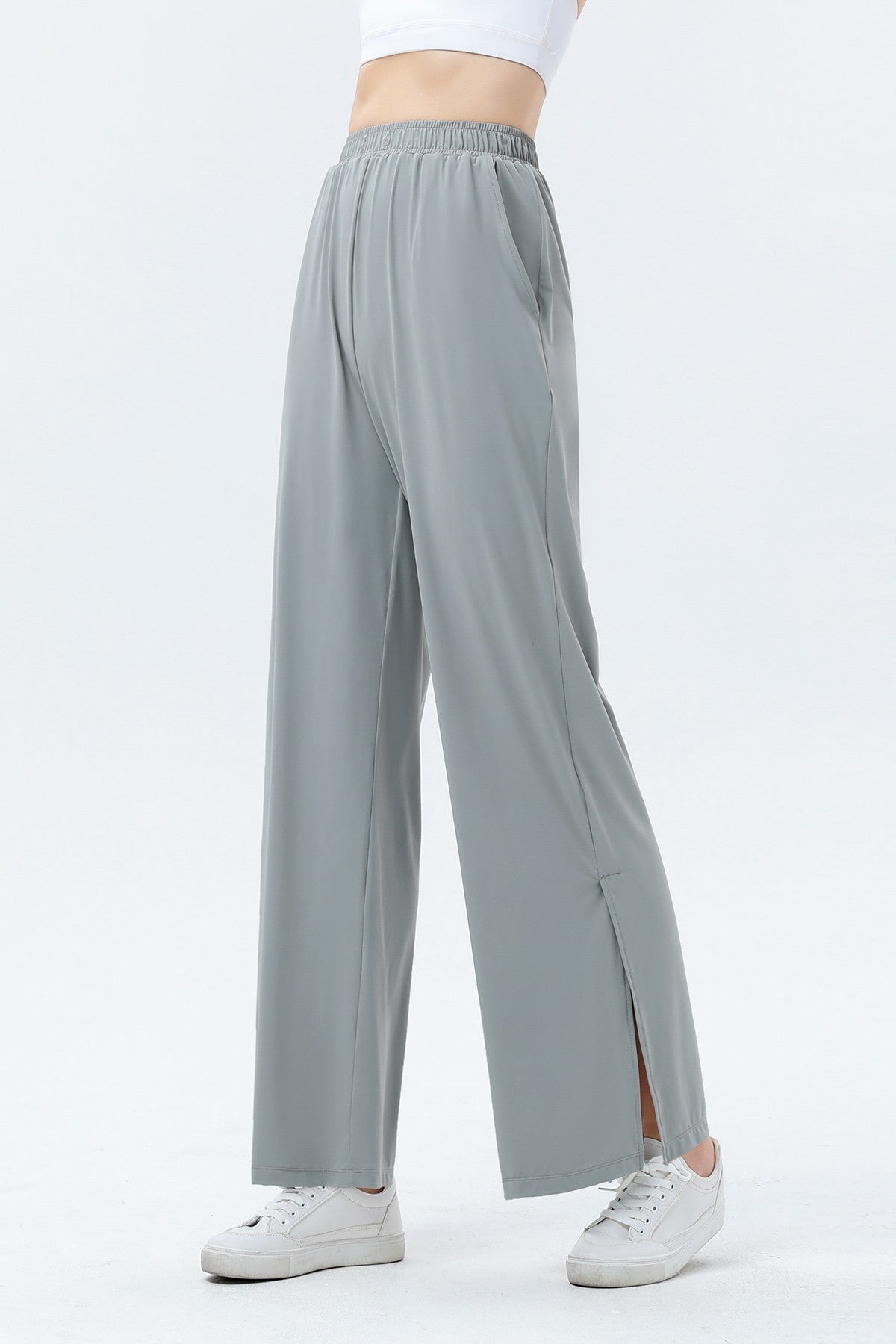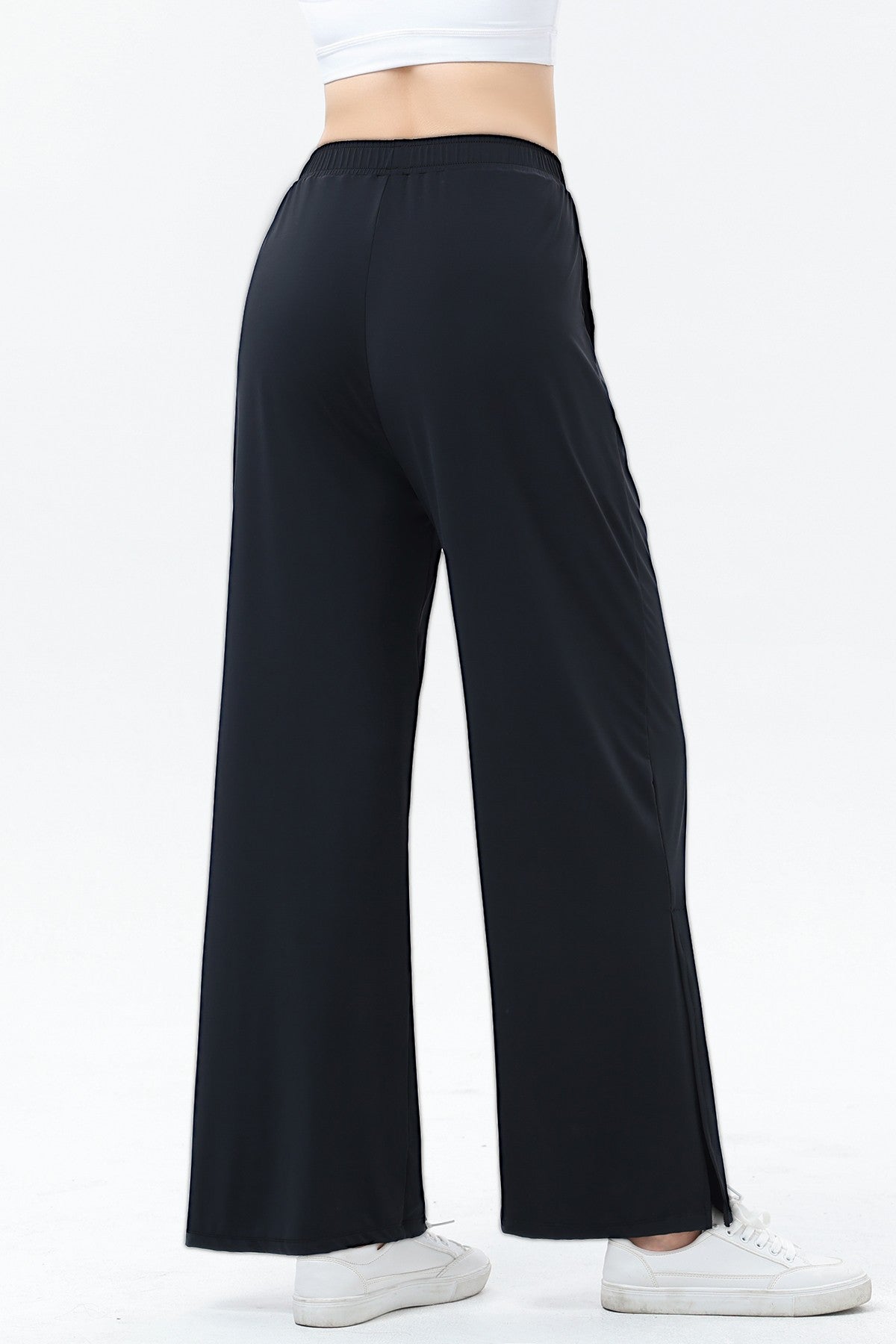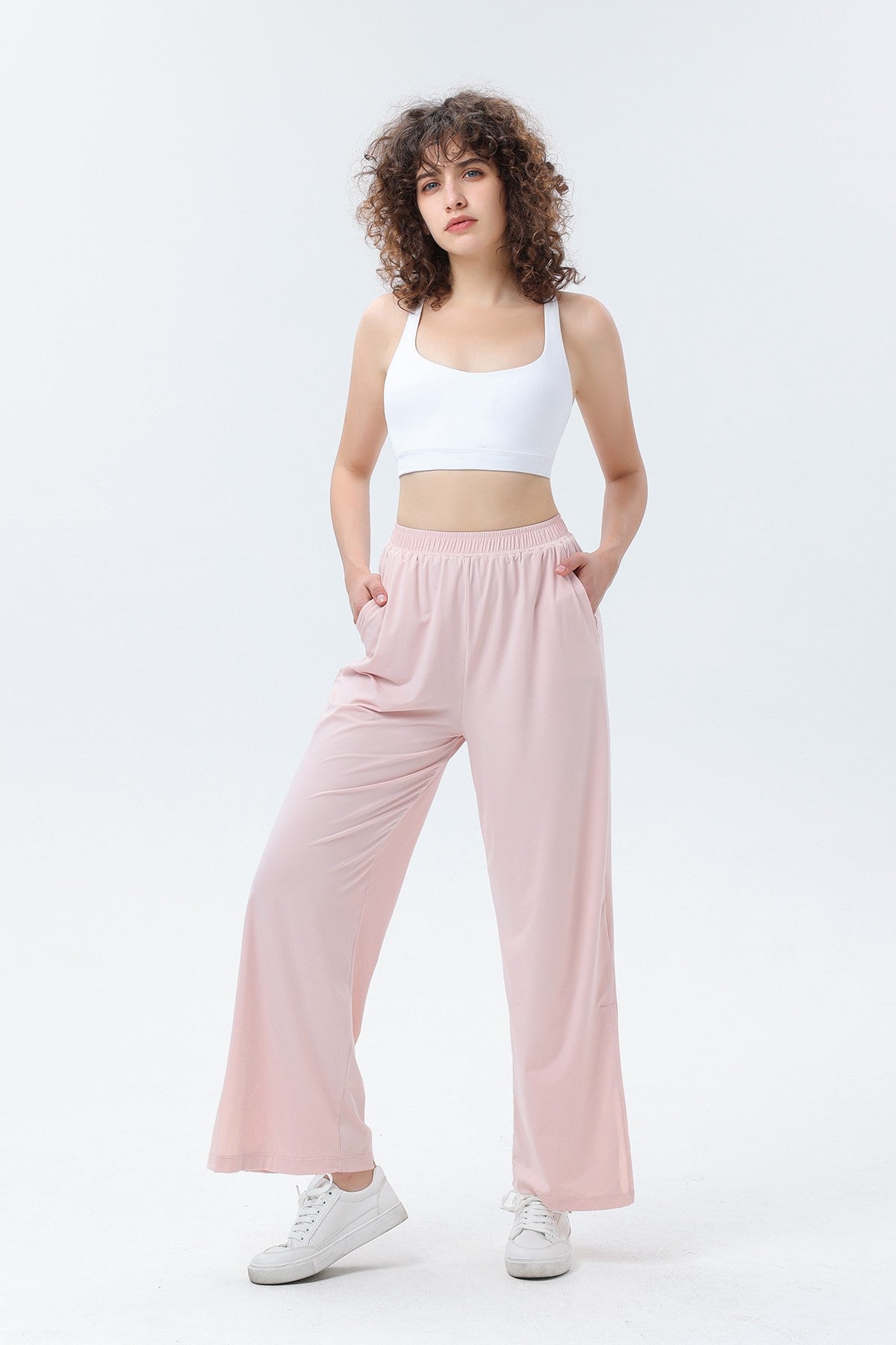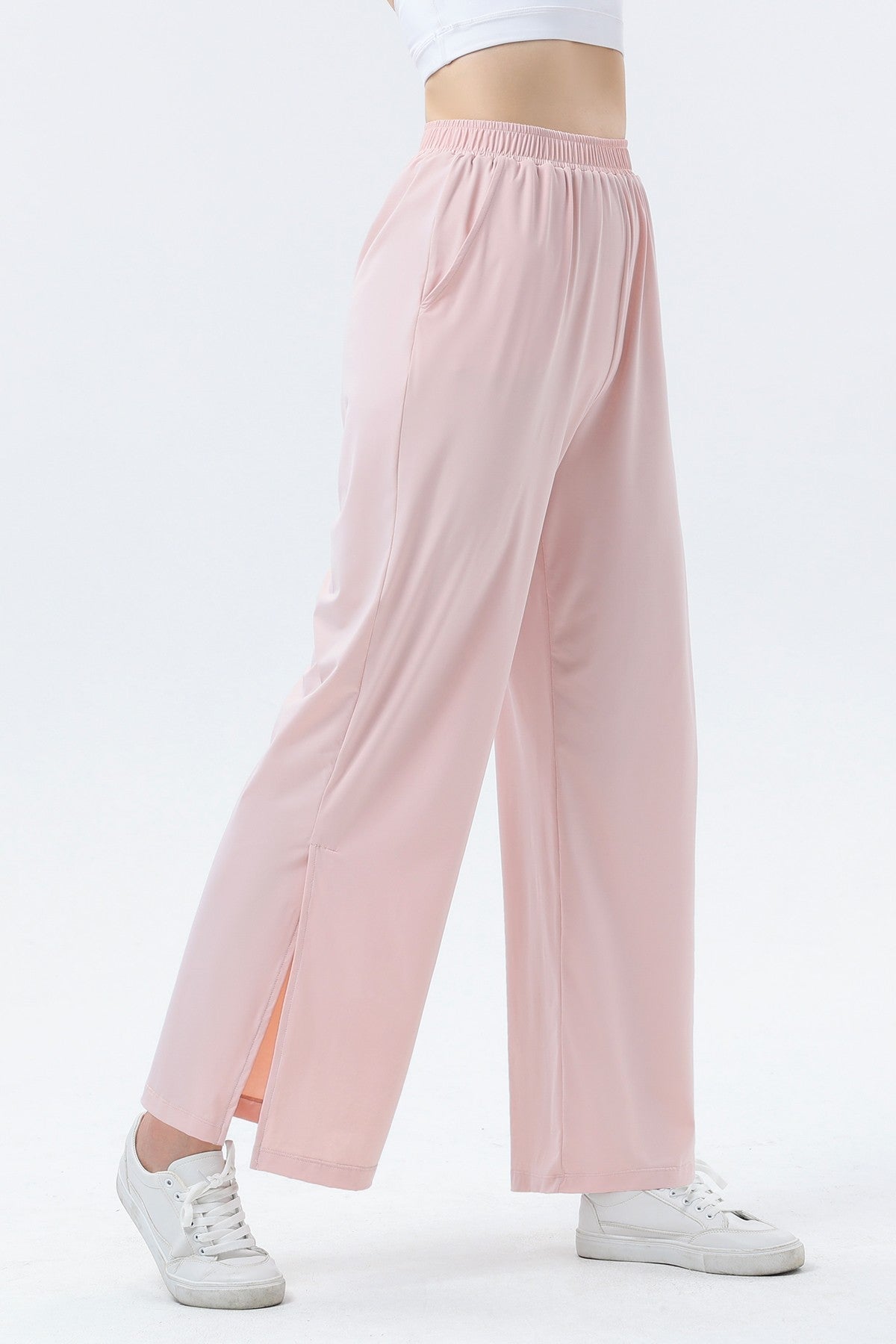 The women’s workout wide leg pants are smooth to the touch. It’s a modest and feminine bottom designed for all bodies and shapes. With side split design at the bottom, Keeps you breathable and cool in the hot summer, meanwhile reinforces the volume and flow of the silhouette.