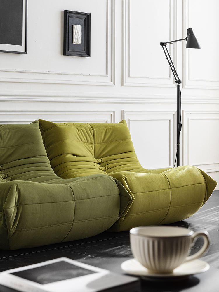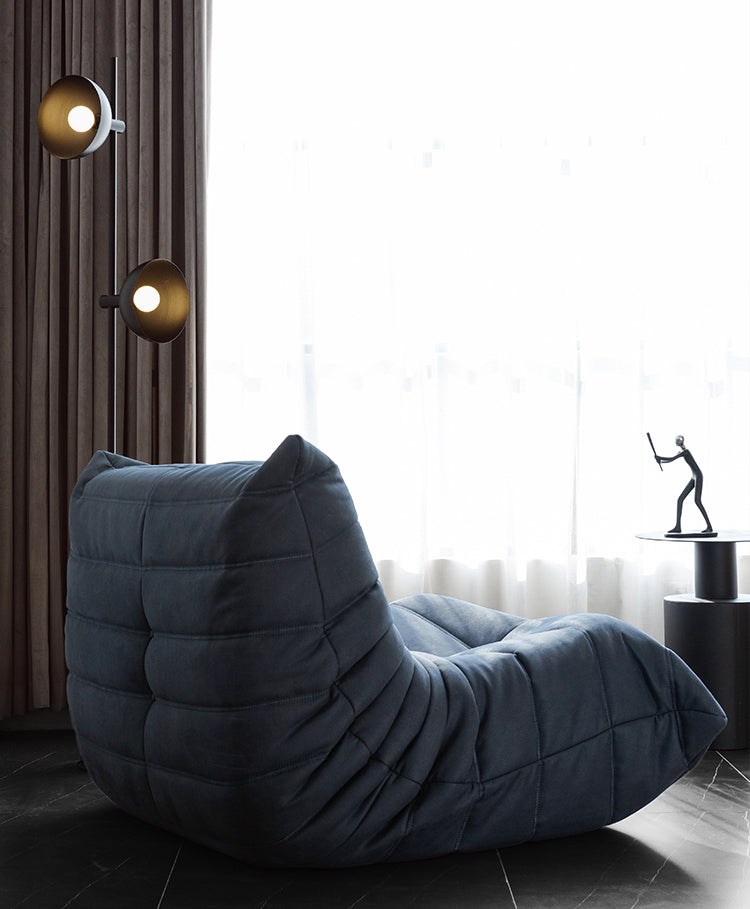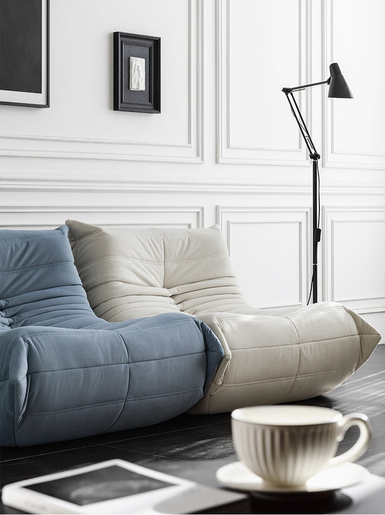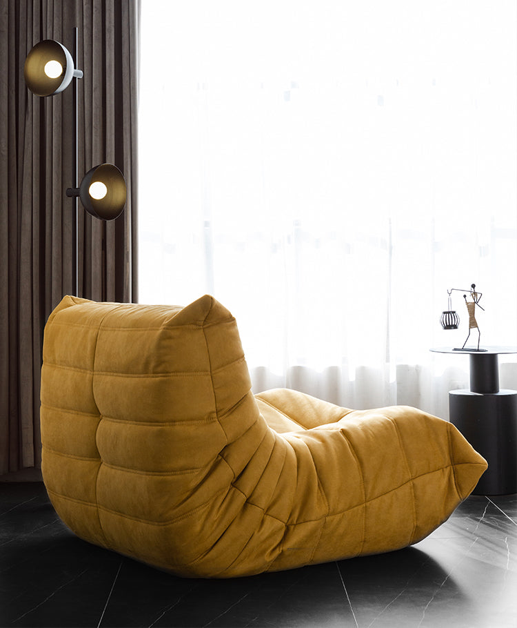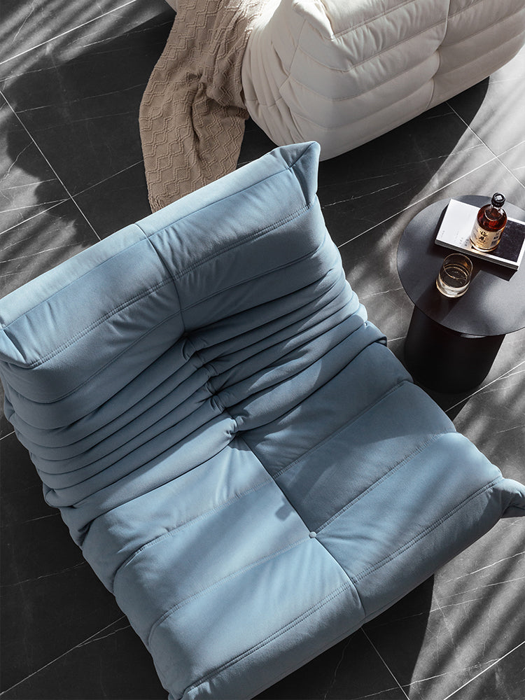 Wrapped in imported frosted tech fabric, the surface feels silky-smooth, soft, and sumptuous. Beyond its exquisite tactile allure, it offers superior drape and coverage. Furthermore, it is breathable, wear-resistant, and incredibly easy to maintain. The Velvet Caterpillar Lounger is not just a piece of furniture; it's an experience of luxury and comfort.