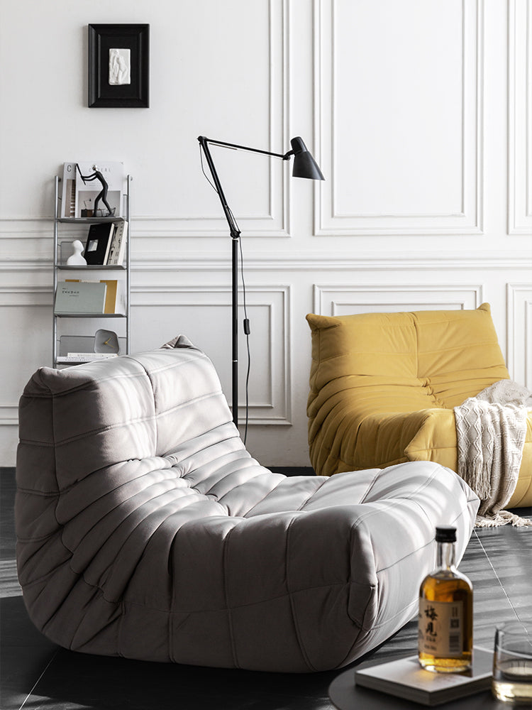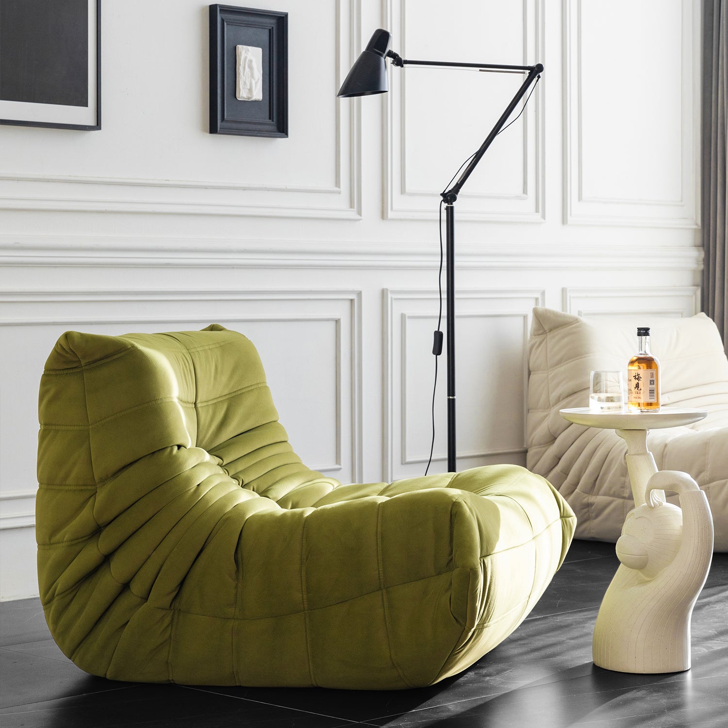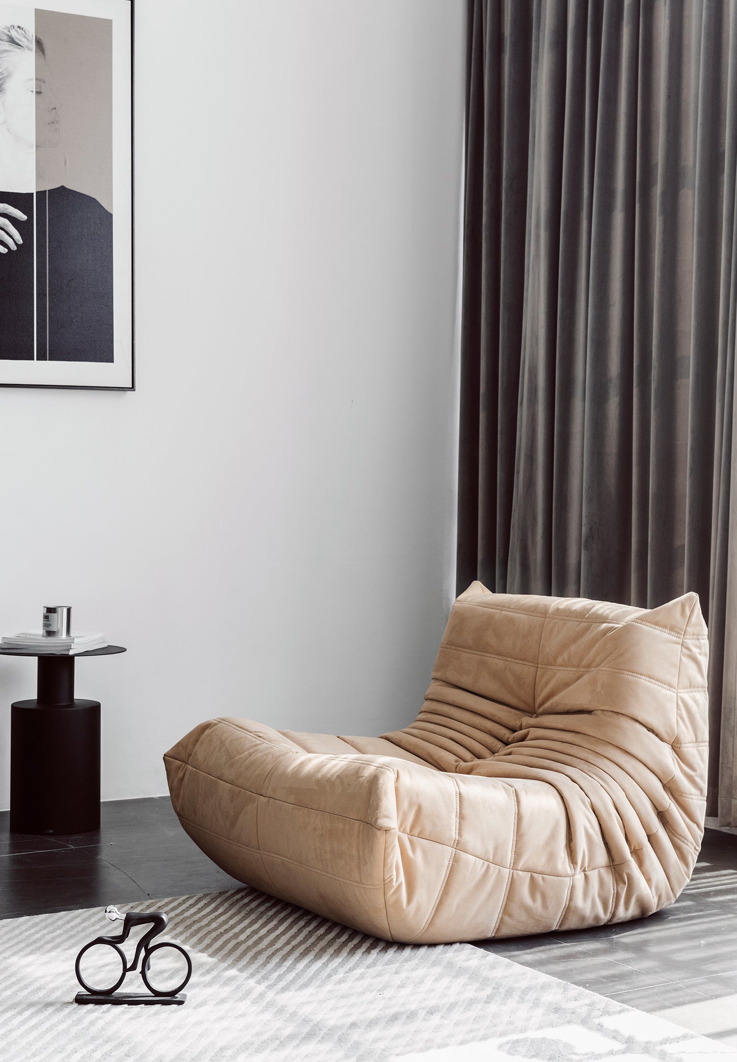 Introducing the Velvet Caterpillar Lounger, a harmonious blend of style and relaxation. Crafted with superior fabric from the renowned American textile city, the chair features a unique non-directional short velvet process, ensuring a thick, skin-friendly touch. Its muted color saturation ensures a vintage yet versatile aesthetic, steering clear from gaudiness.
