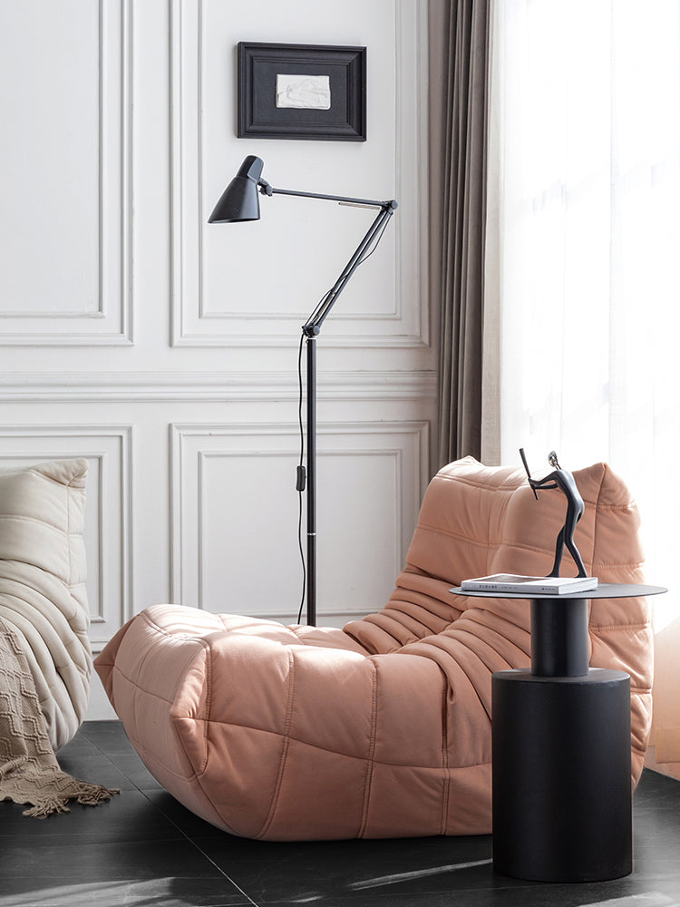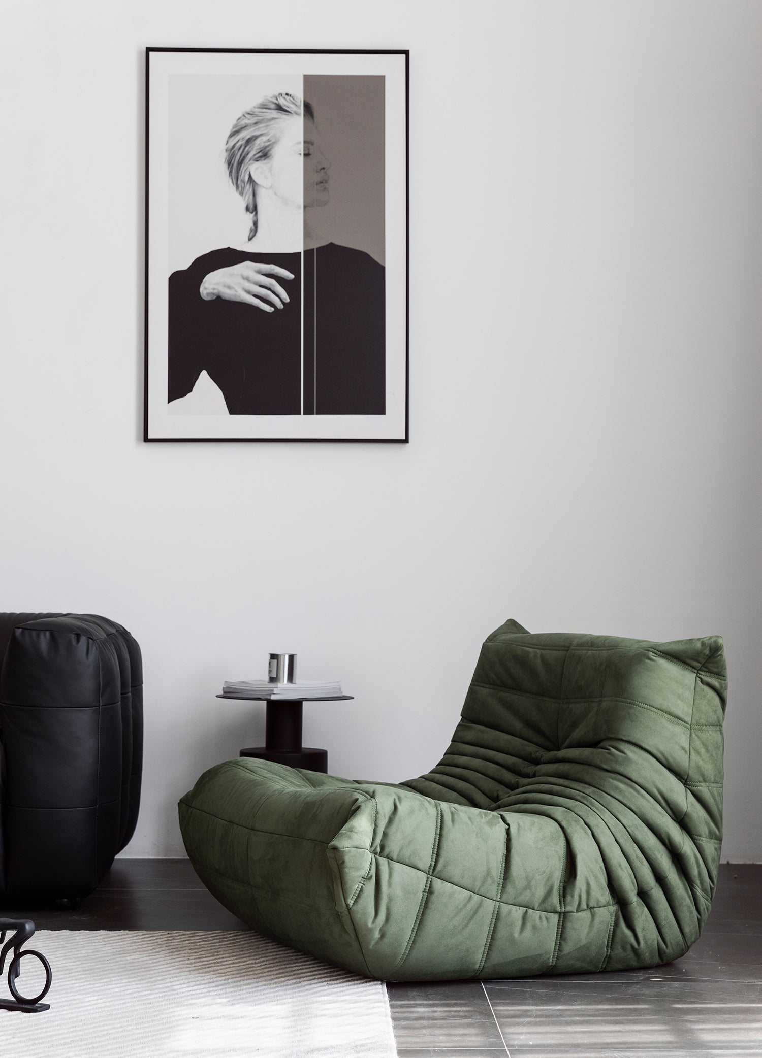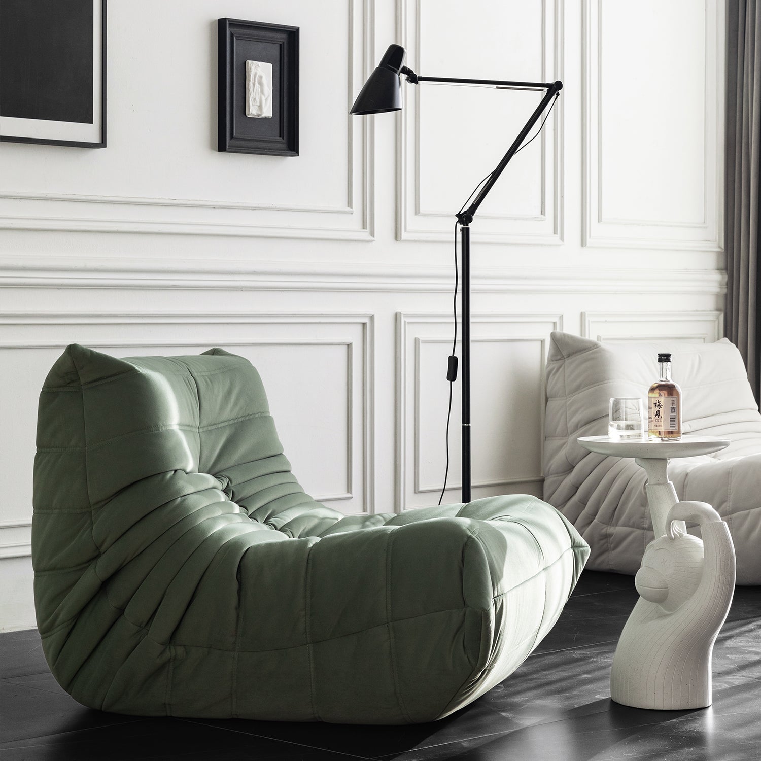 Introducing the Velvet Caterpillar Lounger, a harmonious blend of style and relaxation. Crafted with superior fabric from the renowned American textile city, the chair features a unique non-directional short velvet process, ensuring a thick, skin-friendly touch. Its muted color saturation ensures a vintage yet versatile aesthetic, steering clear from gaudiness.
