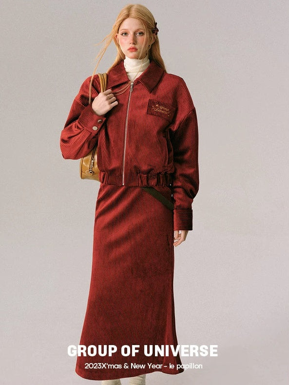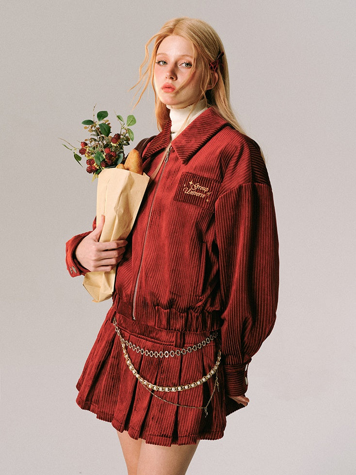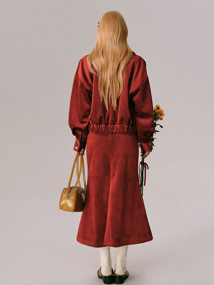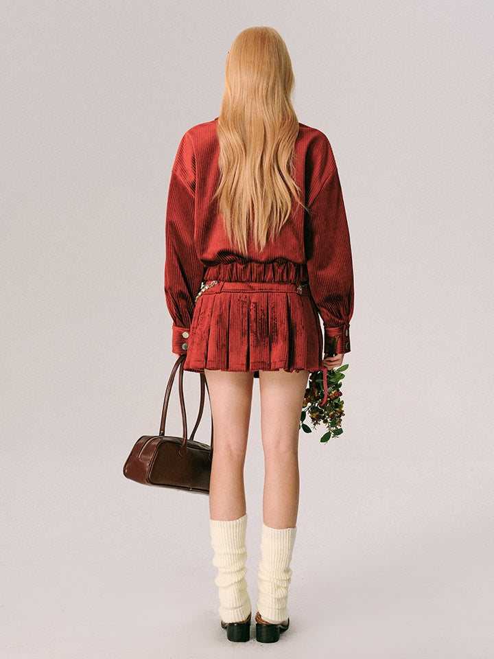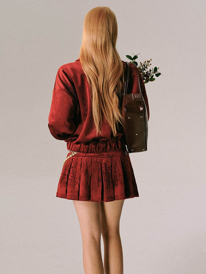 Velvet Swing Top Blouson & Mini Pleated Skirt & Long Mermaid Skirt