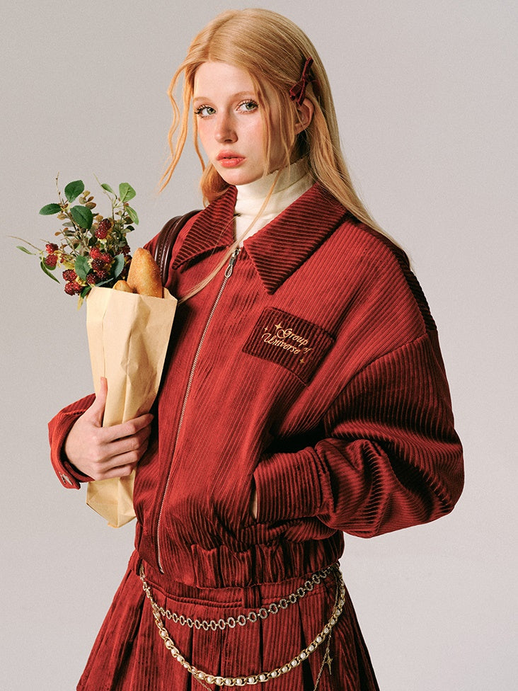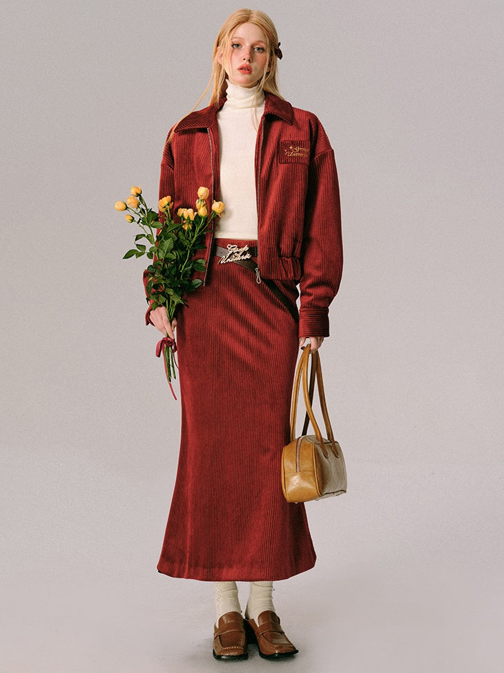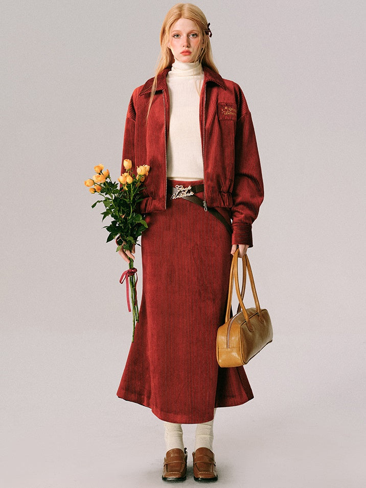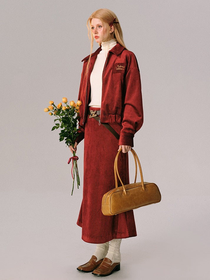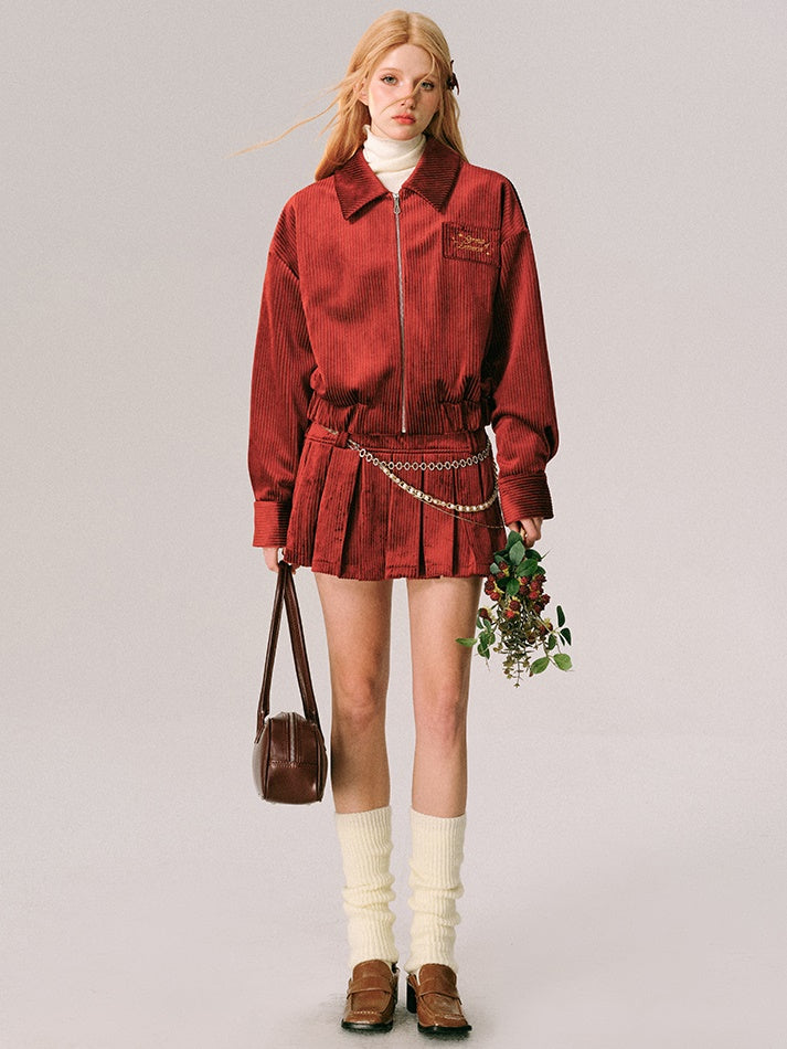 Velvet Swing Top Blouson & Mini Pleated Skirt & Long Mermaid Skirt