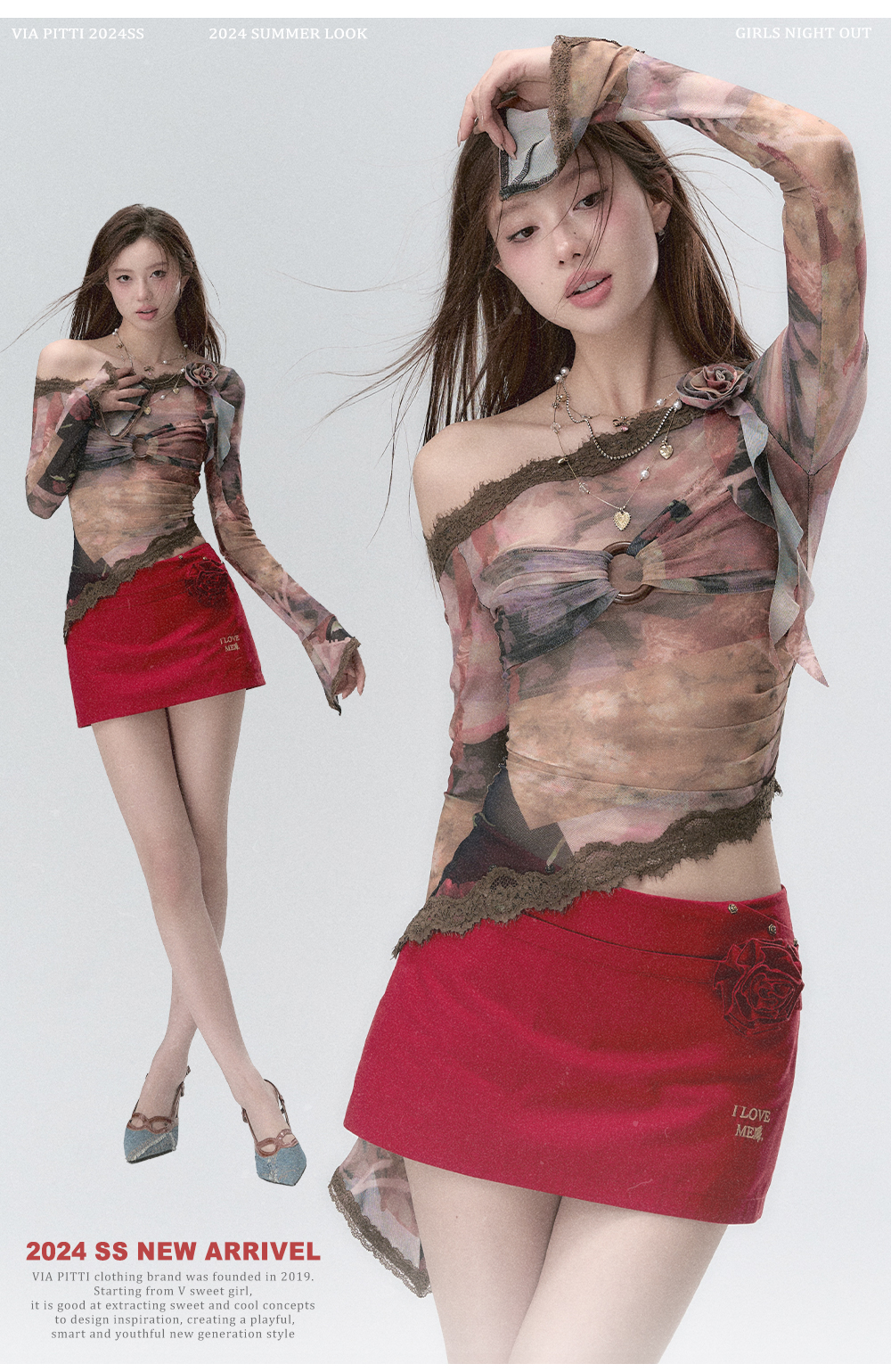 "I LOVE ME" Embroidered Rose Belt A-Line Mini Skirt