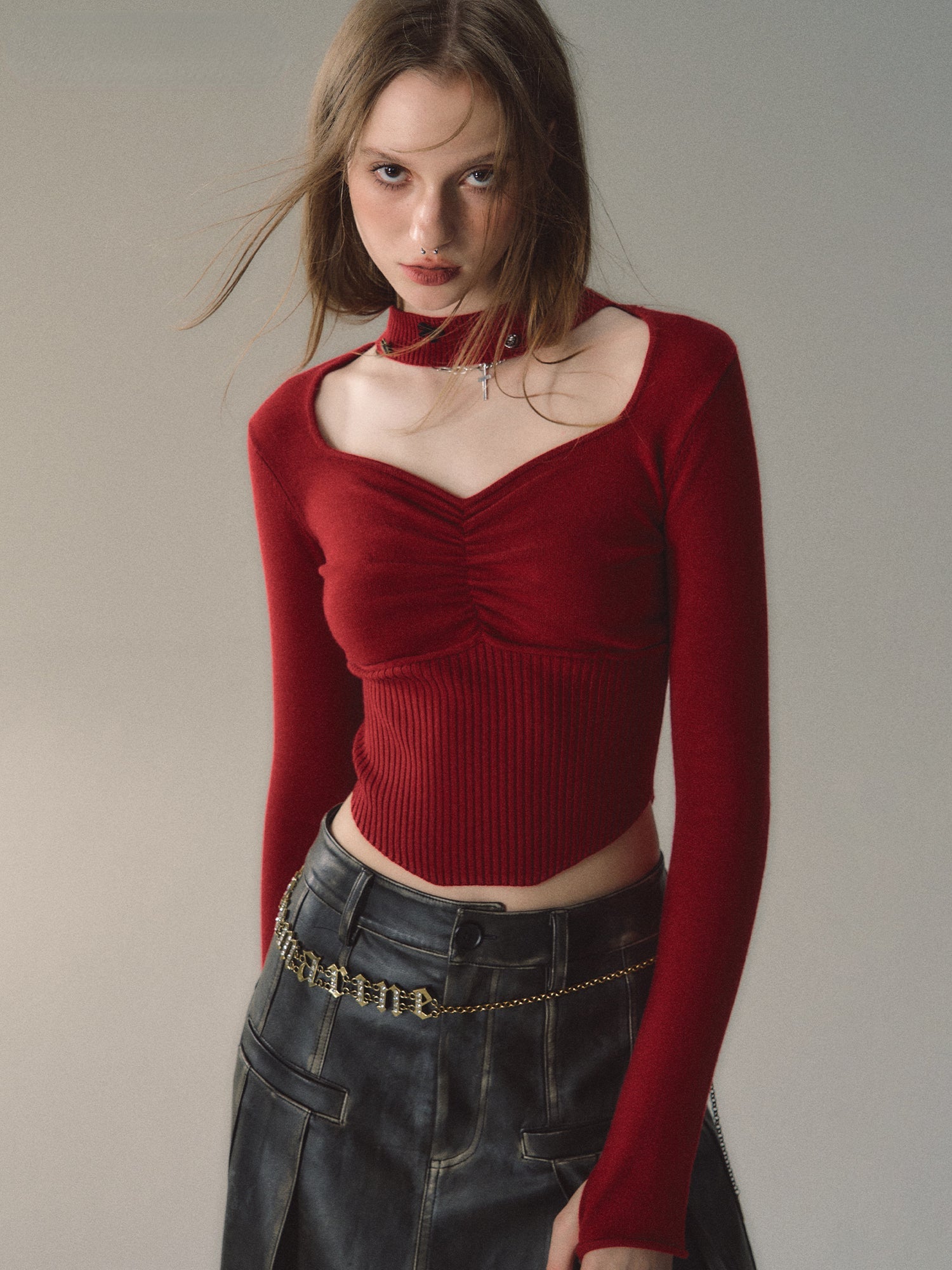 Square Neck Halter Knit Sweater