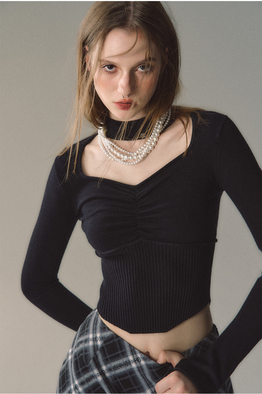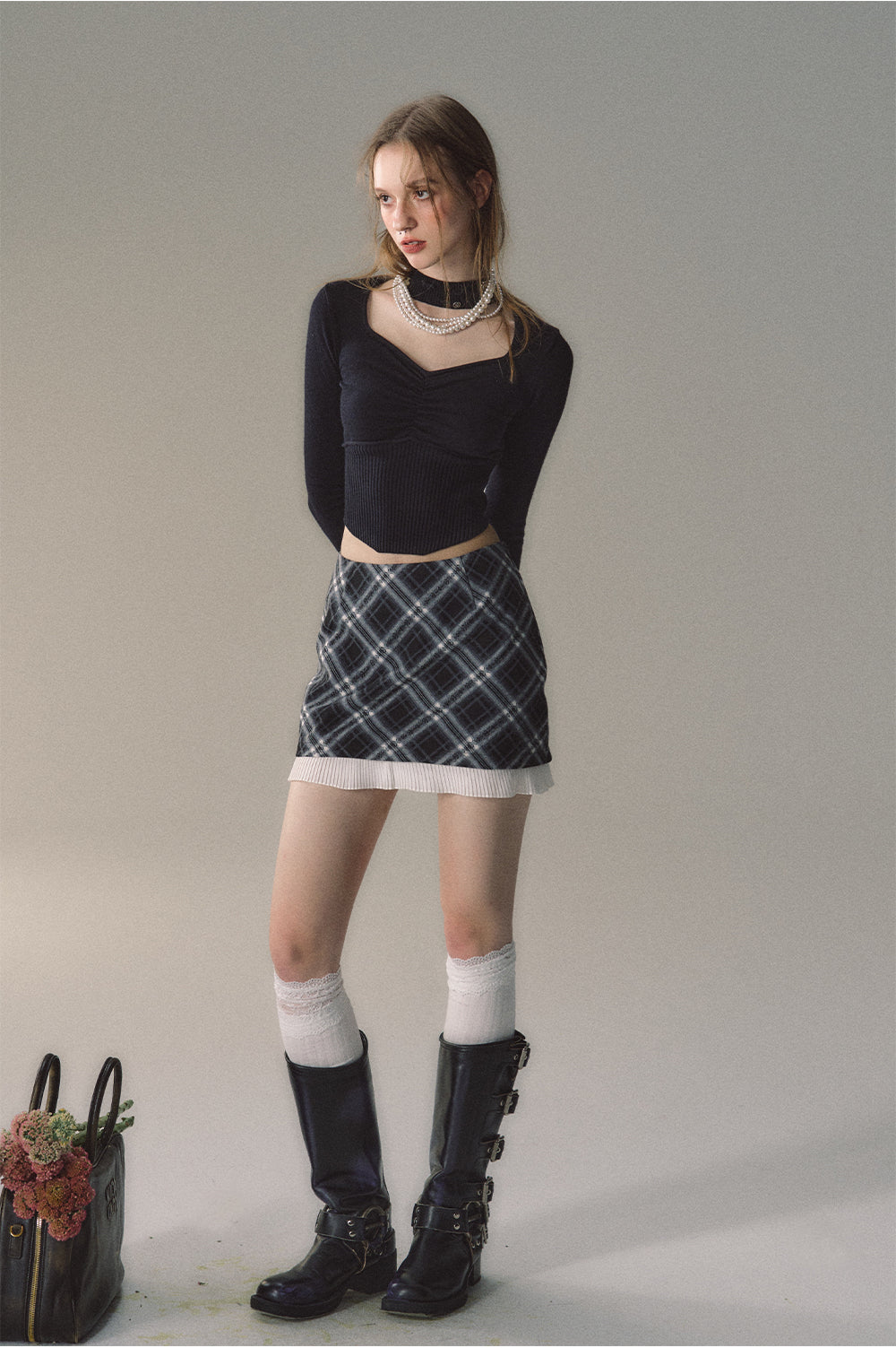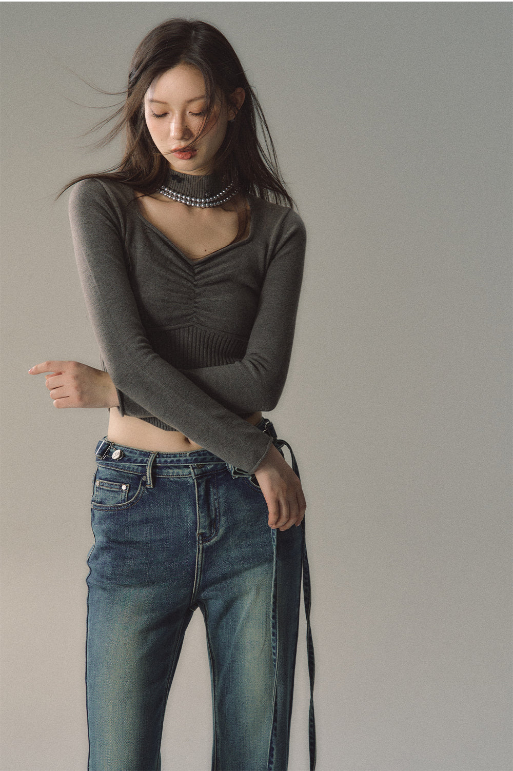 Model: 166cm/45kg, B/W/H:78/65/88, wearing size S.