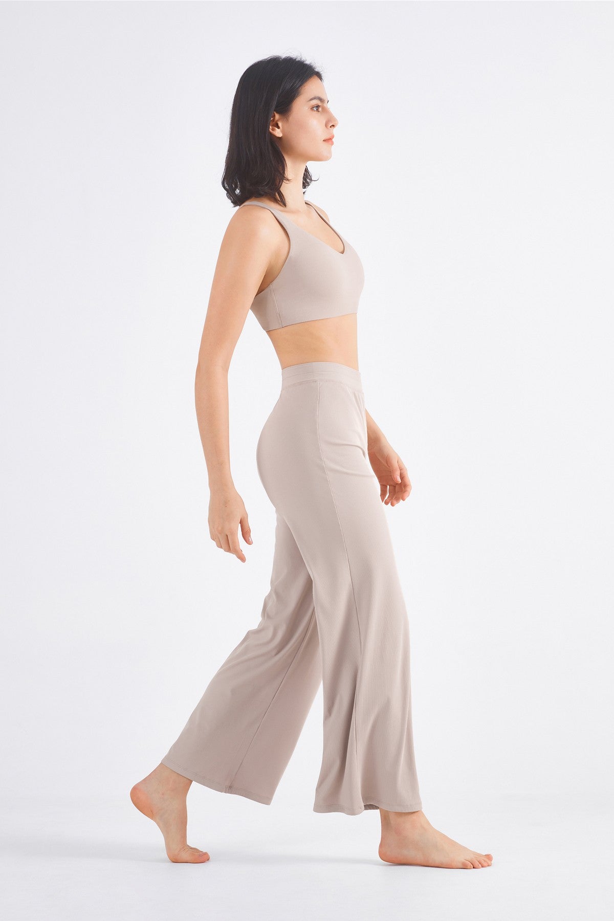 These wide-leg palazzo pants are comfort for all day long. Made with butter-soft fabric, the women’s workout wide leg pants are smooth on the skin. It’s a modest and feminine bottom designed for all bodies and shapes. With drawstring design at the bottom, you can easily tighten the trousers while exercising.