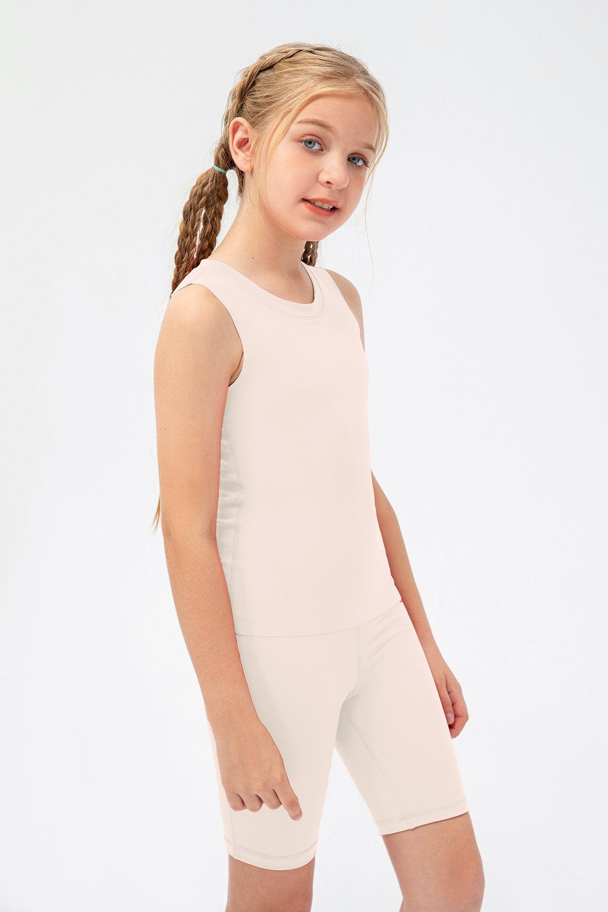 The perfect girls tank top that's comfortable enough for play and cute enough for a day out and about. Pair with the matching kids yoga shorts for an adorable matching sweat set look.